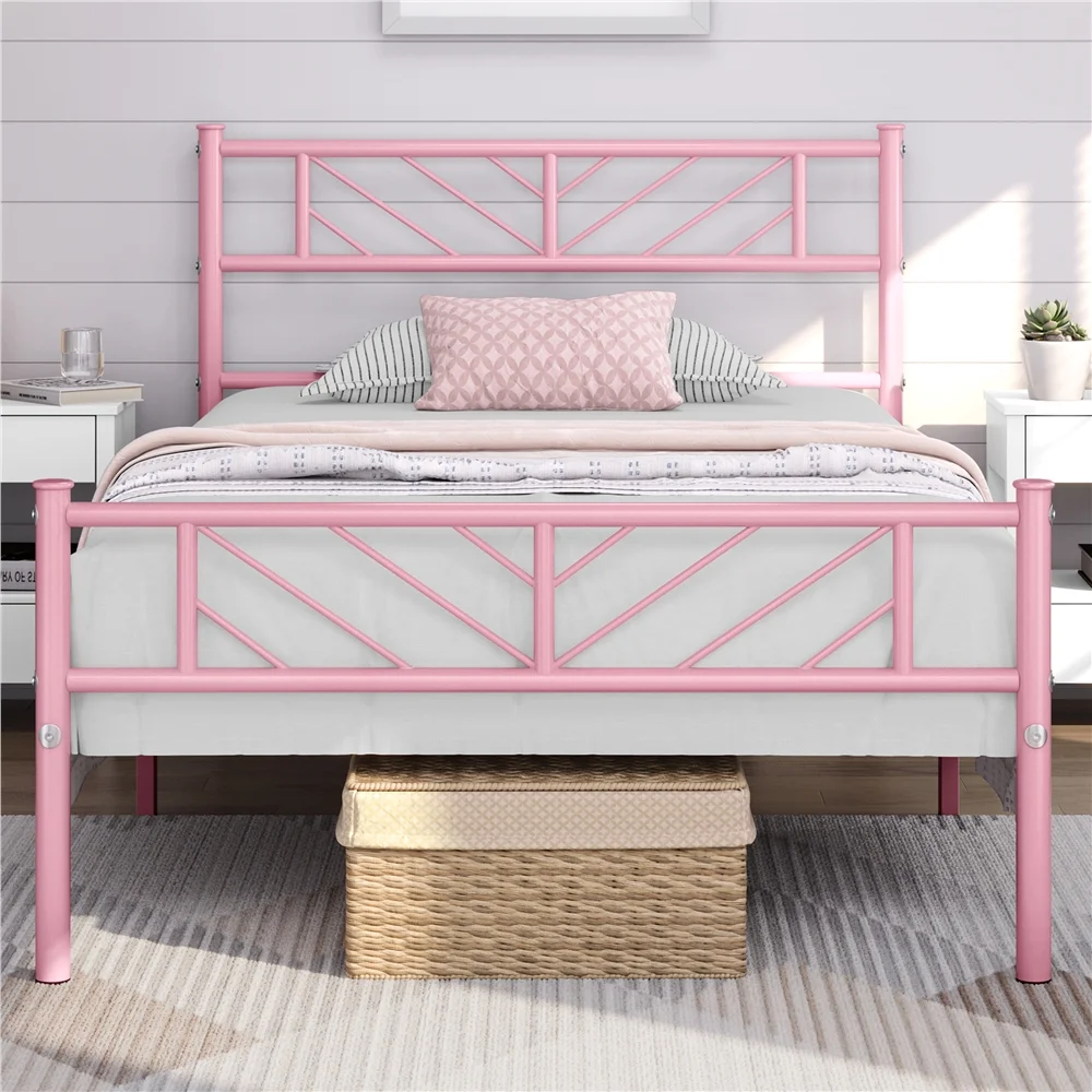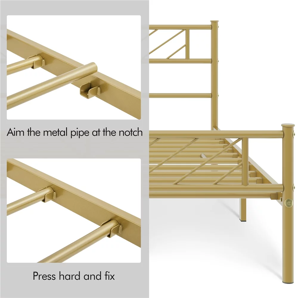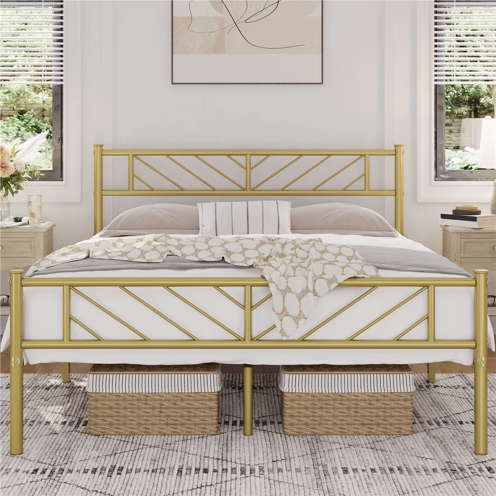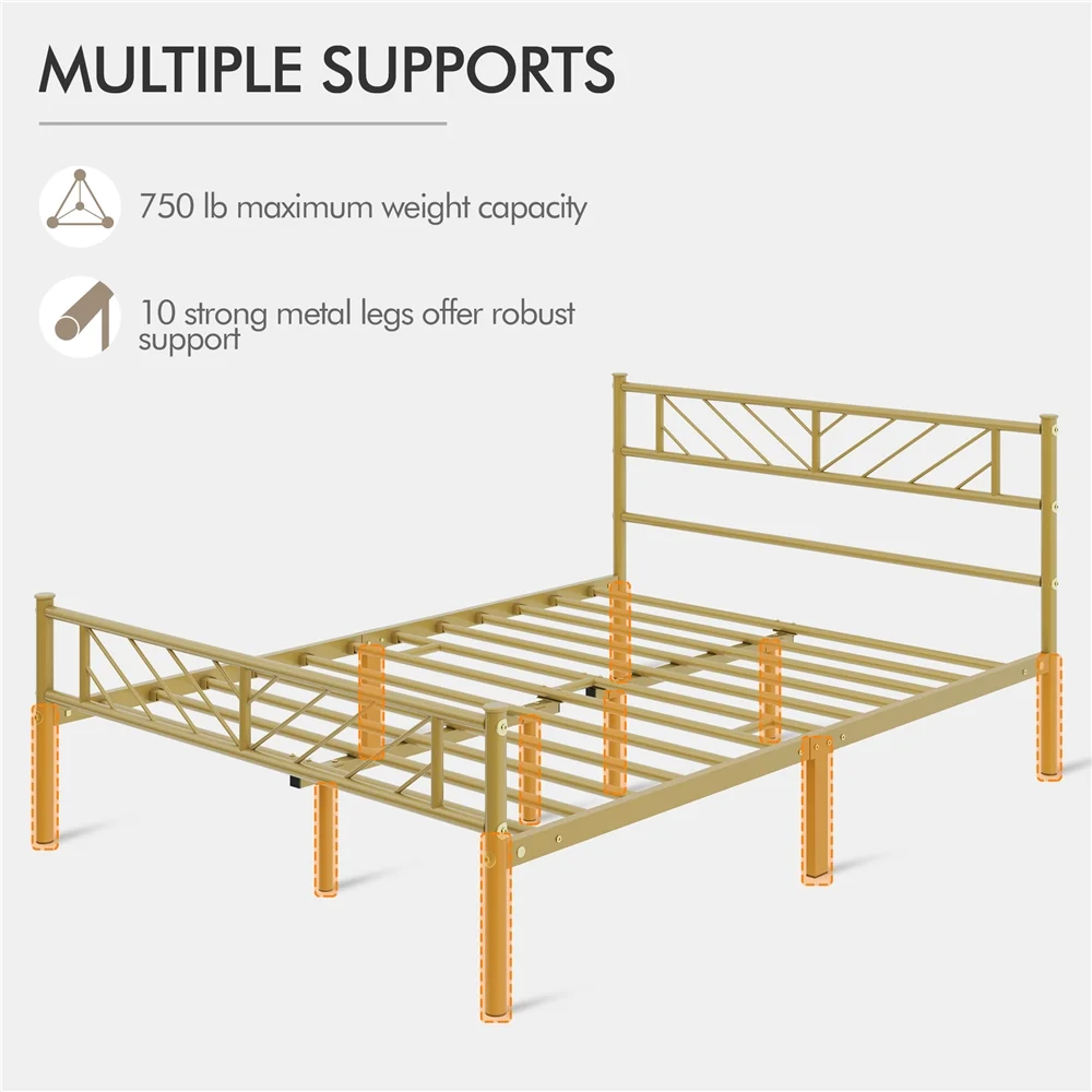 Yaheetech Metal Platform Queen Bed with Arrow Design Headboard and Footboard,Black