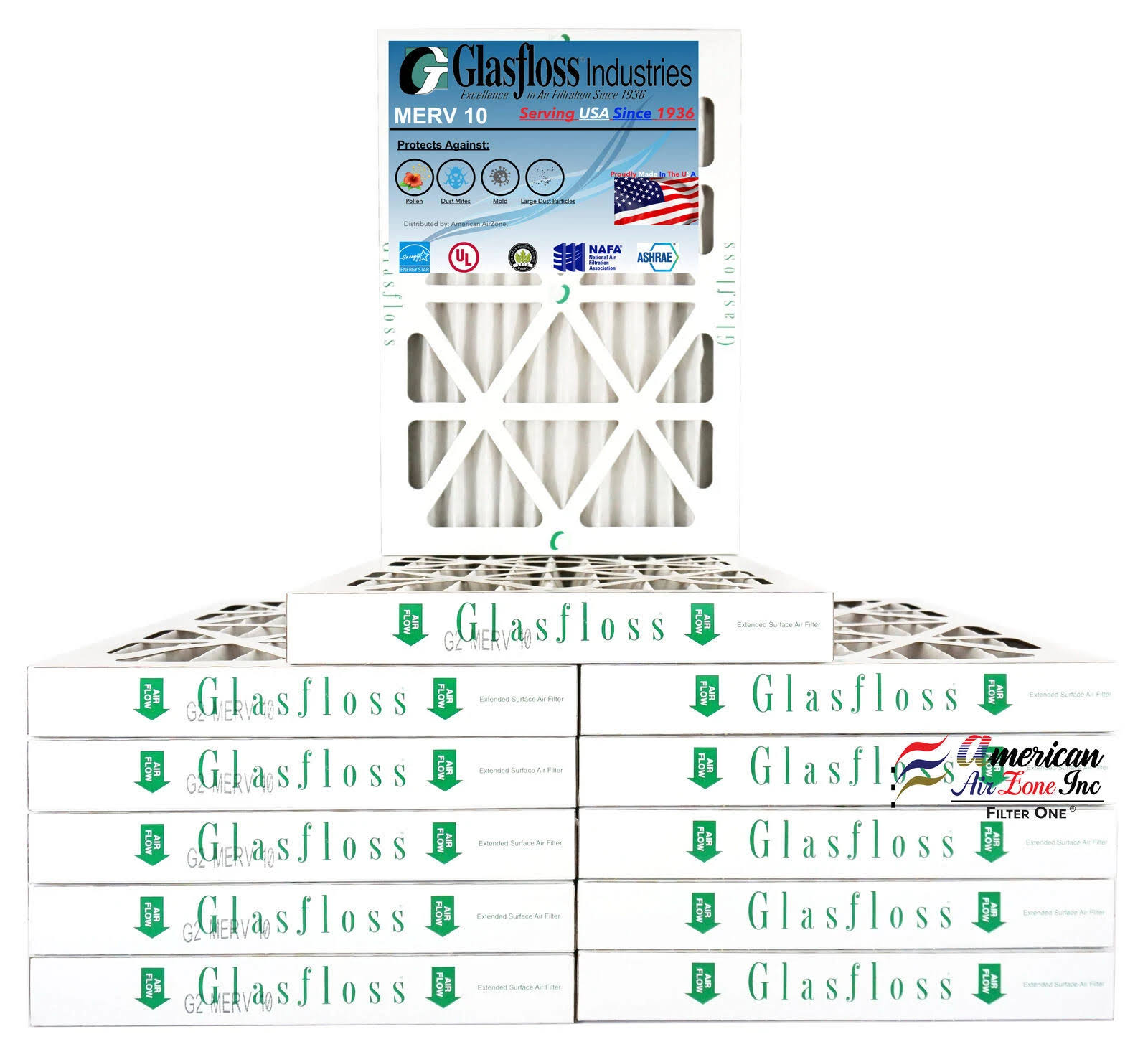 Glasfloss 14x25x2, 2" MERV 10 Pleated AC Air Furnace Filter(Qty: 12) Made in USA - Megean