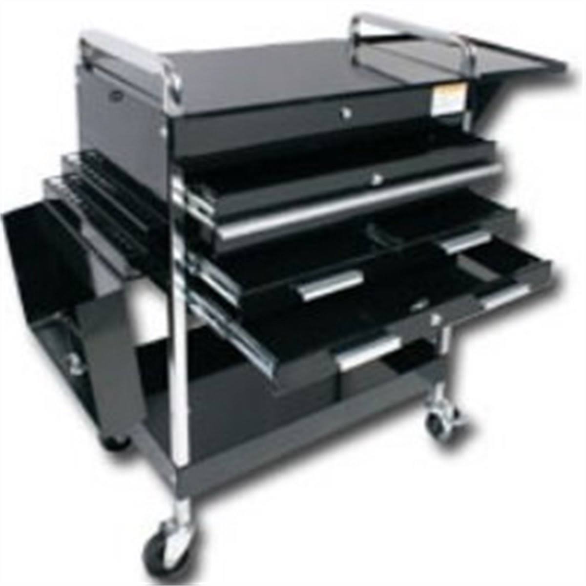 Sunex Deluxe Service Cart with Locking Top, 4 Drawers and Extra Storage - Black 8013ABKDELUXE - Megean