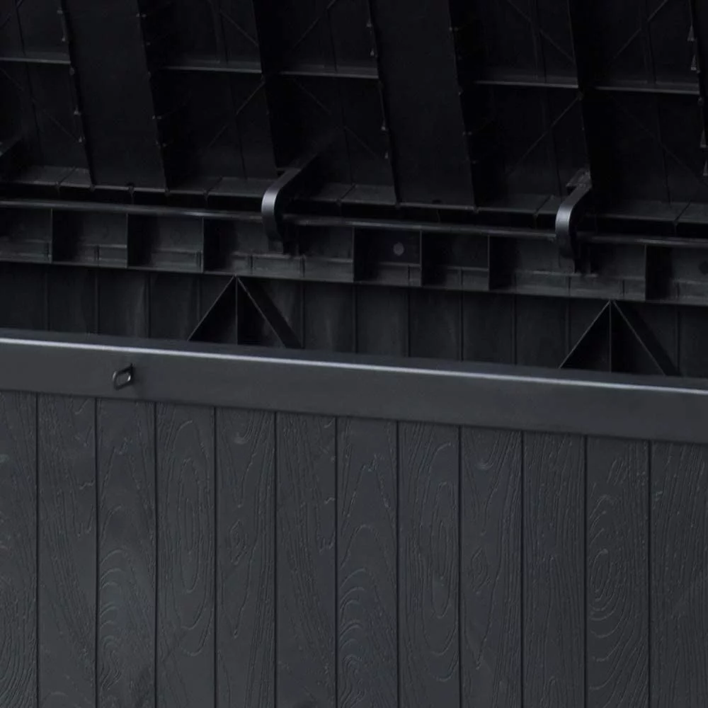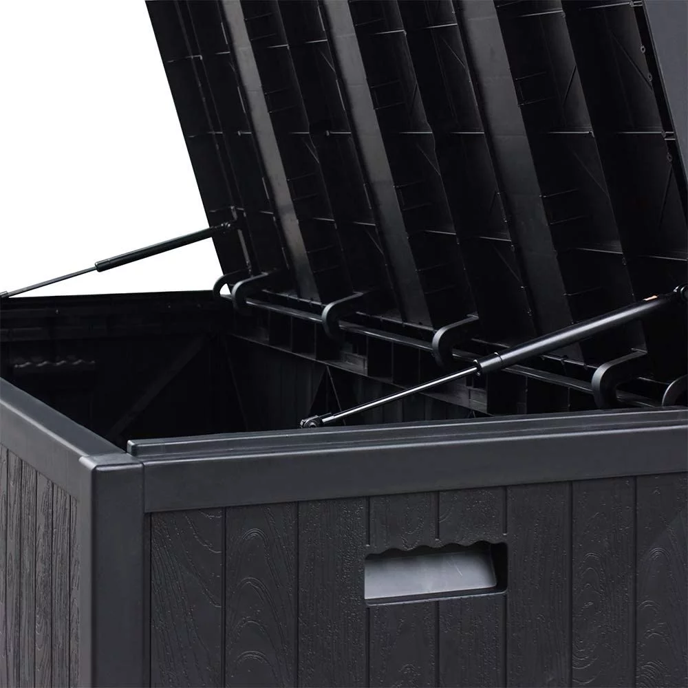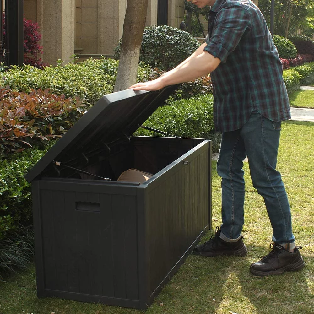 Superjoe 120 Gallon Outdoor Deck Storage Box, Patio Resin Storage Bin Outdoor Cushion Storage, Wooden-Like (Black) - Curated Treasures Market