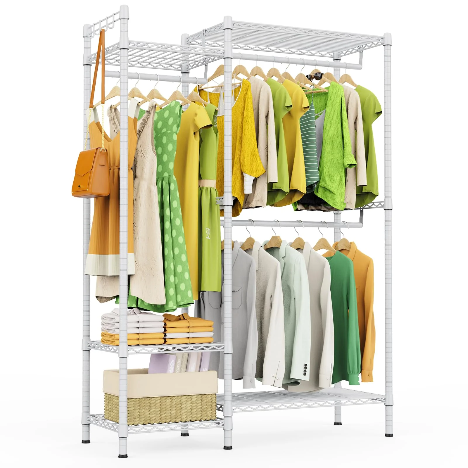 LEHOM G3 Garment Rack Heavy Duty Clothes Rack for Hanging Clothes. Freestanding Portable Wire Clothing Rack with Shelves. Adjustable Wardrobe Closet Rack. DIY Hanging Clothes Racks for Bedroom.White