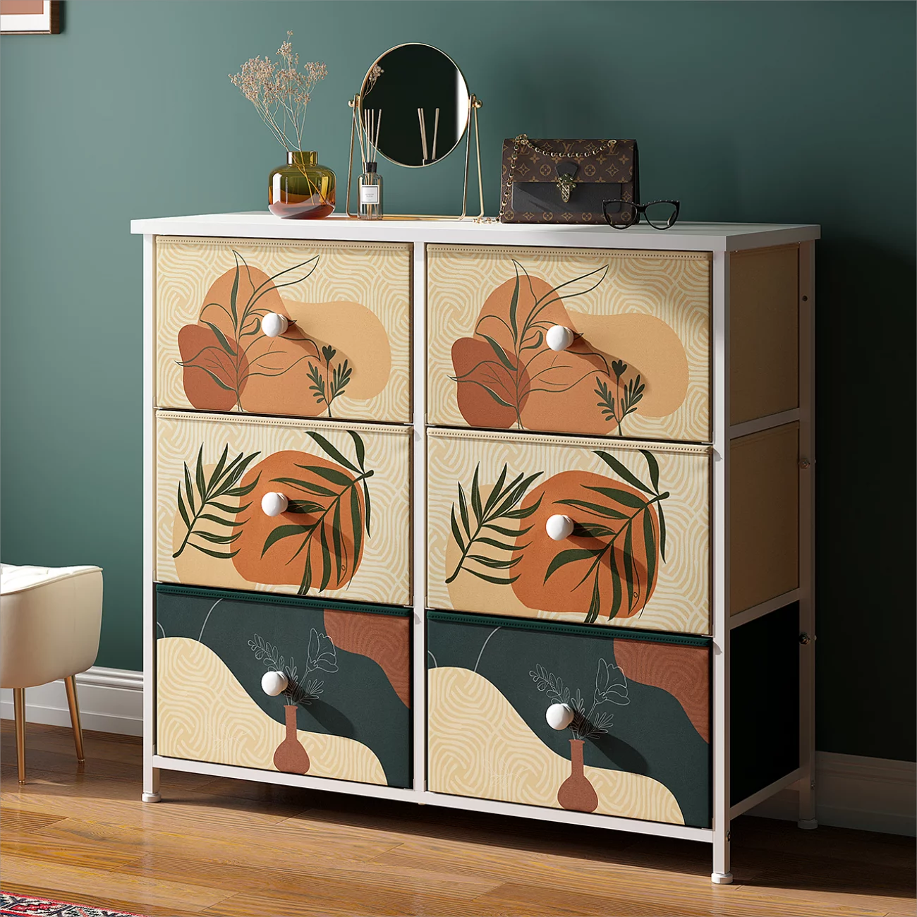 EnHomee 9 Drawer Dressers for Bedroom Furniture Dresser Chest of Drawers Storage Tower with Fabric Drawers & Wooden Top Boho Dresser for Closet Living Room Entryway, Printed