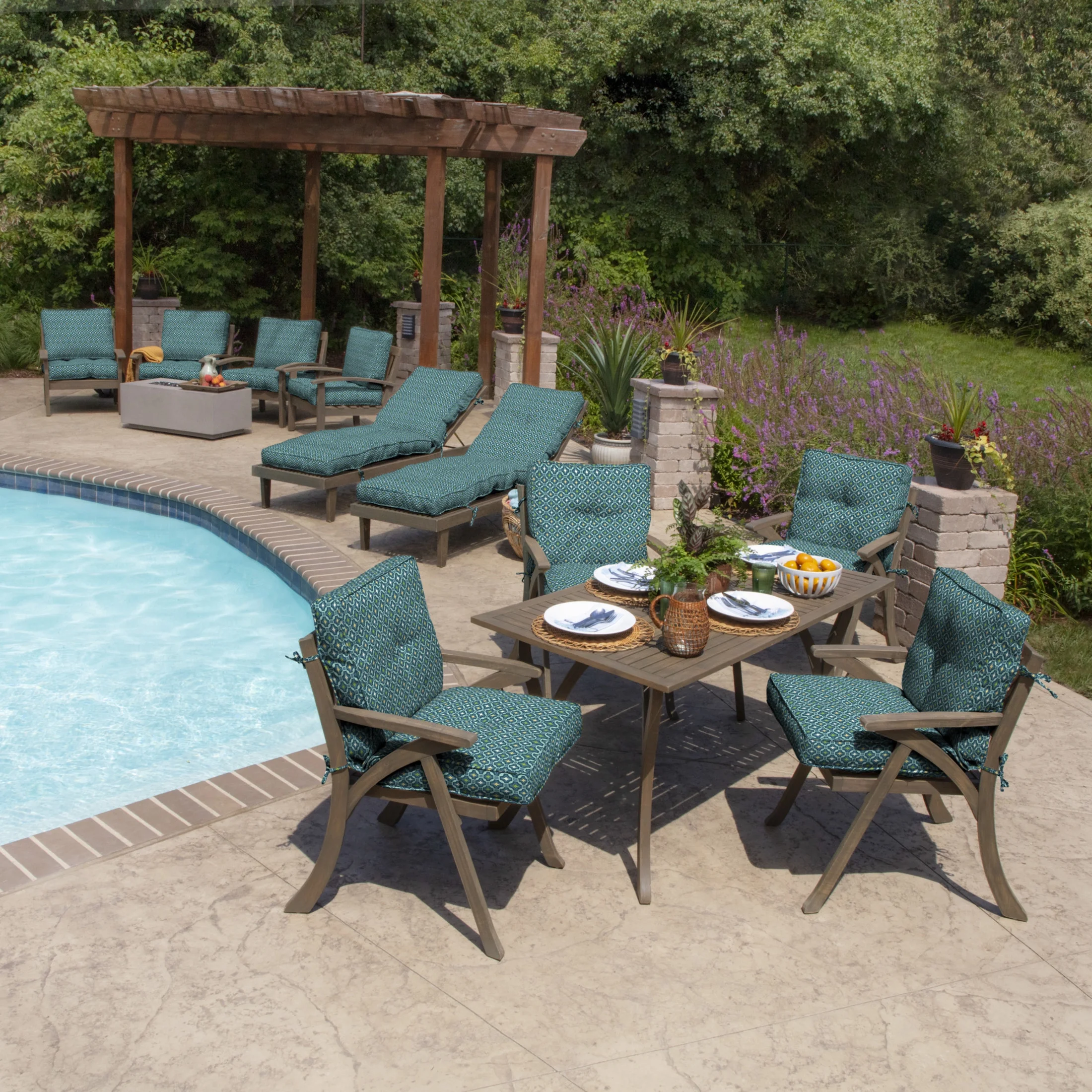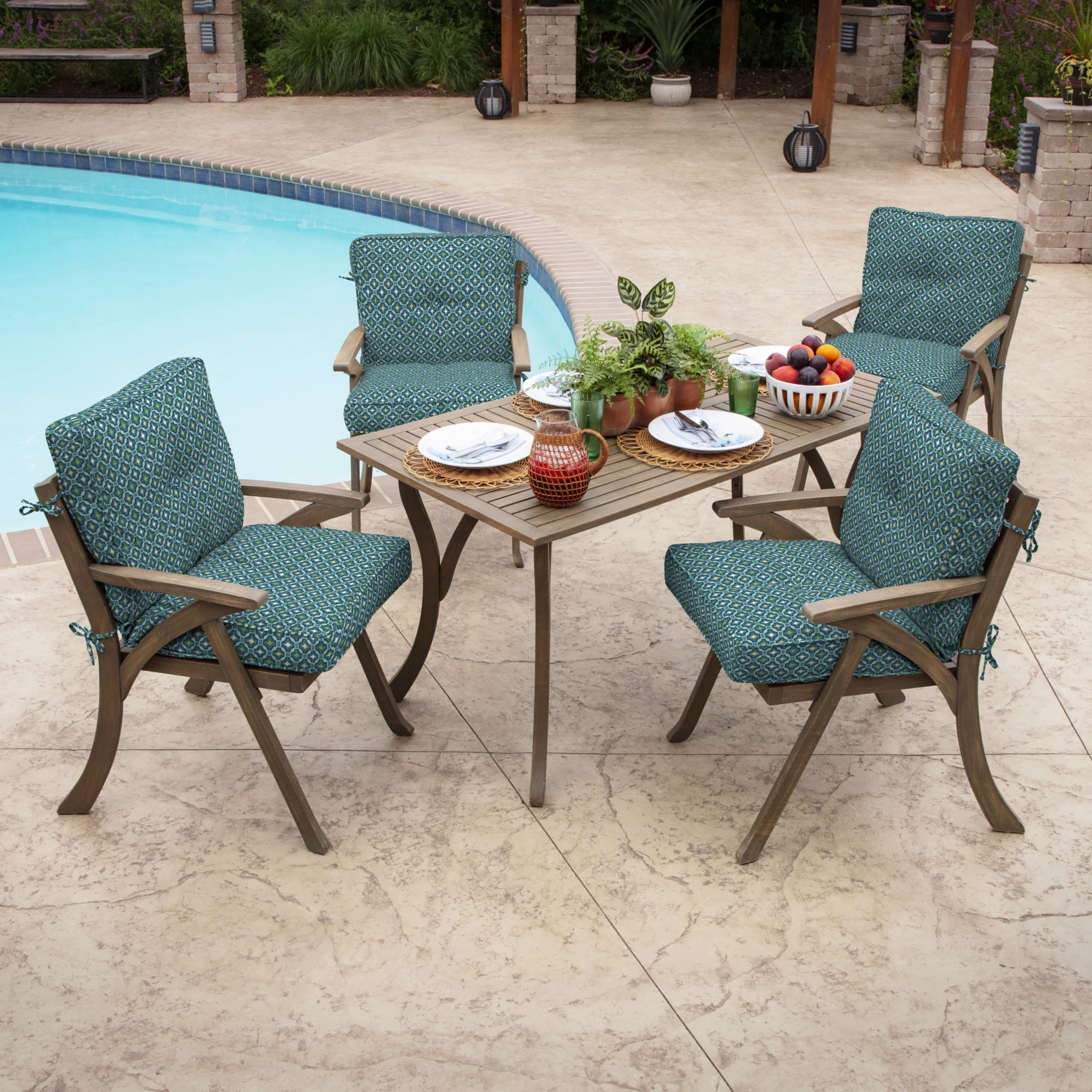 Arden Selections Outdoor Plush Classic Tufted Blowfill Dining Chair Cushion, 20 x 21, Rain-Proof, Fade Resistant, Tufted Cushion for Dining Chairs 20 x 21, Alana Tile - Curated Treasures Market
