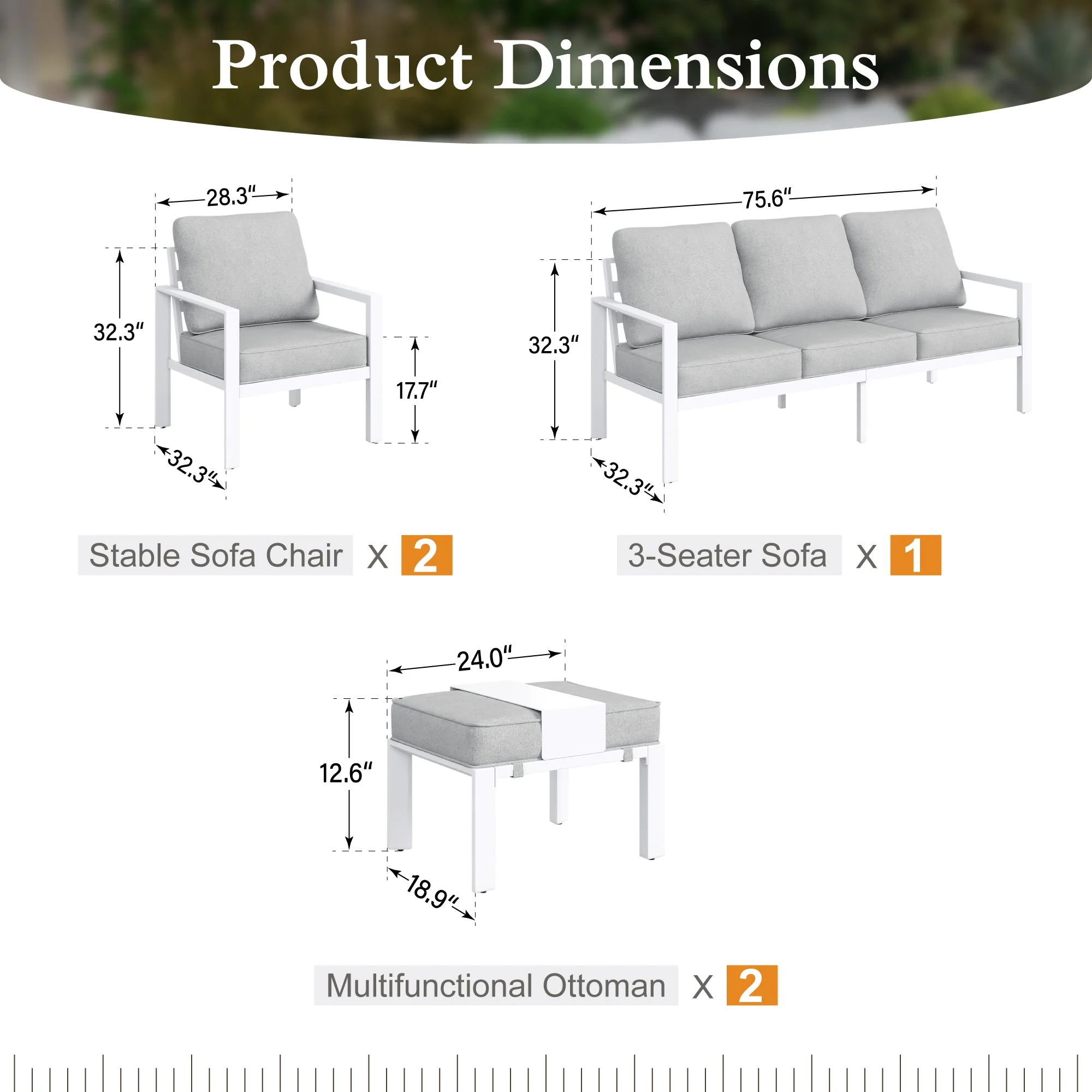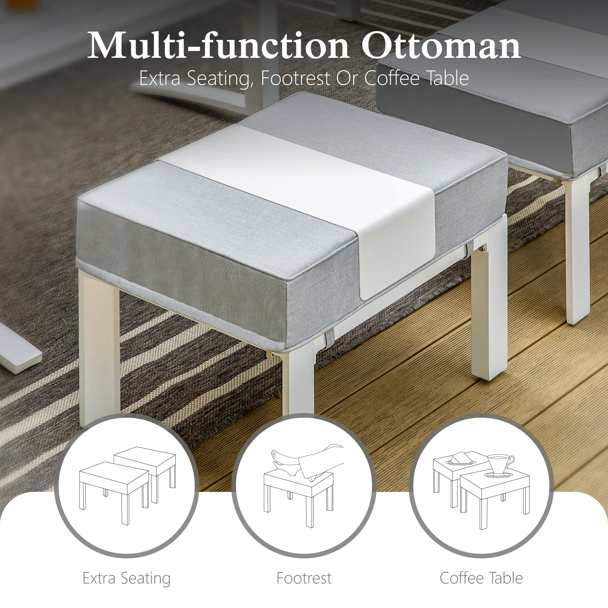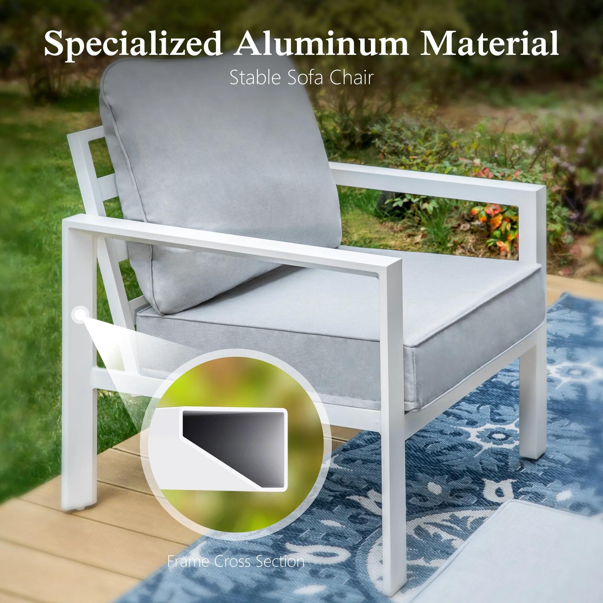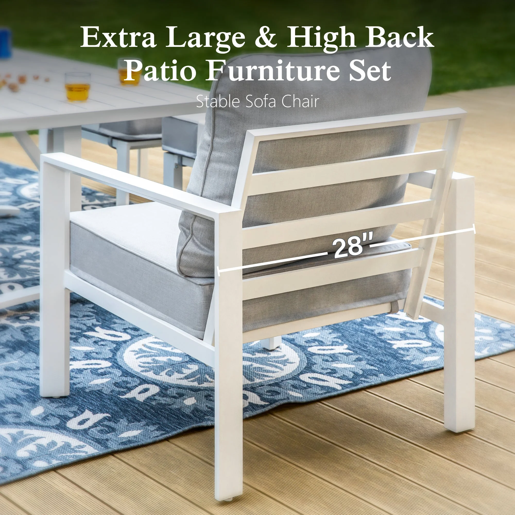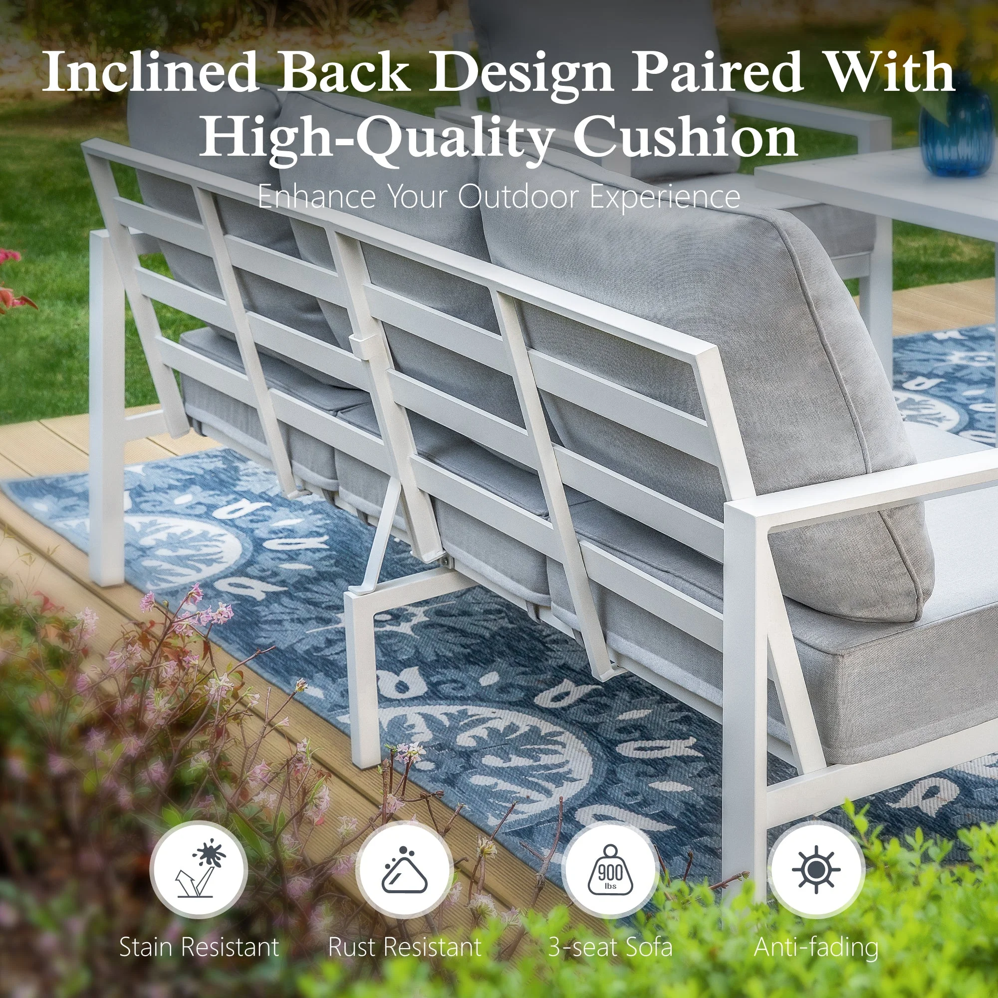 Sophia & William Patio Aluminum Conversation Set Outdoor White Frame Sofa &Table Funiture Set, Gray Cushions - Curated Treasures Market