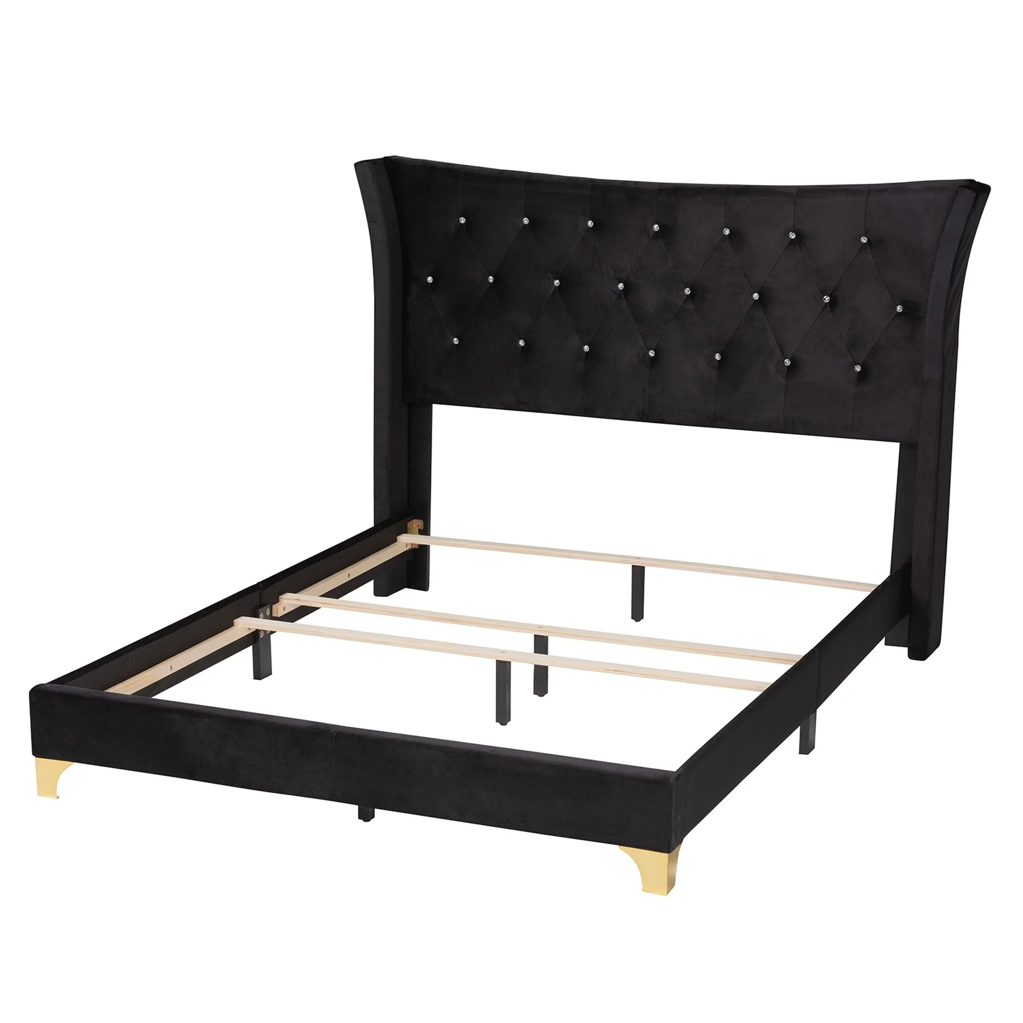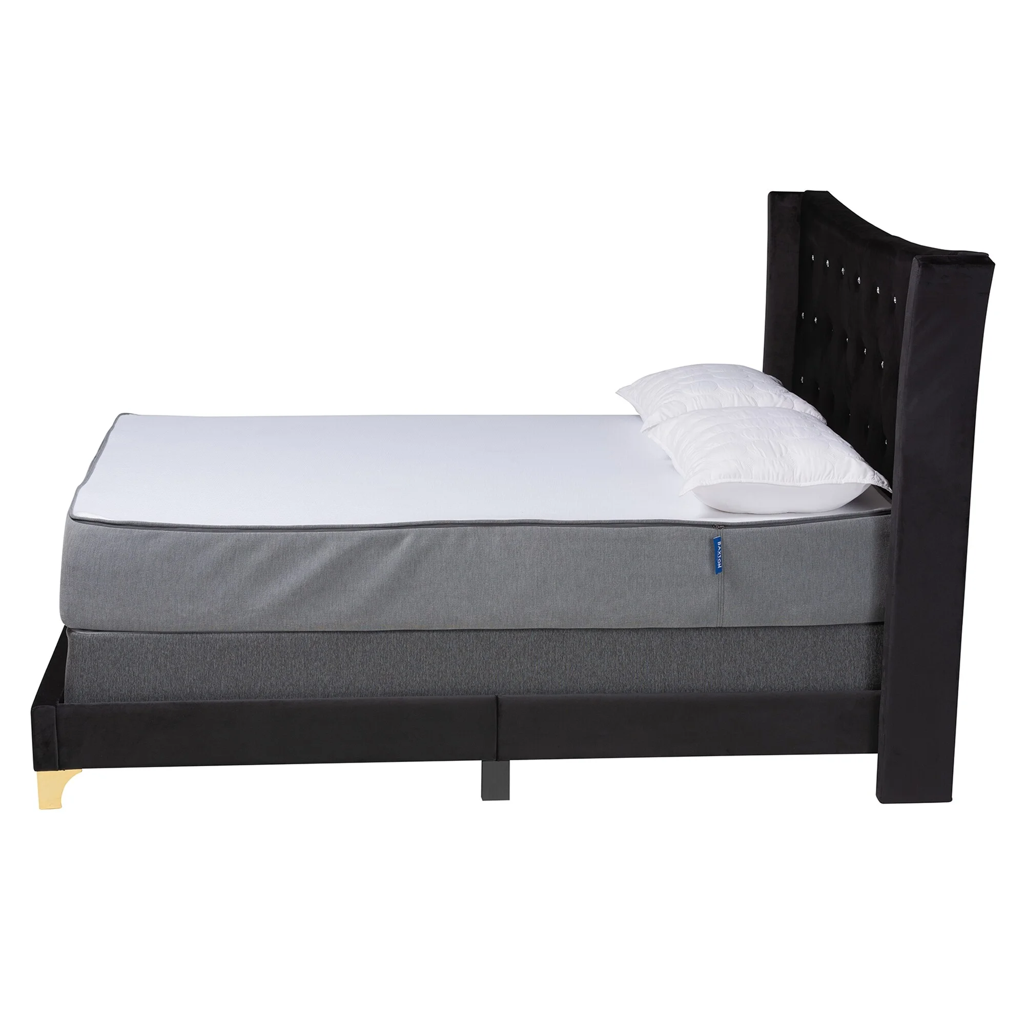 Baxton Studio Easton Contemporary Glam and Luxe Velvet and Gold Metal Queen Size Panel Bed Black, Gold - Curated Treasures Market