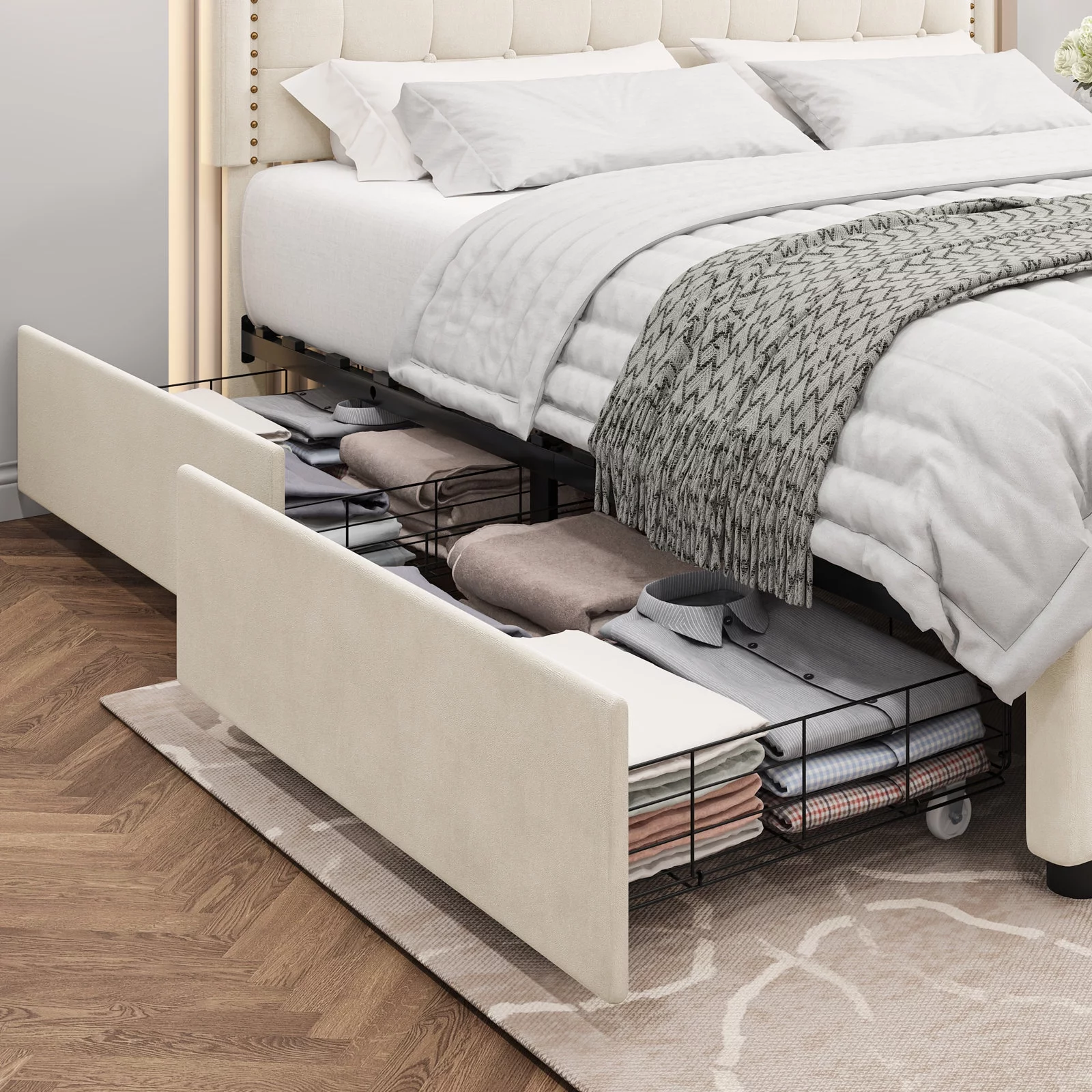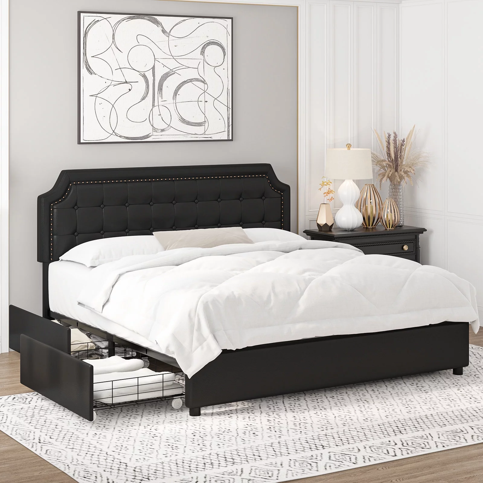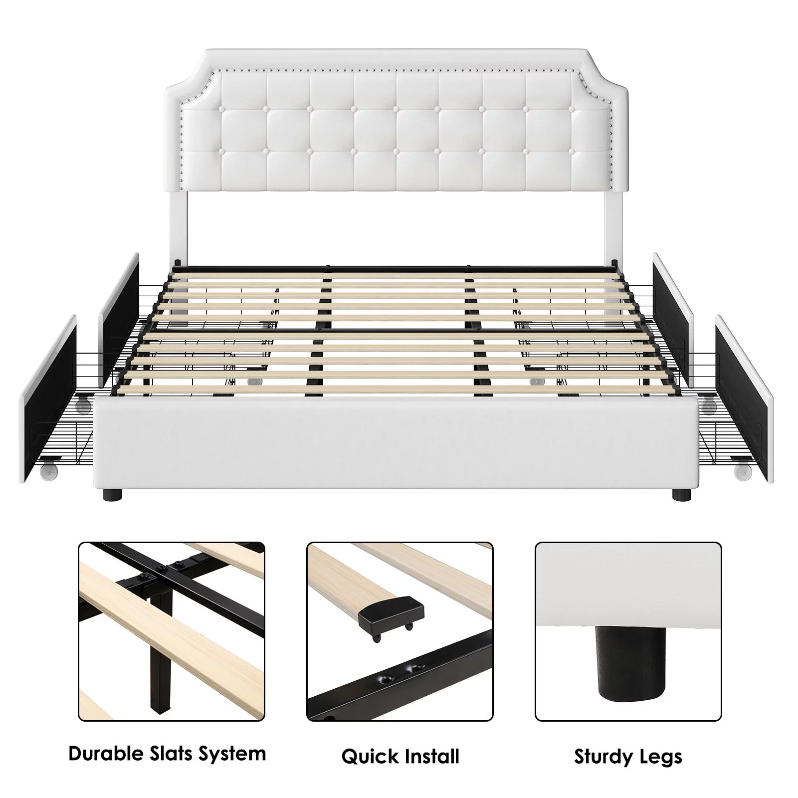 Nantucket King Wood Platform Bed with Footboard and Storage Drawers in Walnut