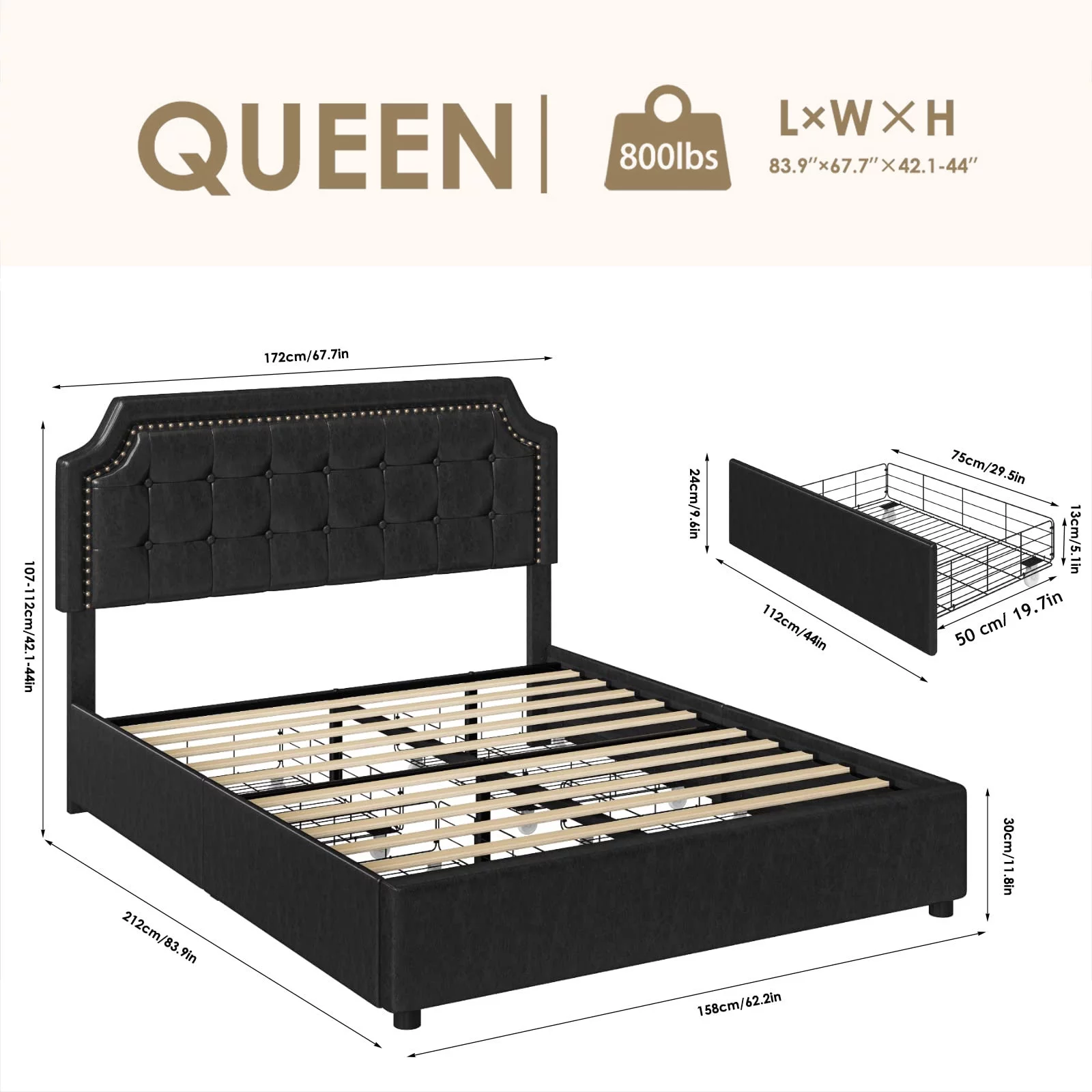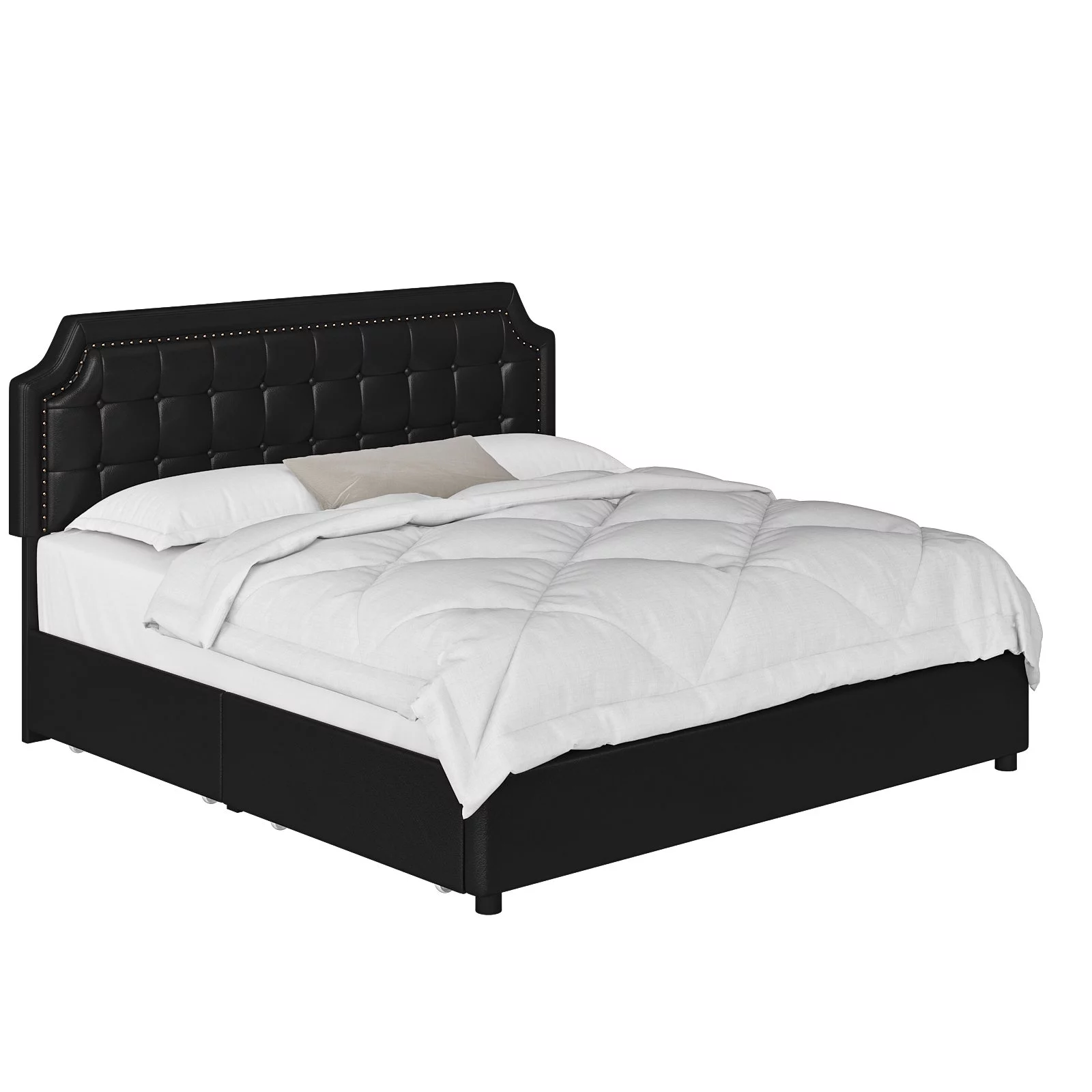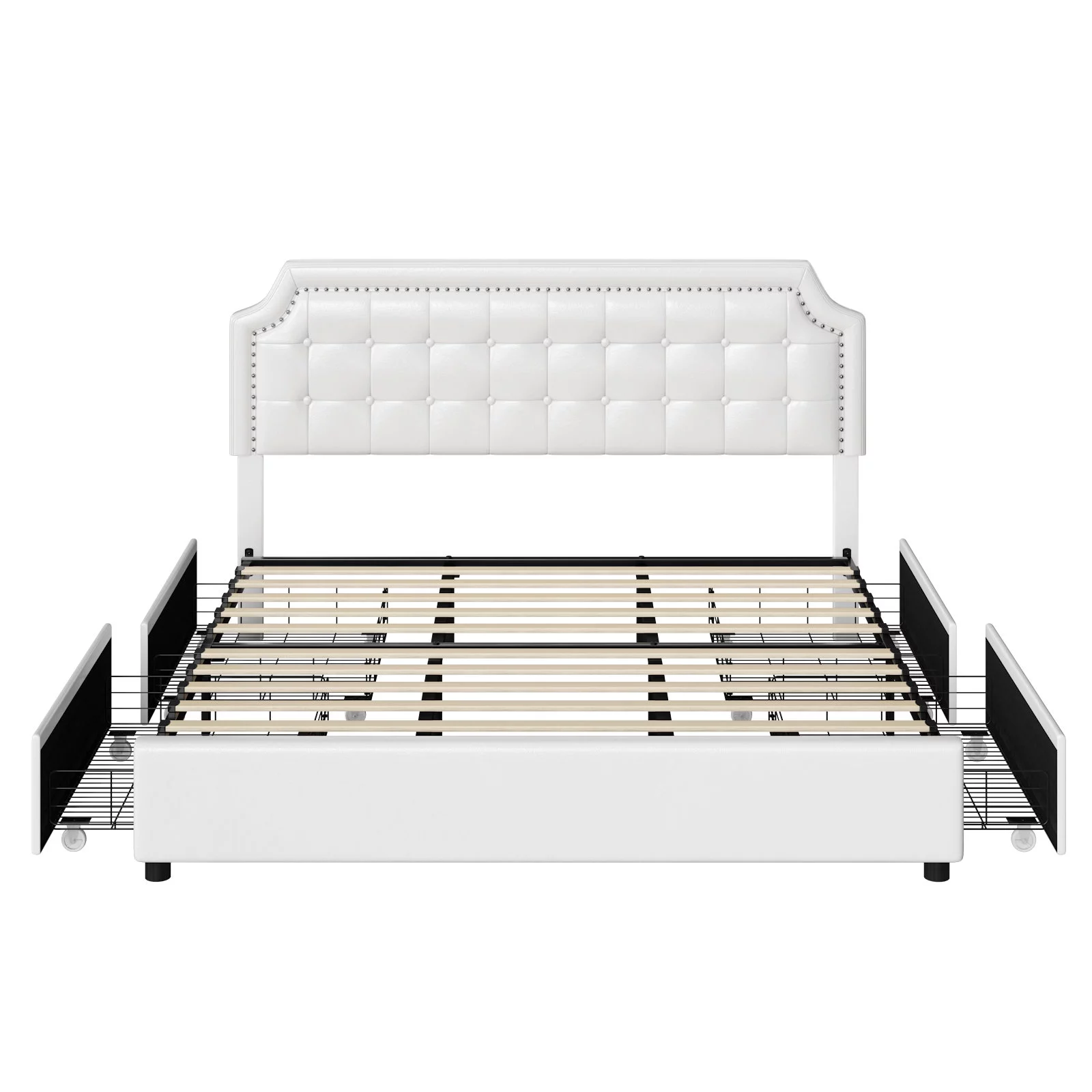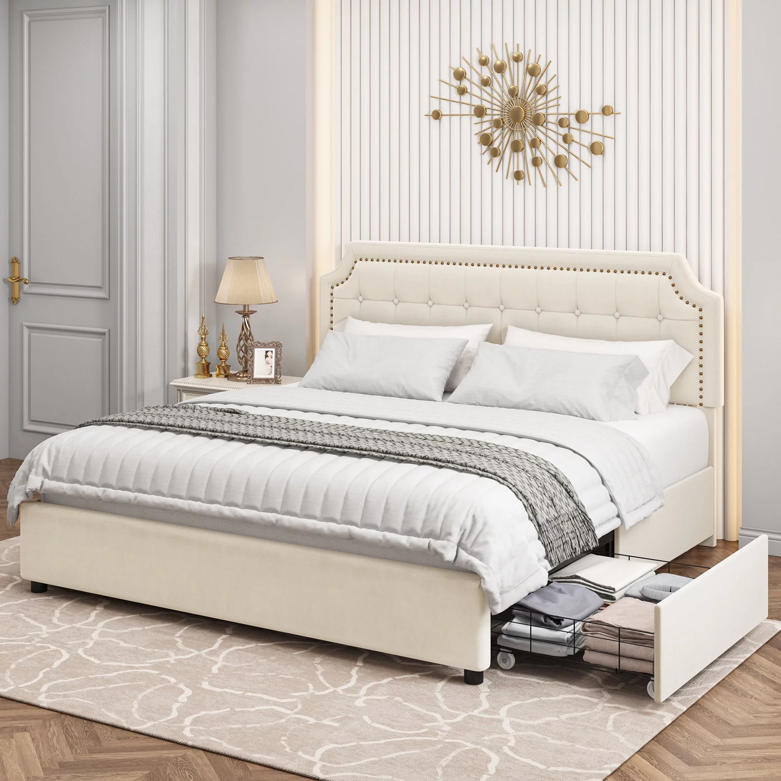 Nantucket King Wood Platform Bed with Footboard and Storage Drawers in Walnut