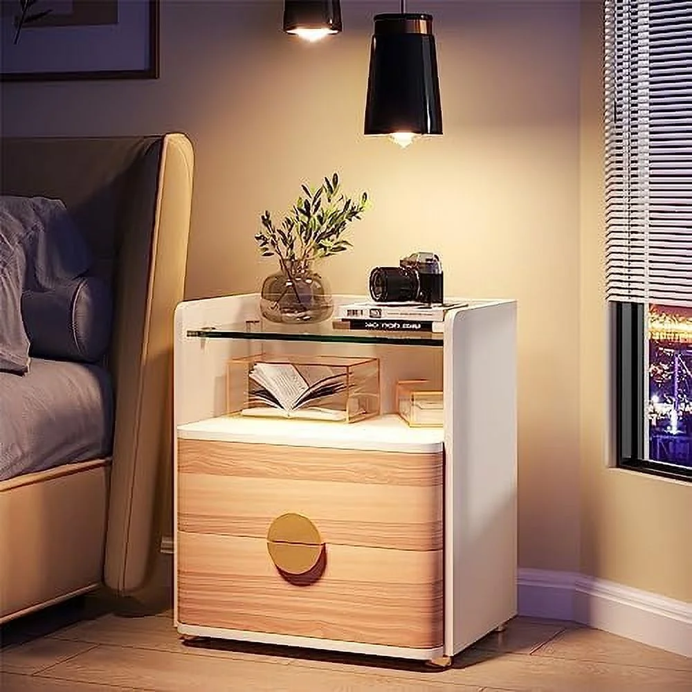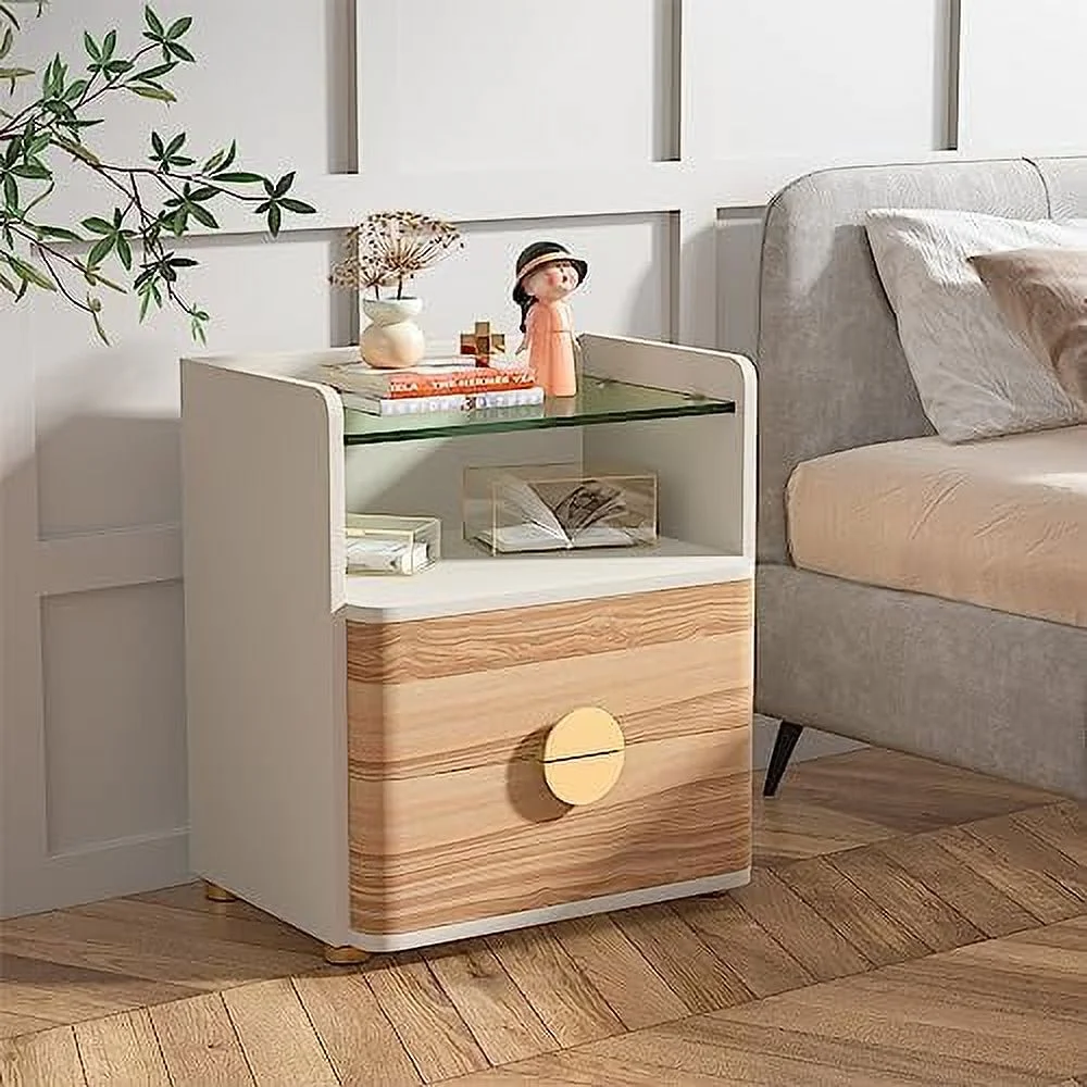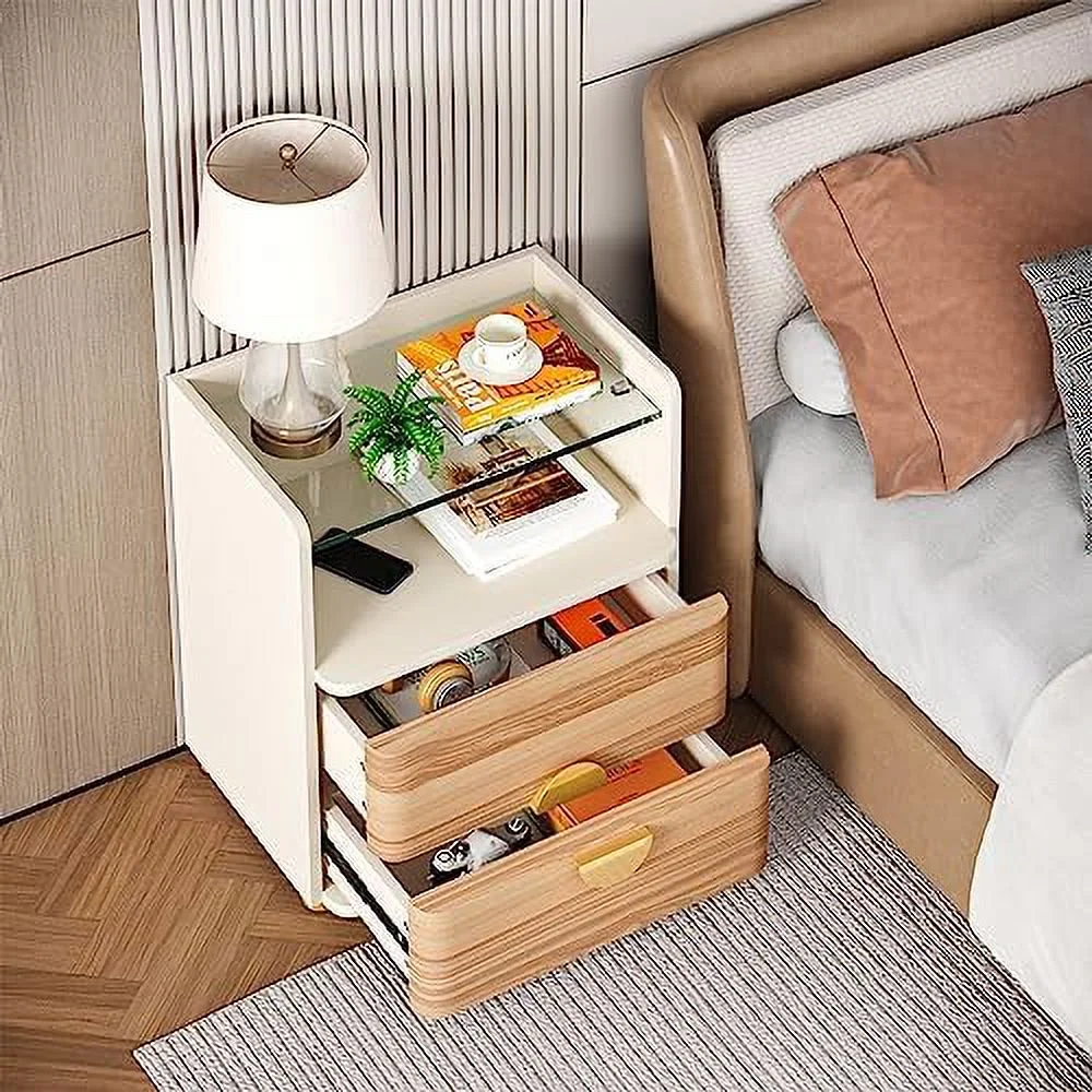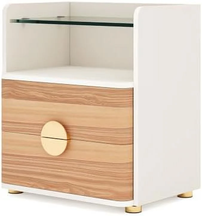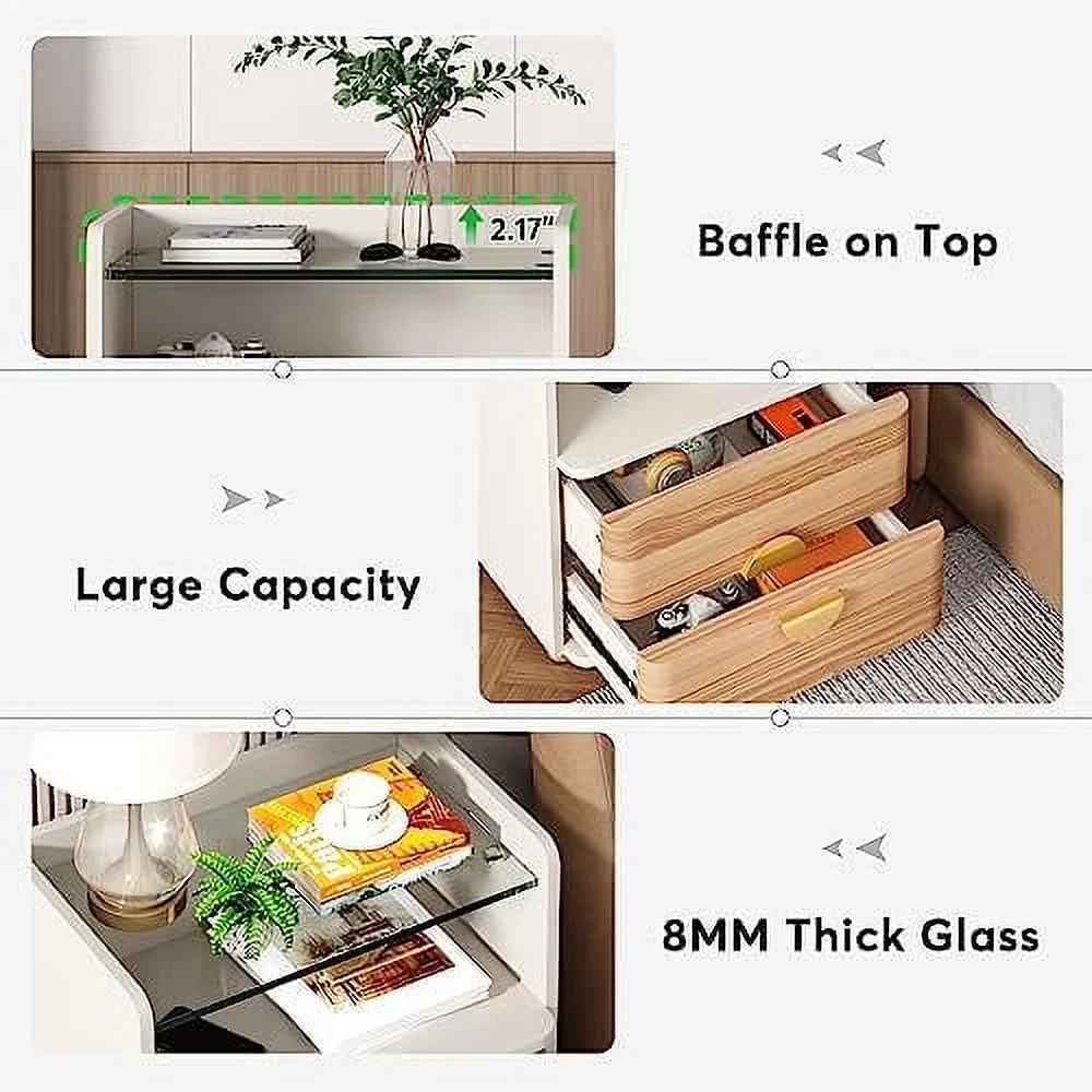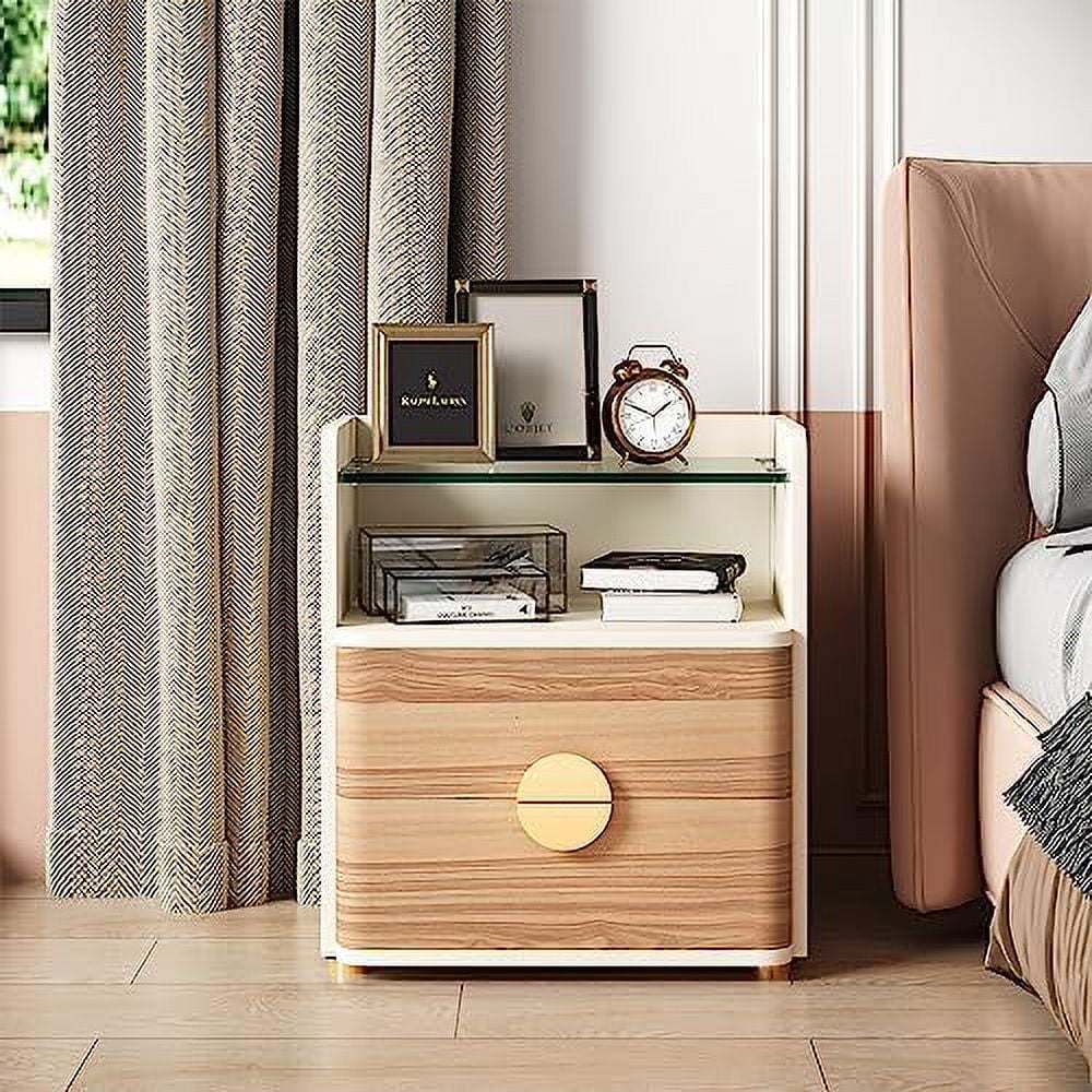 SQRTYBV Nightstand with 2 Drawers Modern Night Stands with Open Wooden Bed for Bedroom Large Side End Table with Tempered Glasses for Living Room Easy Assembly - Curated Treasures Market