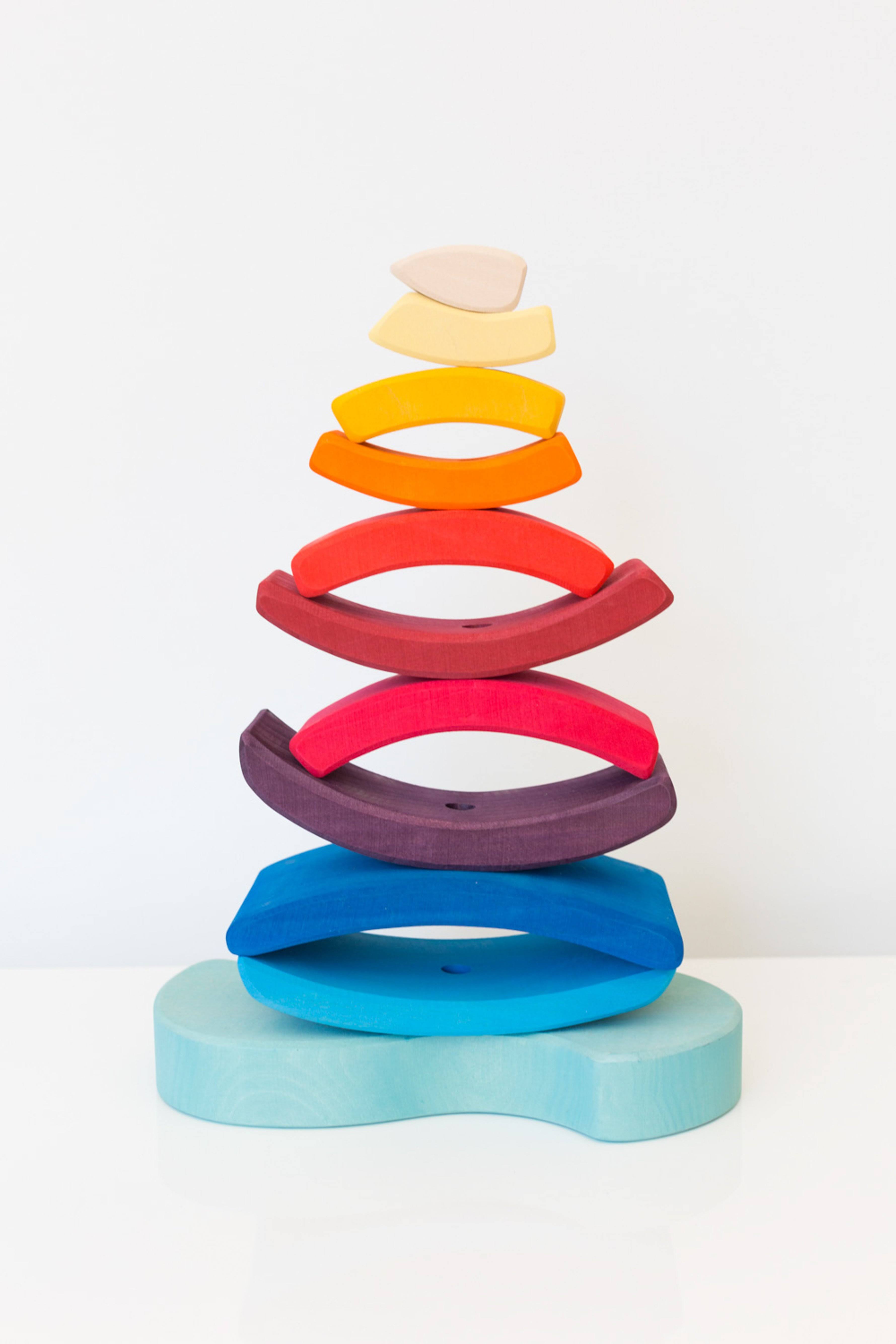 Grimm's Giant Boat on The Water Wooden Rainbow Stacking Tower, 11 Blocks - Megean