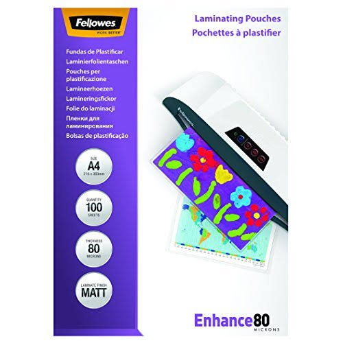 Fellowes Matt Laminating Pouches 80 Micron, A4 100-Pack - Megean