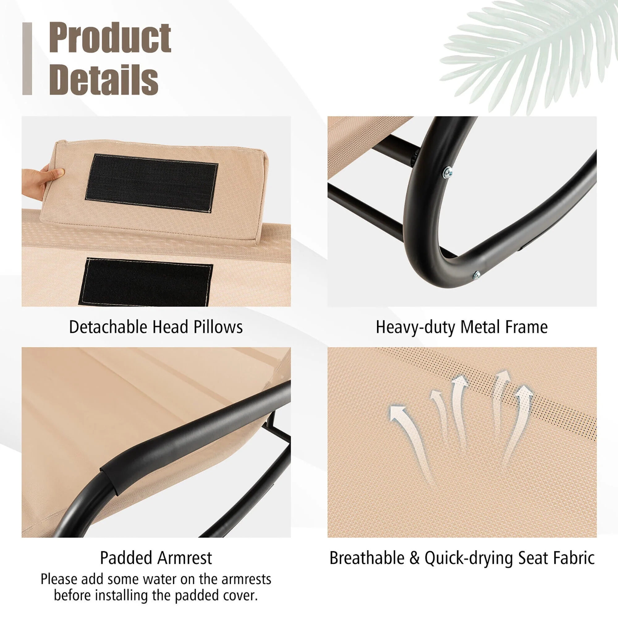 Gymax Outdoor 2-Person Double Rocking Chaise Lounge w/ Canopy & Wheels Metal Frame