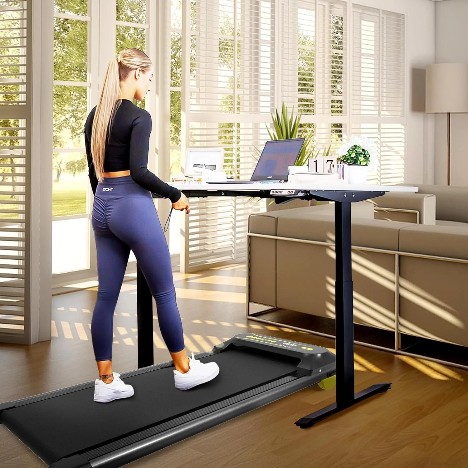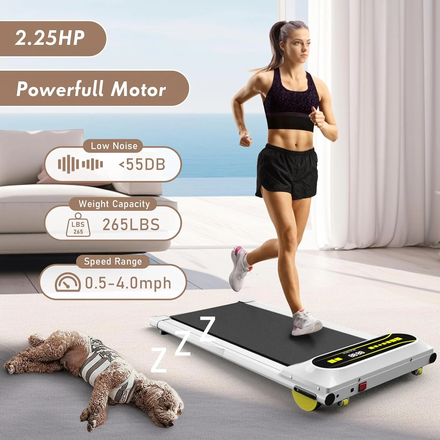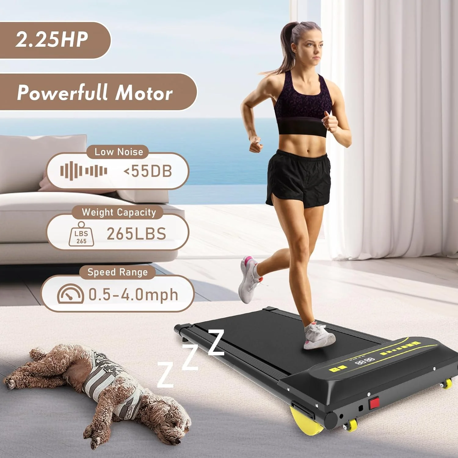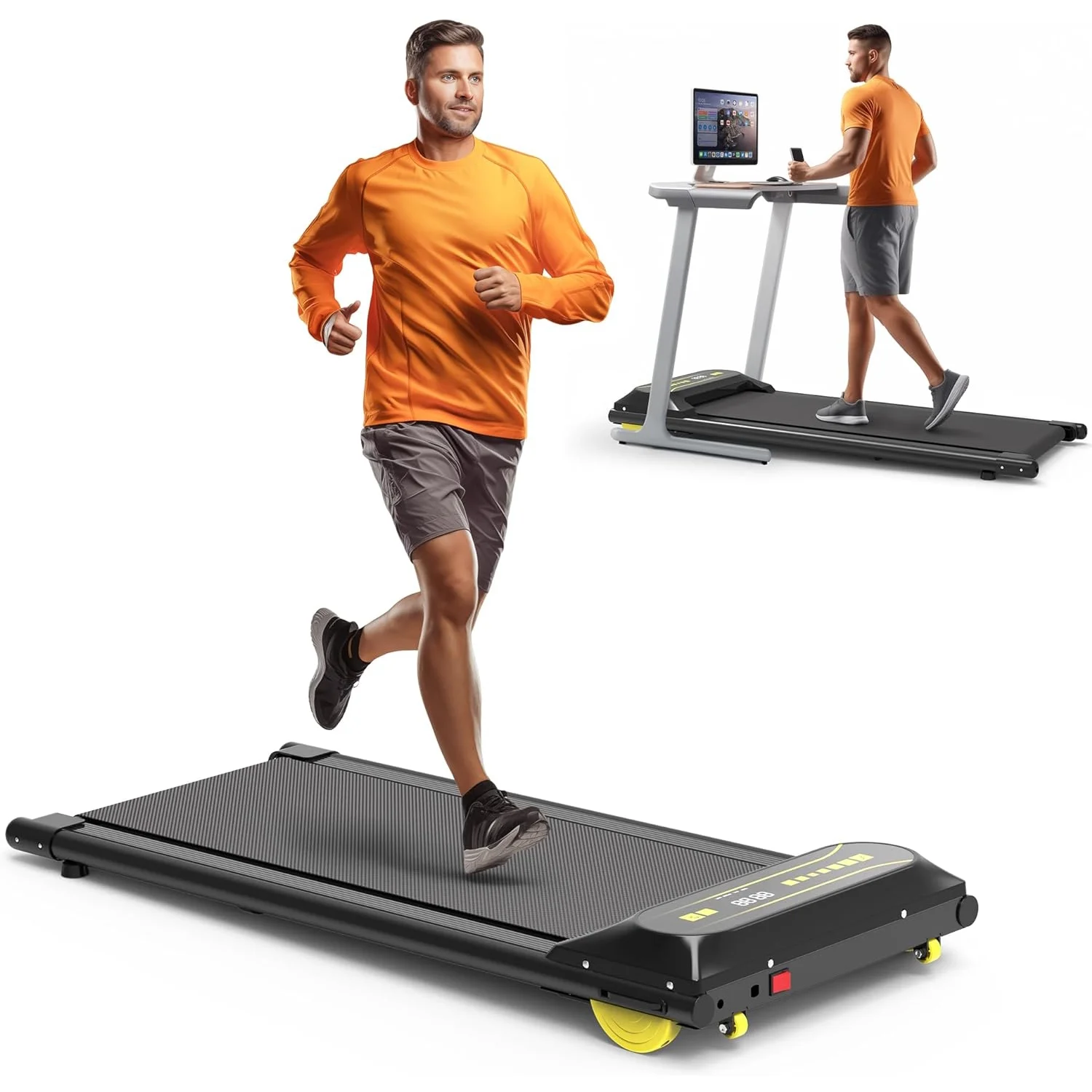 OBENSKY Walking Pad Treadmill Under Desk, 2.25HP Portable Mini Treadmill w/ Remote Control Black
