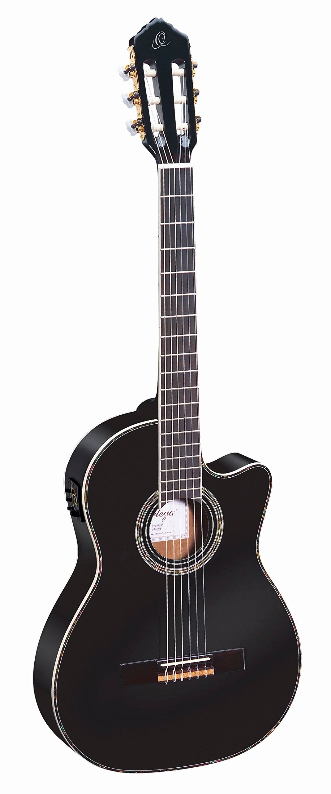 Ortega Family Series Pro RCE145BK Thinline Acoustic-Electric Nylon Guitar Black - Megean