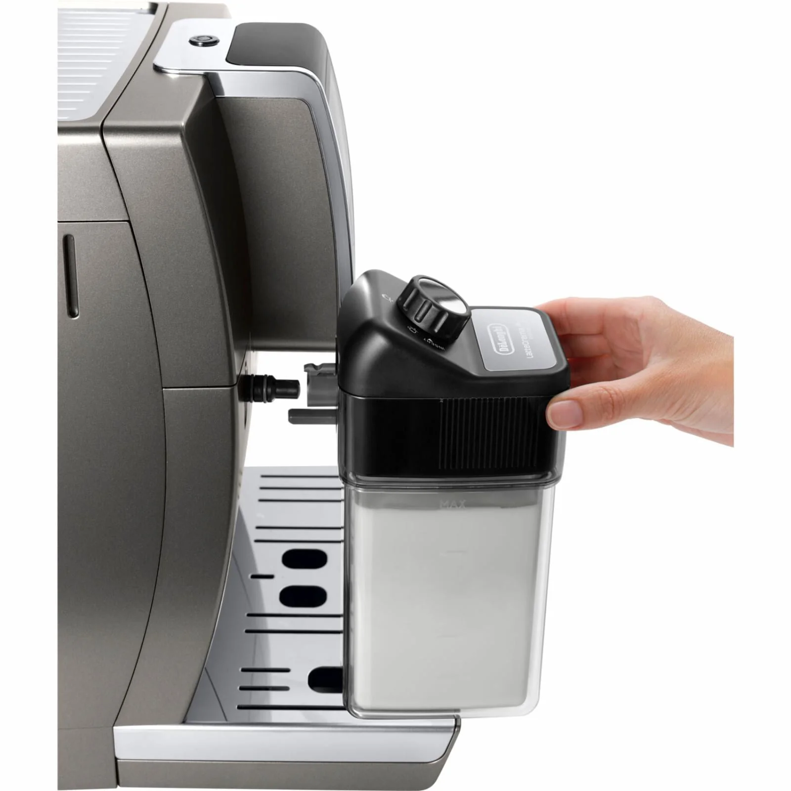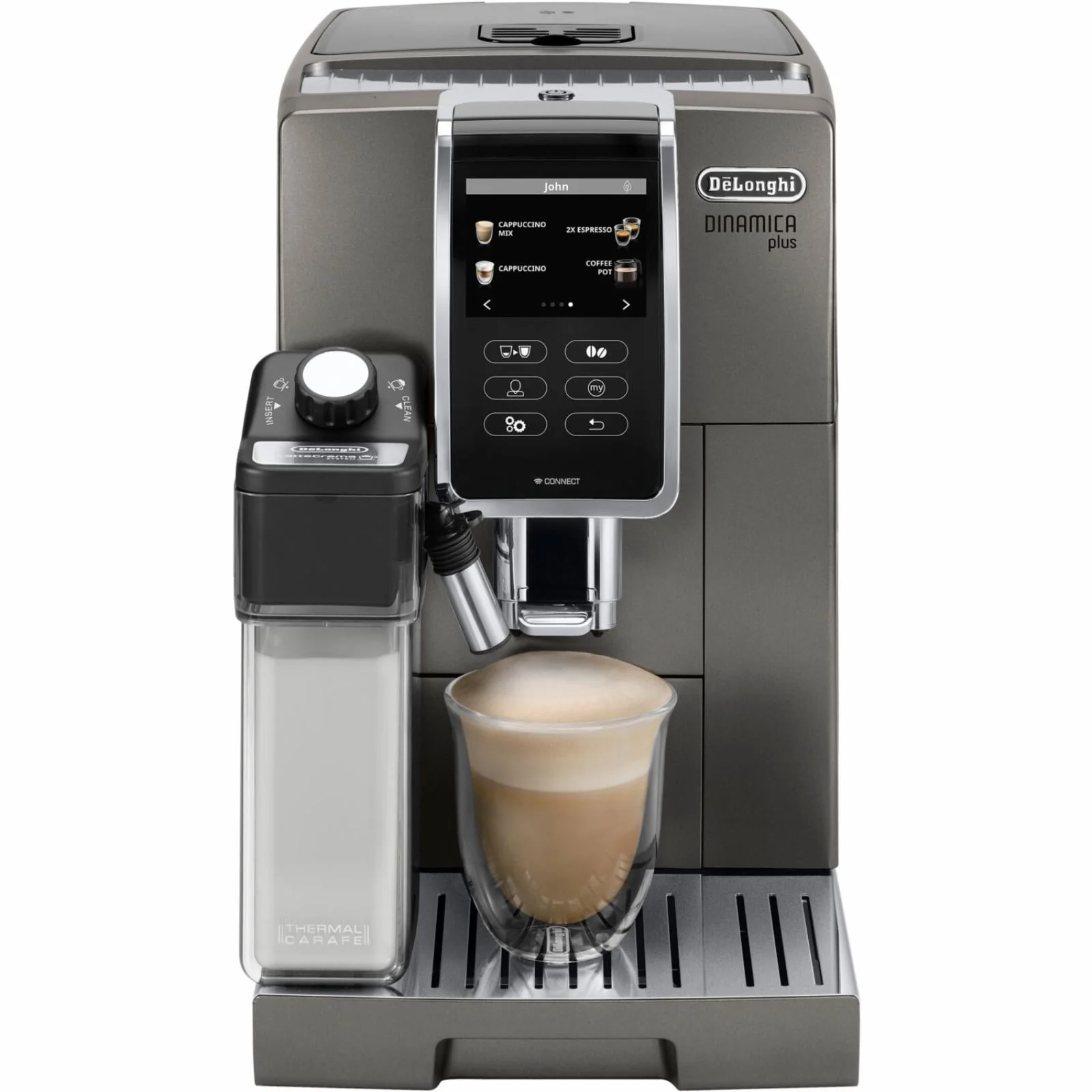 De'Longhi Dinamica Plus, Smart Coffee and Espresso Machine with Coffee Link Connectivity App and Automatic Milk Frother, Titanium