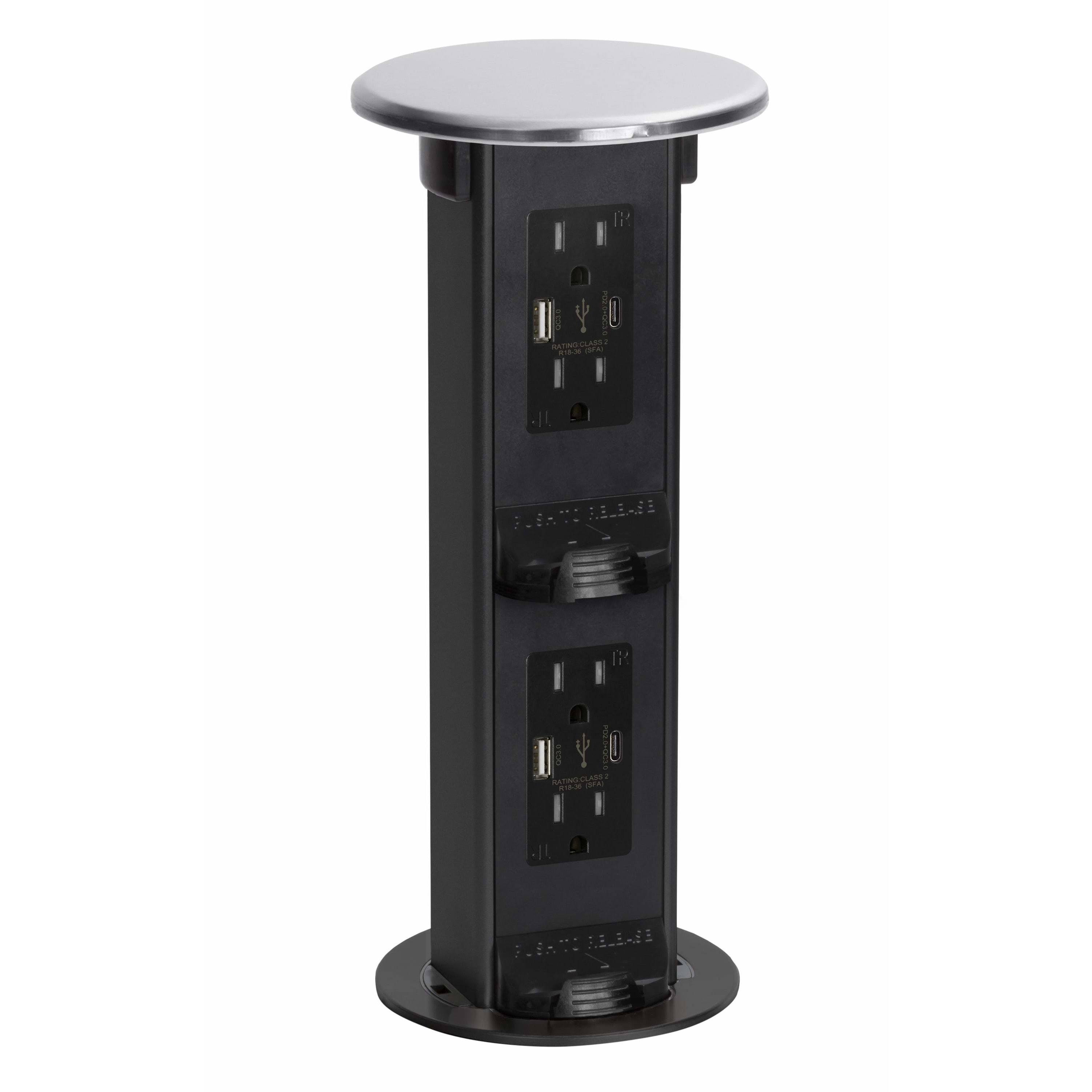 Lew Electric PUR15-S-AC-2P Pop-Up Countertop Box - Double 15 Amp Duplex Power / 2 USB A/C Receptacles - Stainless Steel - Megean