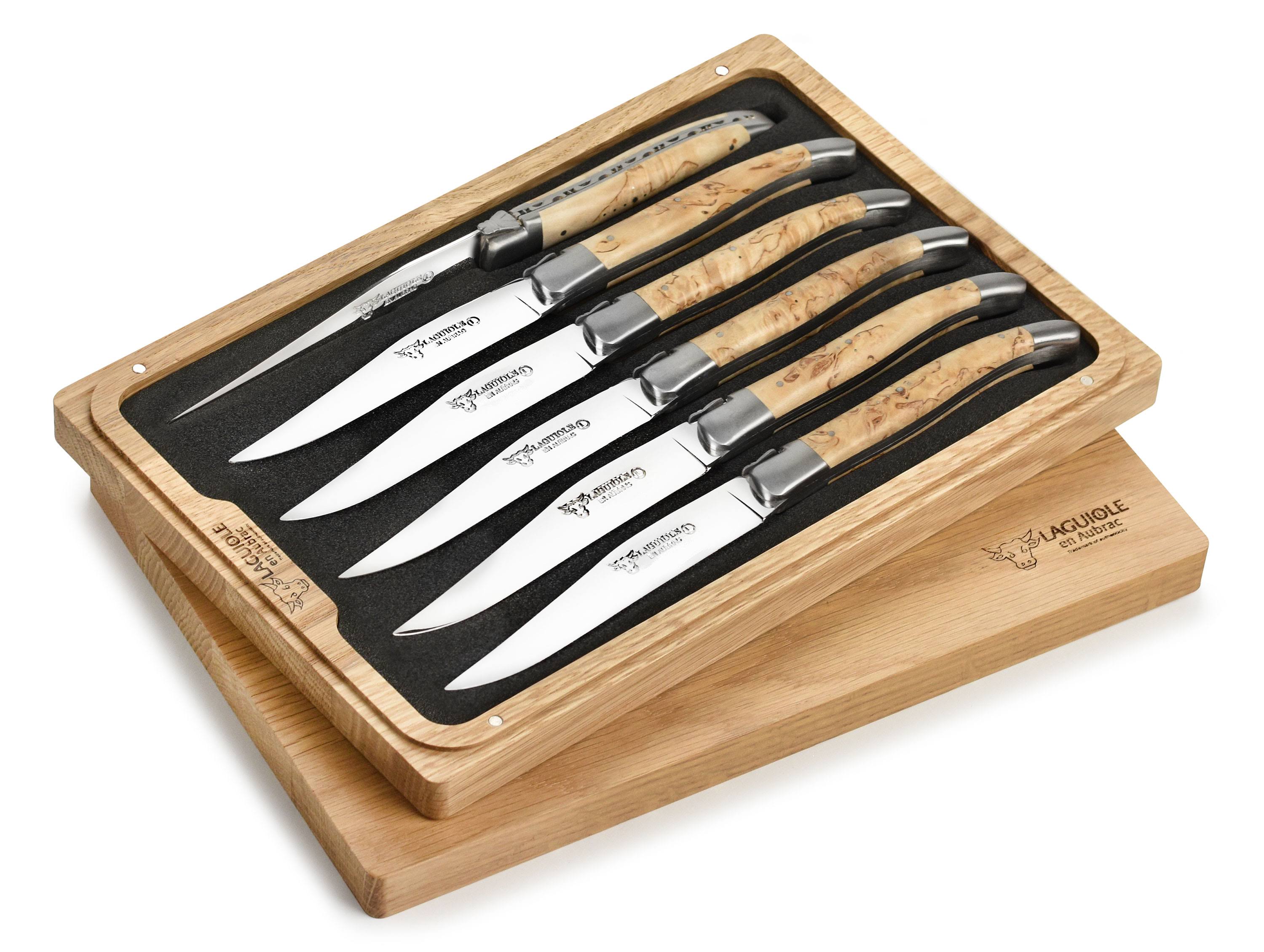 Laguiole en Aubrac 6-Piece Stainless Steel Steak Knife Set with Birchwood Handles - Megean