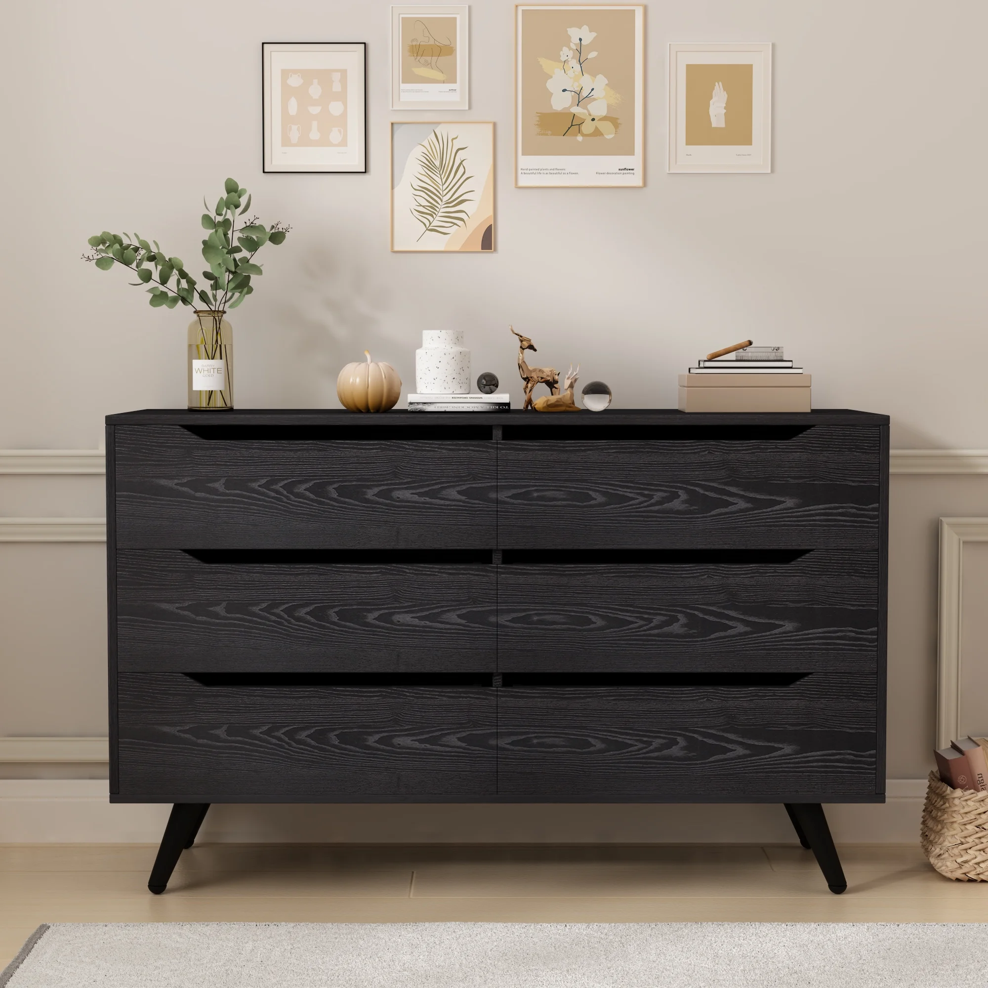 Prime Garden Wood 6 Drawer Dresser Modern Mid Century Chest for Bedroom Living Room.Black