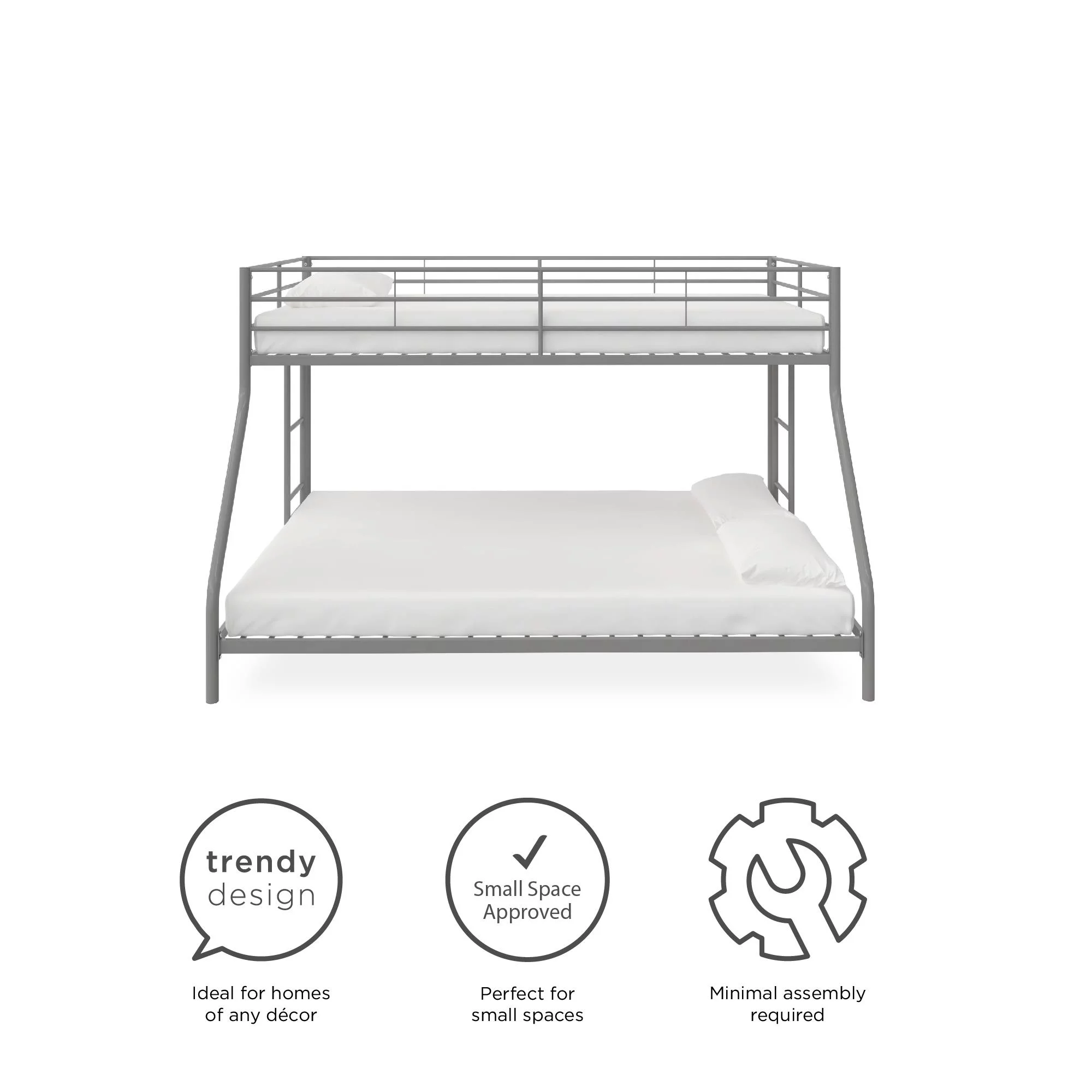 Mainstays Small Space Junior Twin over Full Low Profile Metal Bunk Bed, Black