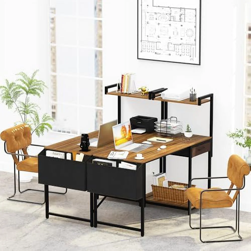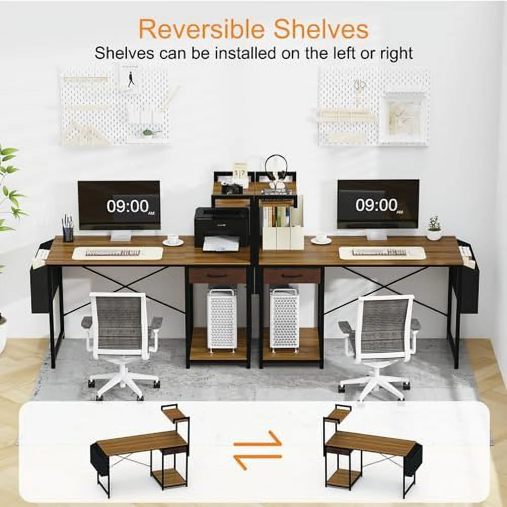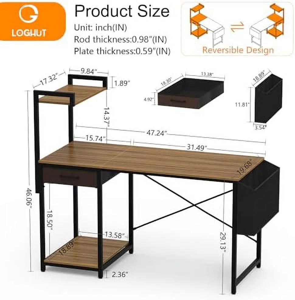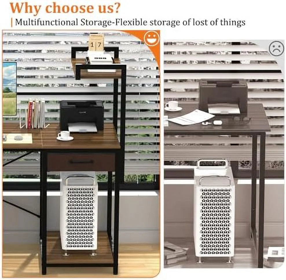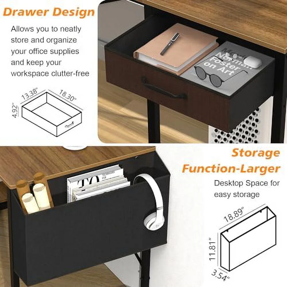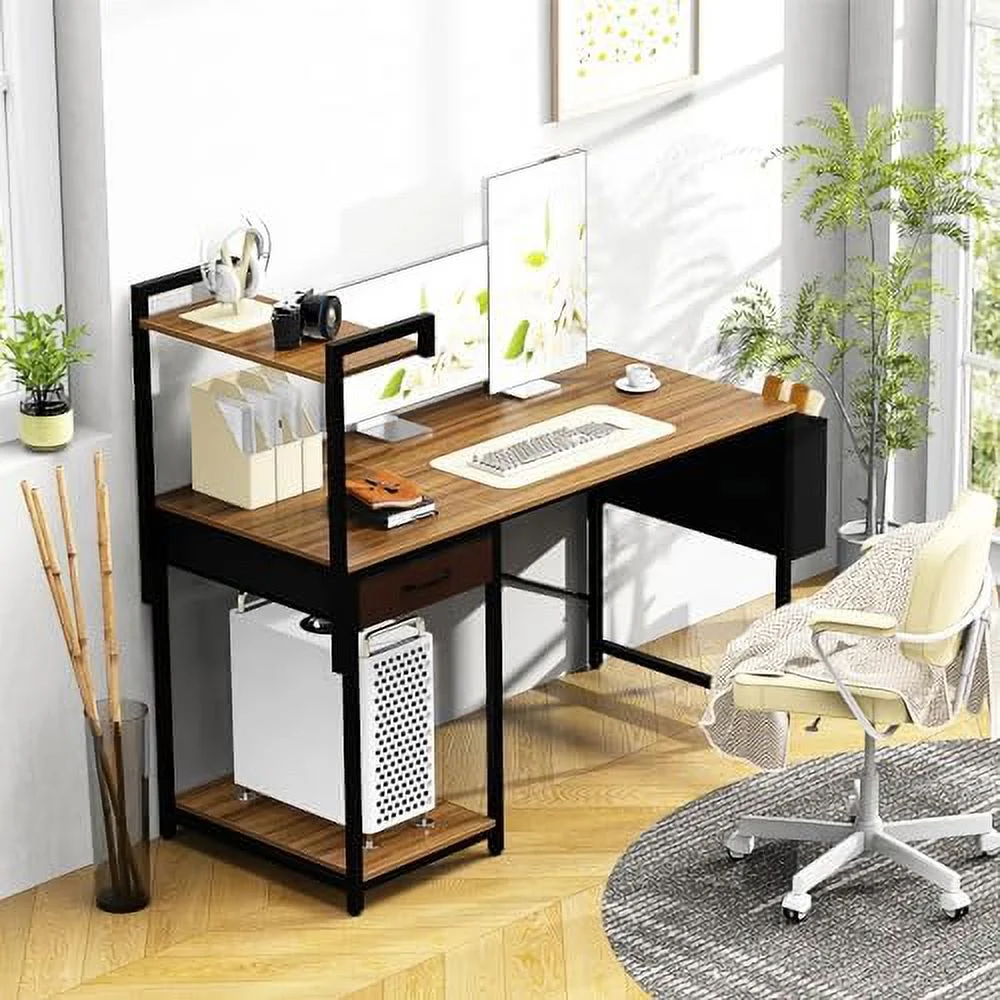 JYHOME Computer Desk with Drawer 47 Inch Home Office with Simple Modern Work PC Student Writing Gaming Study Desk with Side Bag & CPU Stand for Bedroom Home Room Black Walnut - Curated Treasures Market