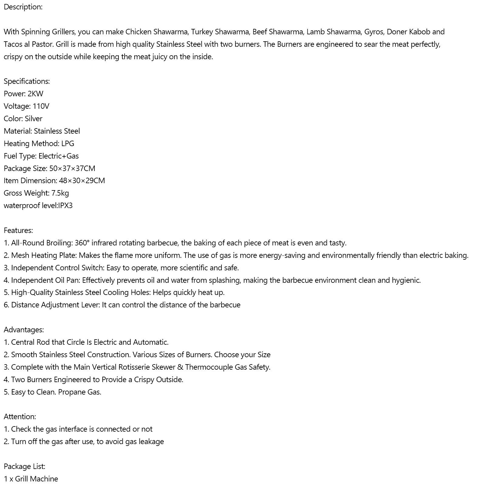 Motor Genic 110V Spinning Doner Kebab Grill Machine Gas Vertical Broiler Shawarma Machine