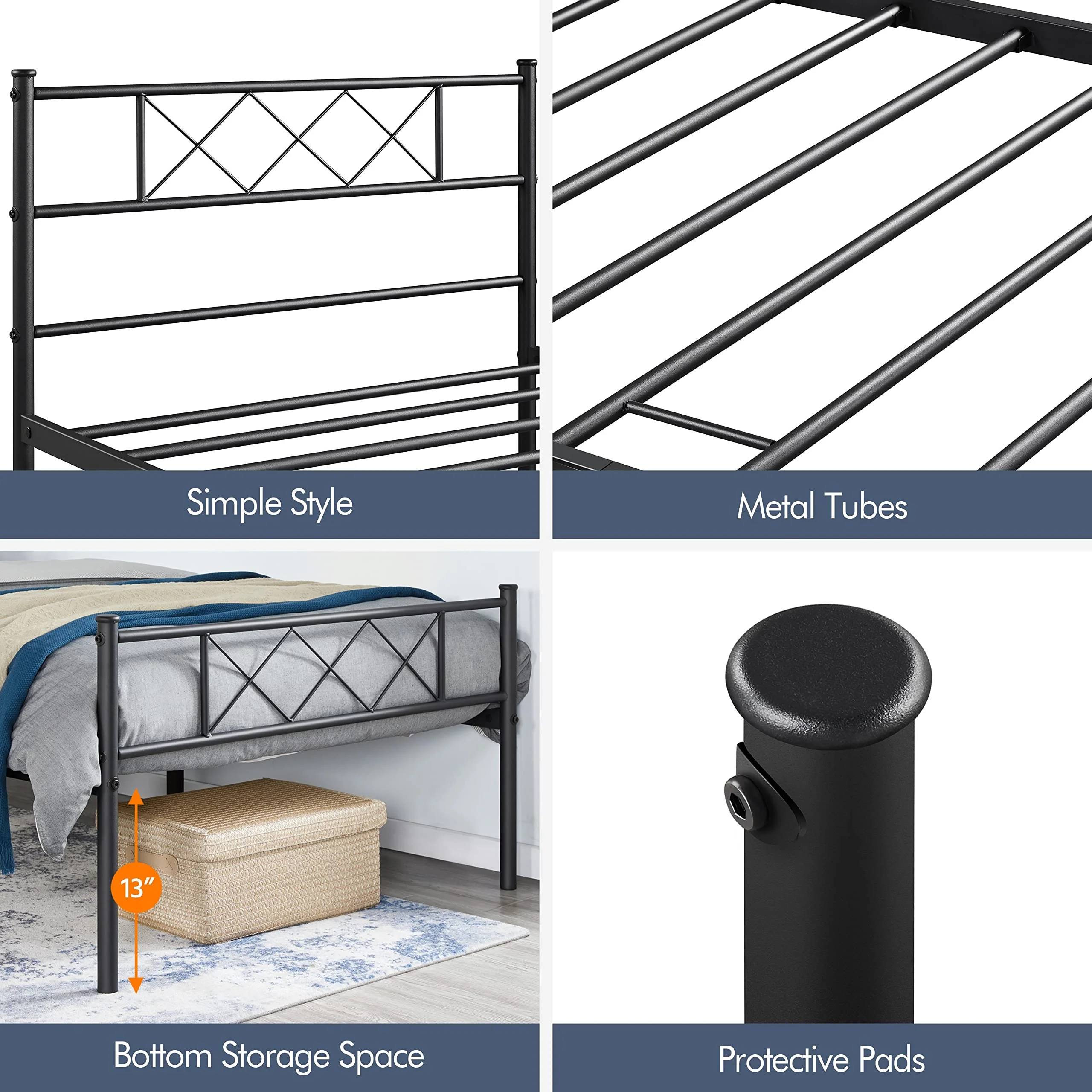 Twin Metal Platform Bed Frame Mattress Foundation with Headboard and Footboard No Box Spring Needed Under Bed Storage Steel Slats Black