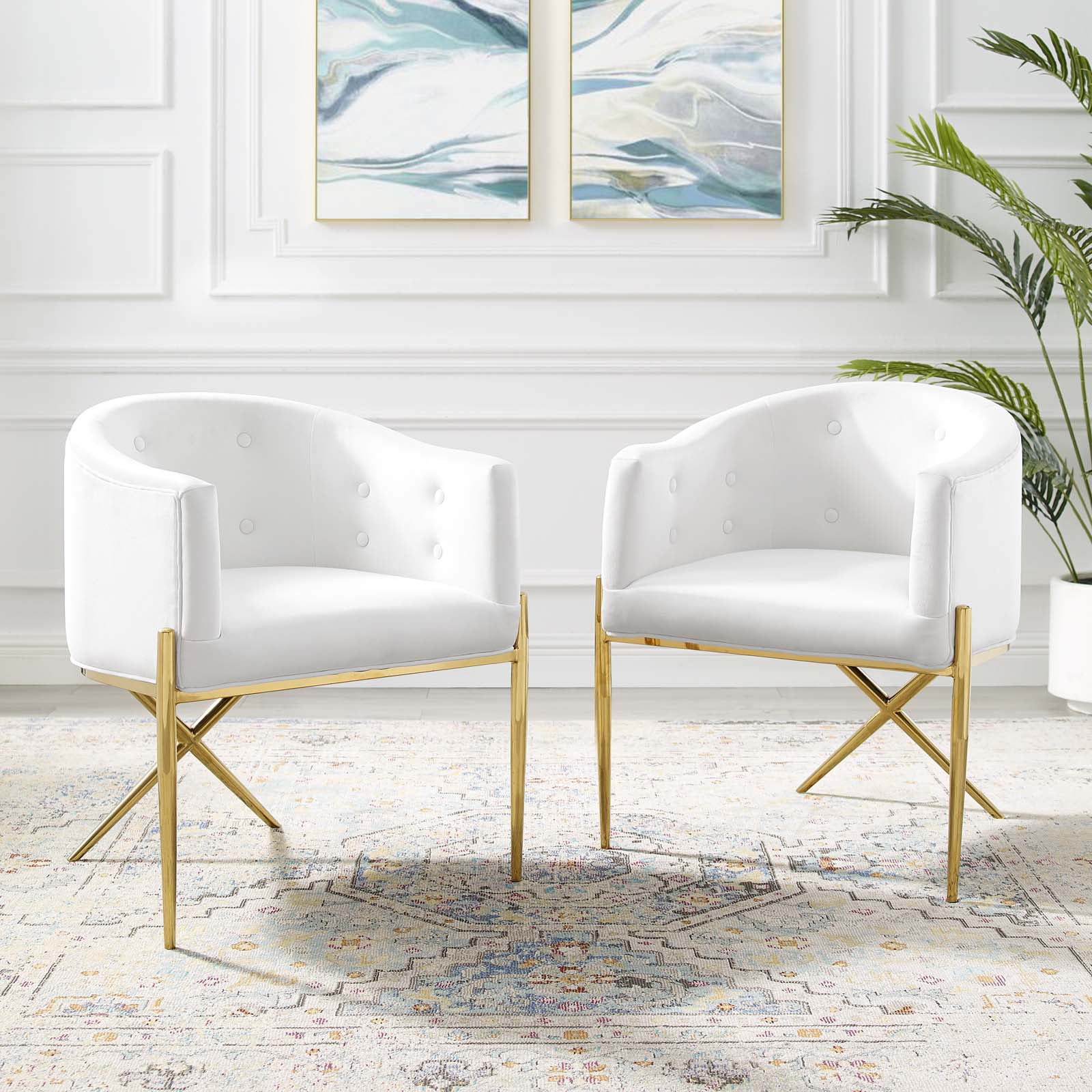 Side Dining Chair, Set of 2, Velvet, Metal Steel, White, Modern Contemporary Urban Design, Kitchen Room Cafe Bistro Restaurant Hospitality - Curated Treasures Market