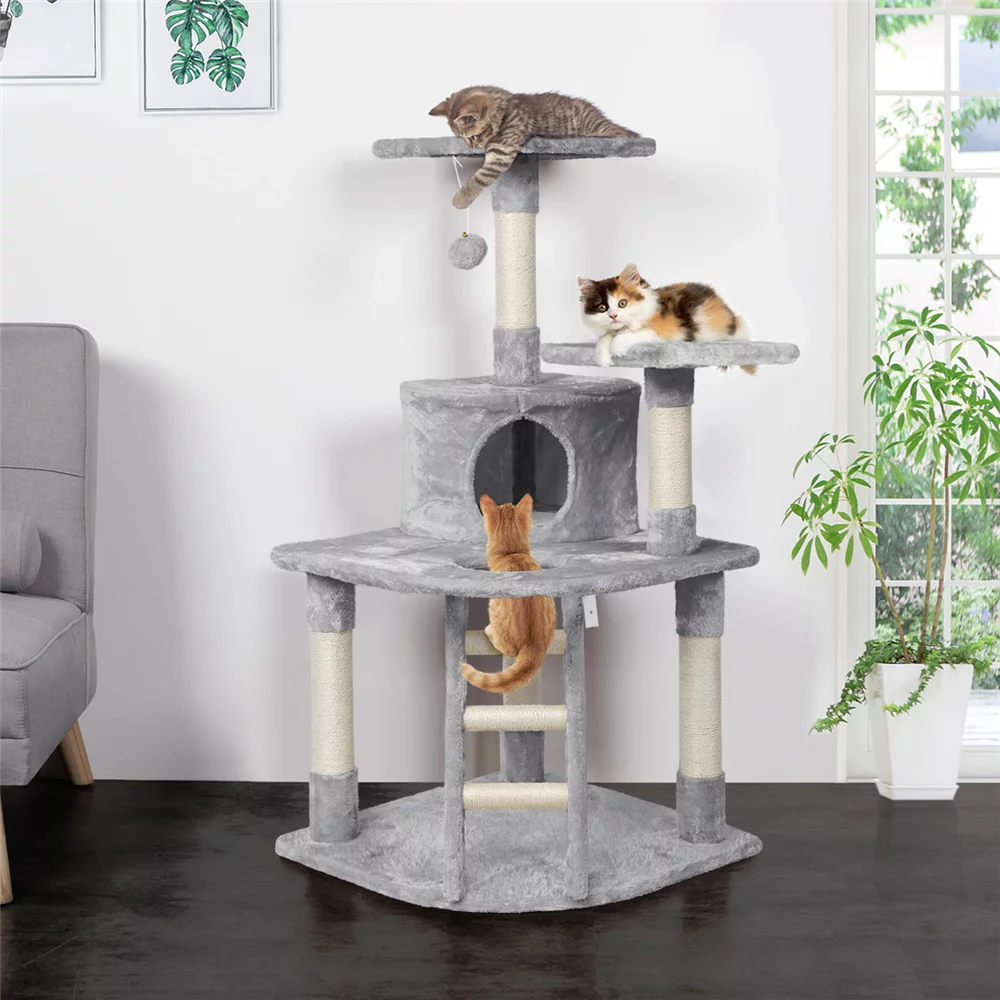 Yaheetech 47.5'' H Multi Level Cat Tree Condo with Scratching Post & Lounger & Ladder, Light Gray - Curated Treasures Market