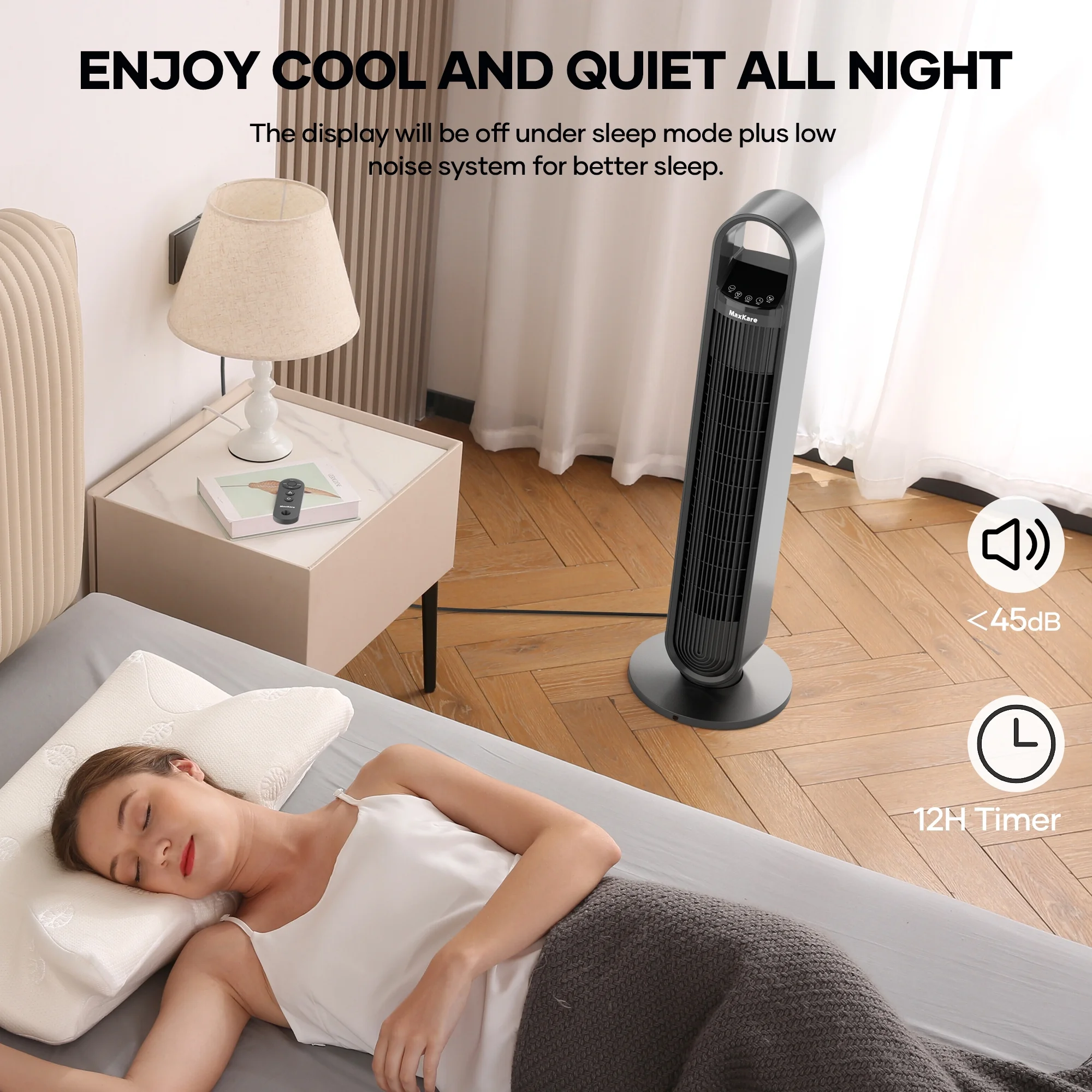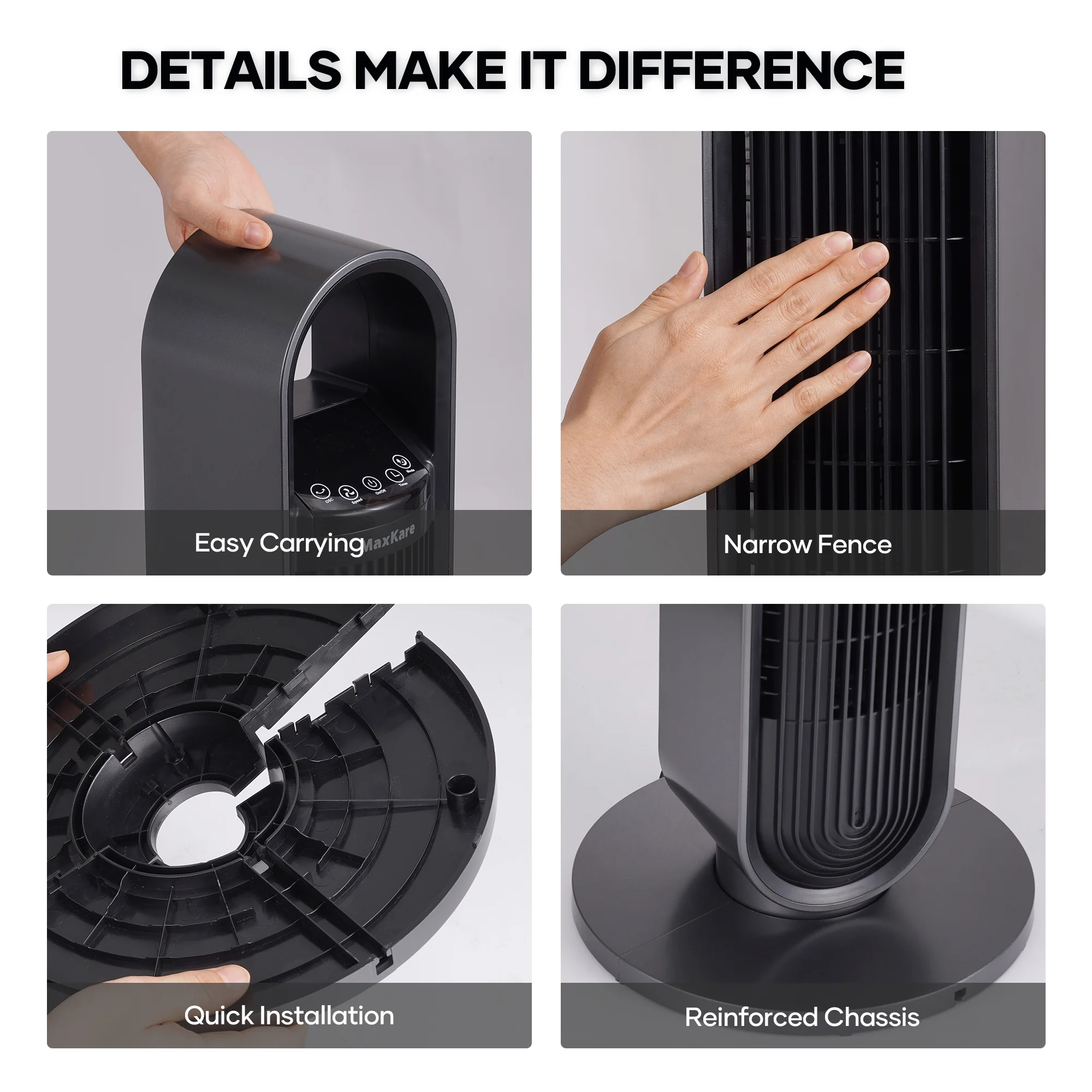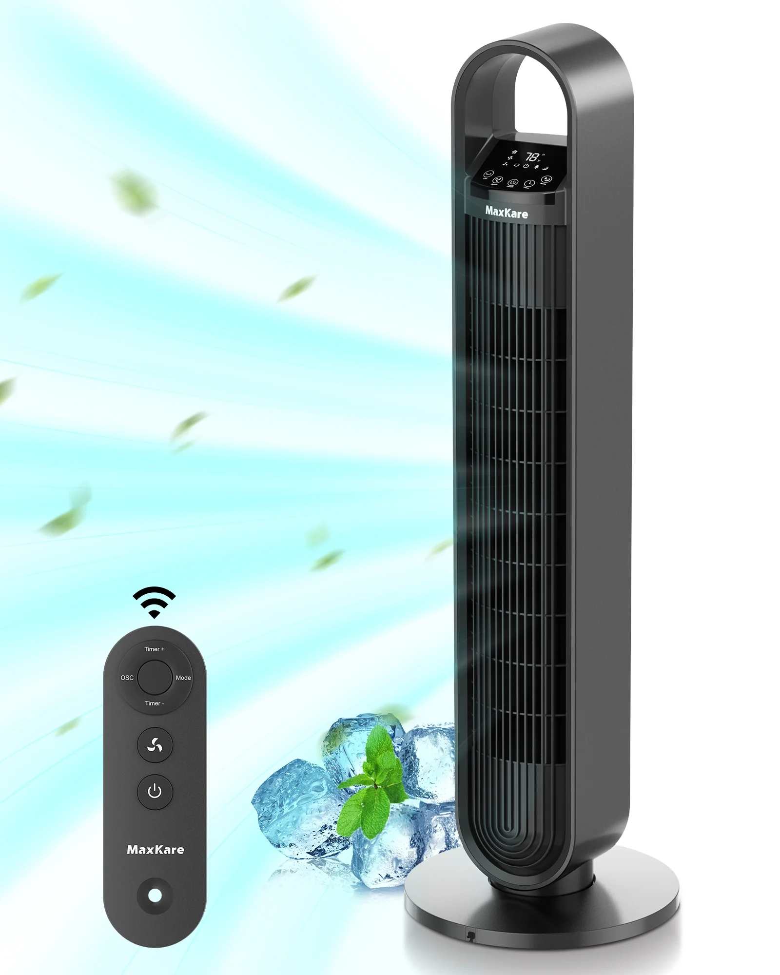MaxKare 36in Tower Fan Quiet Cooling Fan with 75�� Oscillation, Remote Control, 3 Speeds & 3 Modes & Timer - Metal Gray