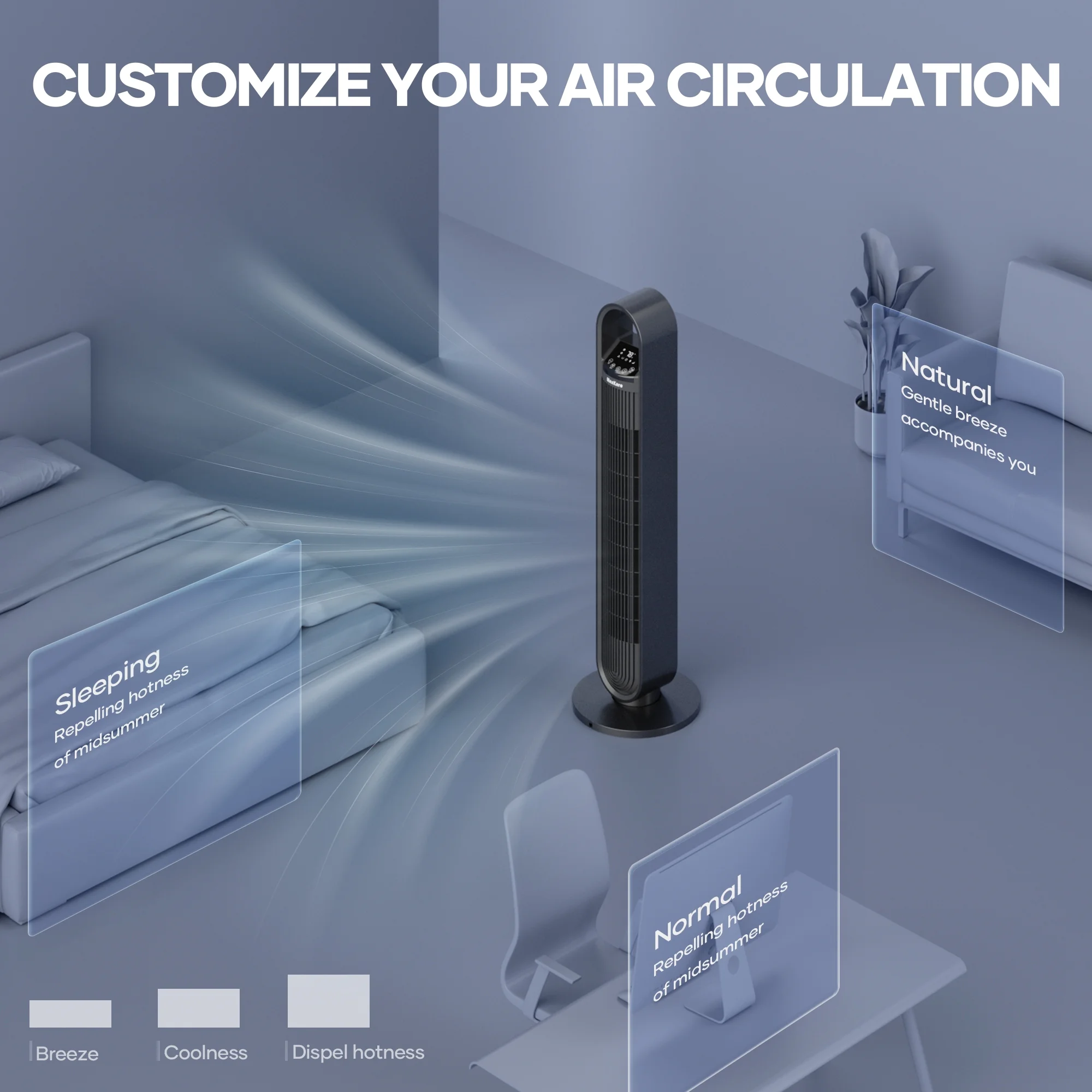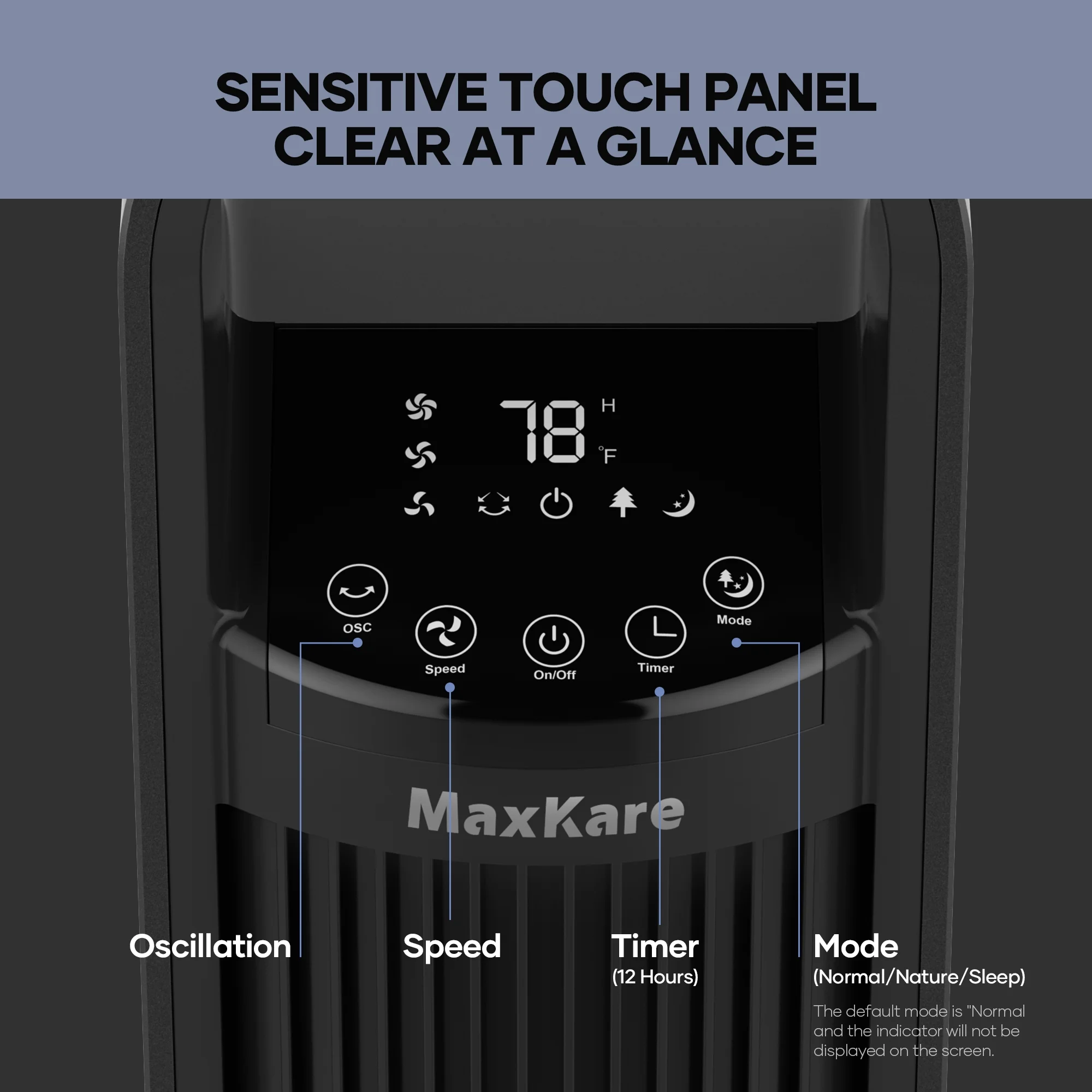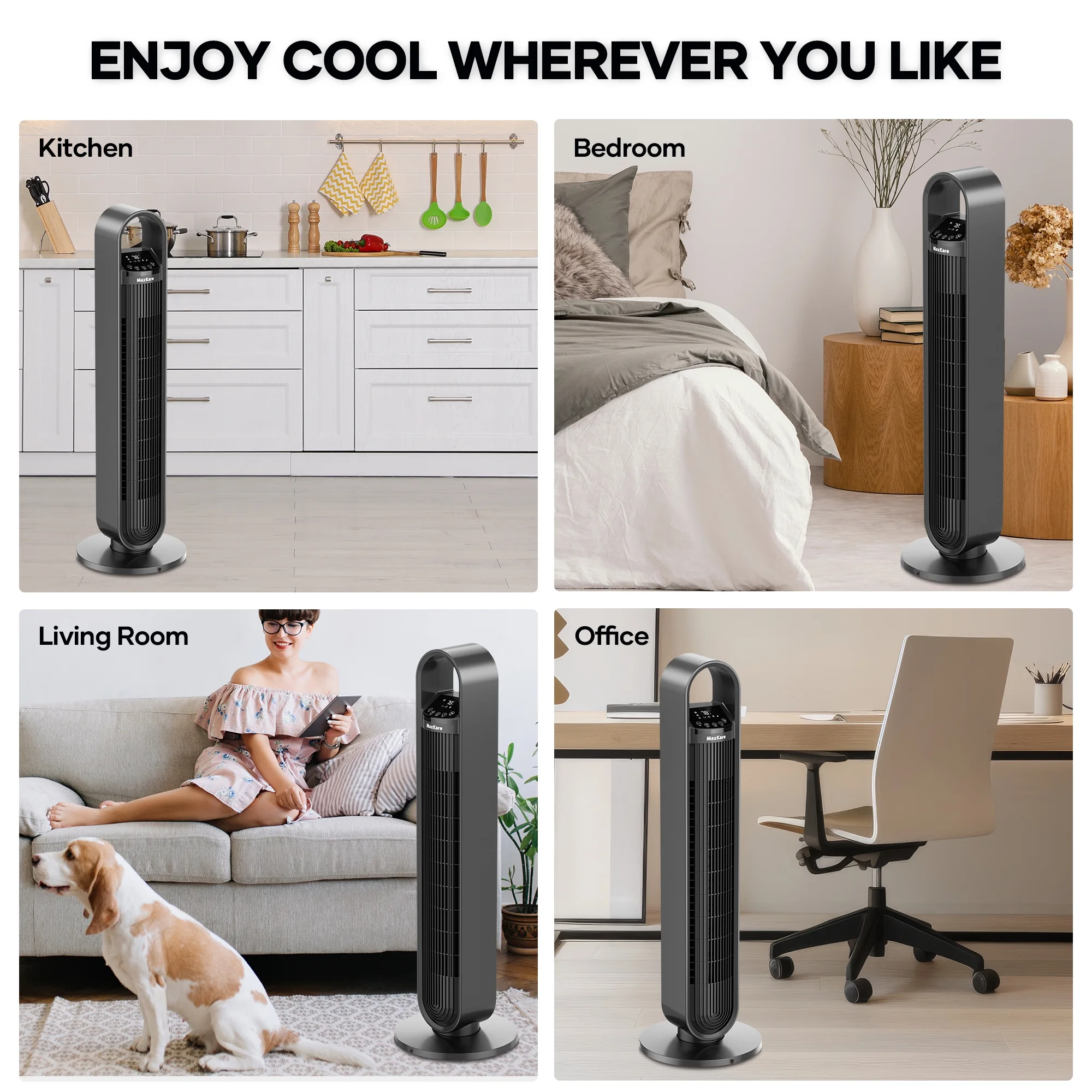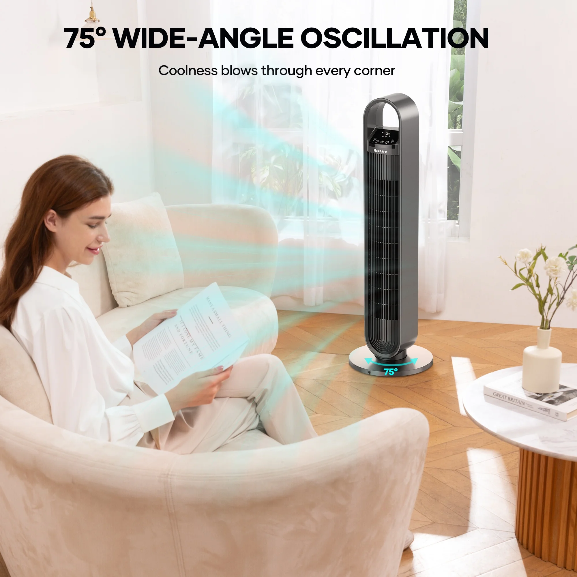 MaxKare 36in Tower Fan Quiet Cooling Fan with 75�� Oscillation, Remote Control, 3 Speeds & 3 Modes & Timer - Metal Gray