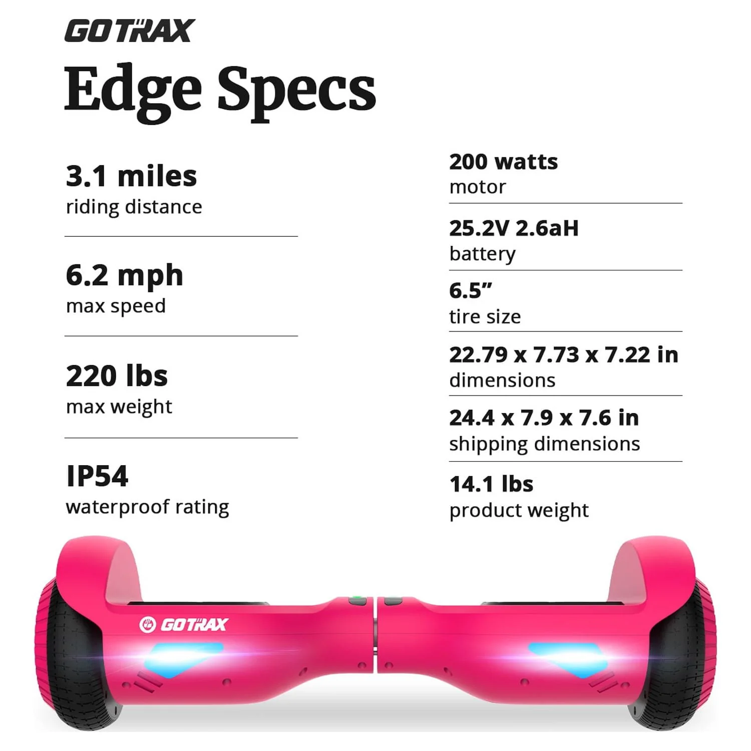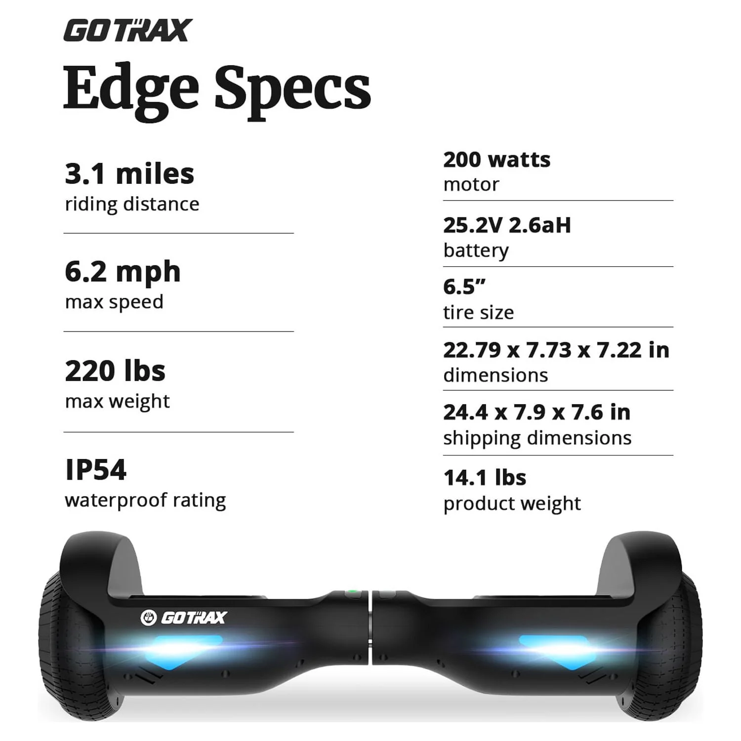 Gotrax Edge Hoverboard for Kids Adults, 6.5 Tires 6.2mph & 2.5 Miles Self Balancing Scooter, Black