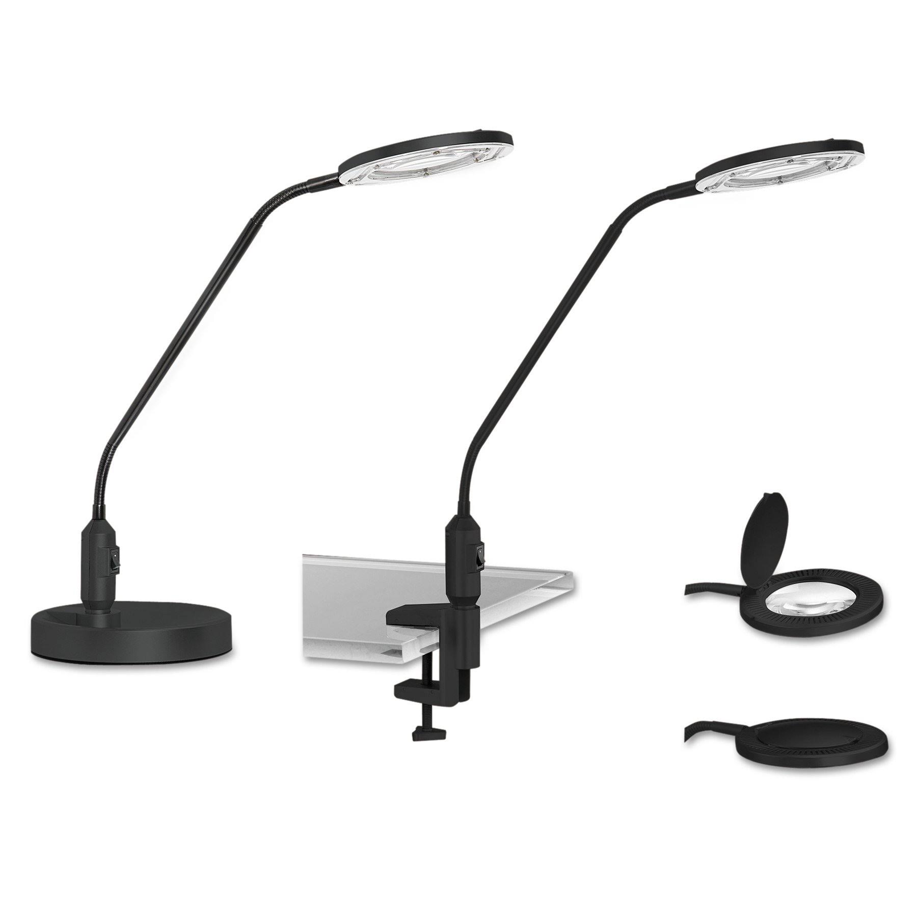 Alera Clamp-On, 3 Diopter LED Desktop Magnifier, 19" High, Black - Megean