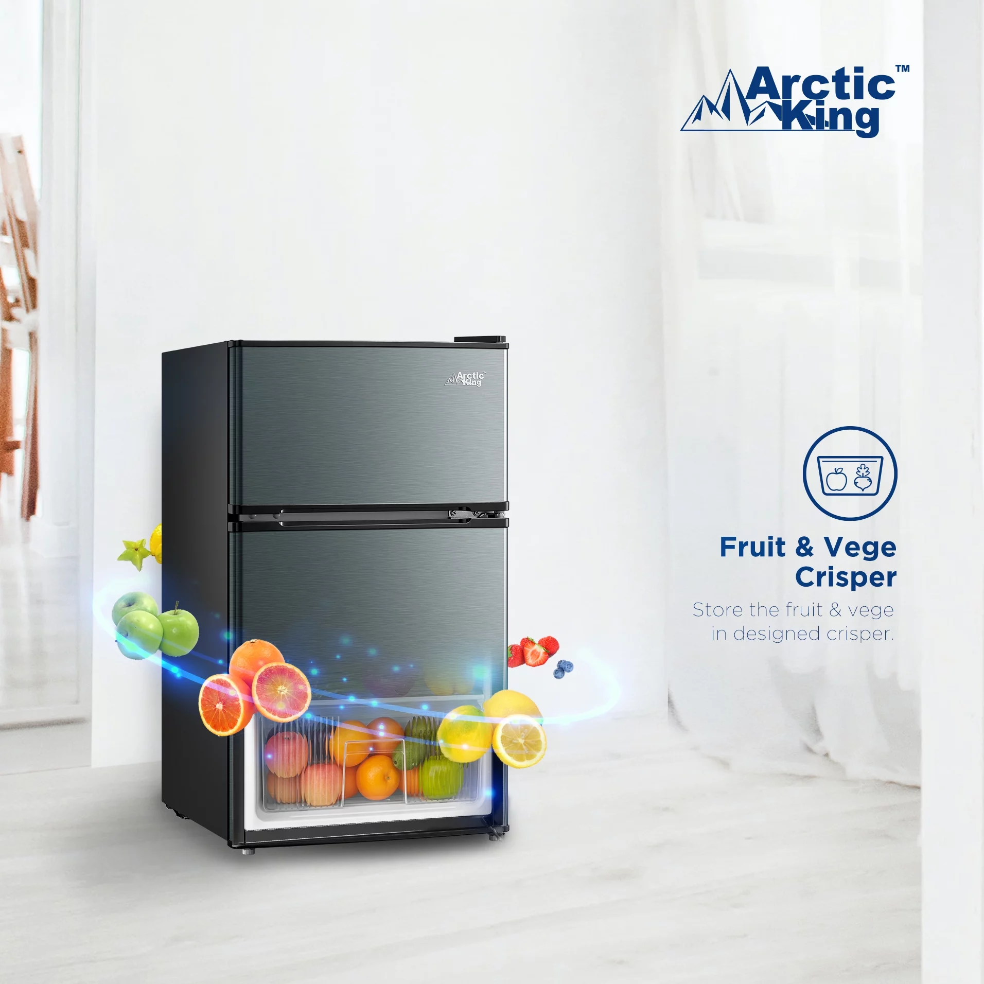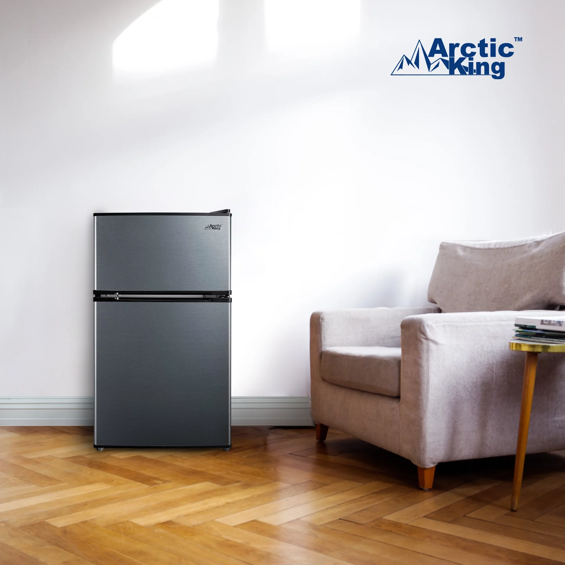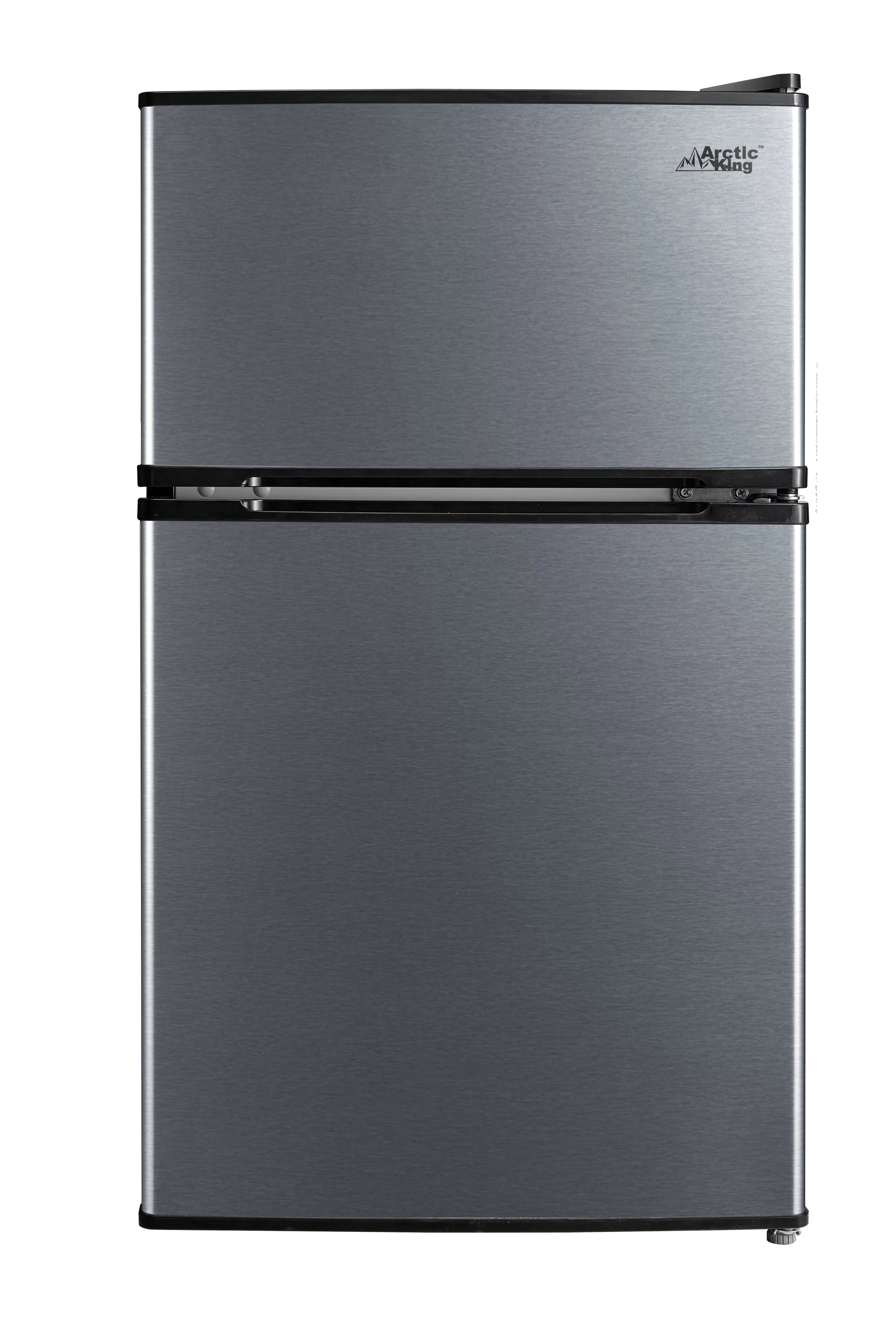 Arctic King 3.2 Cu ft Two Door Compact Refrigerator with Freezer, Stainless Steel, E-star