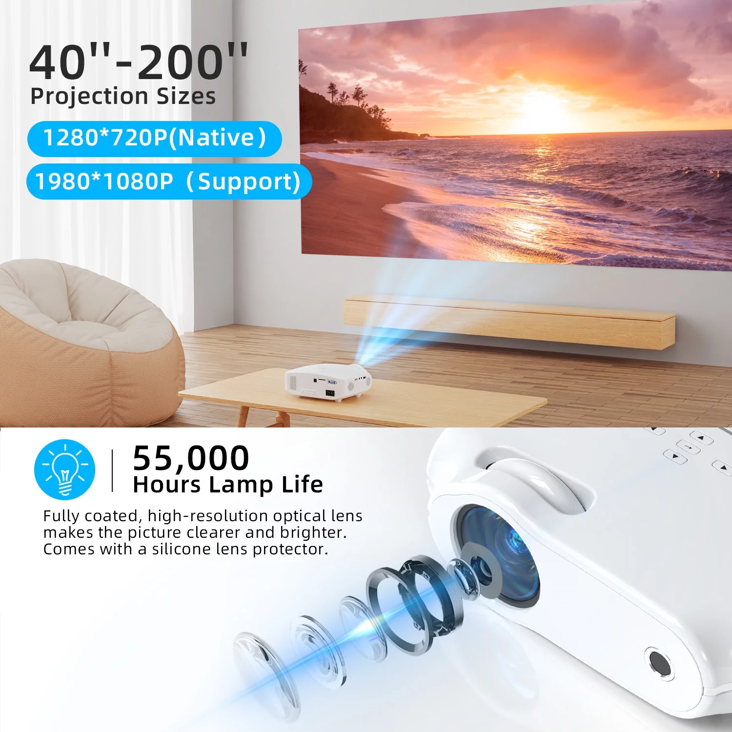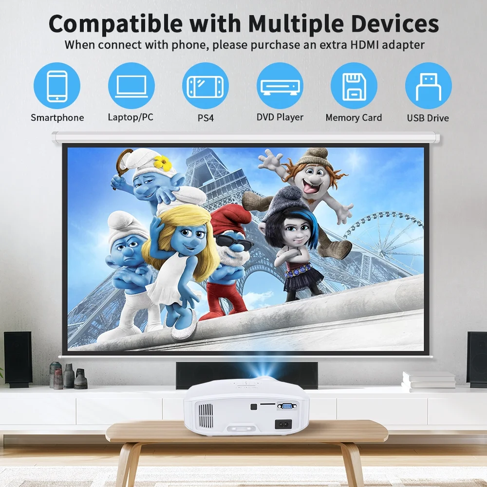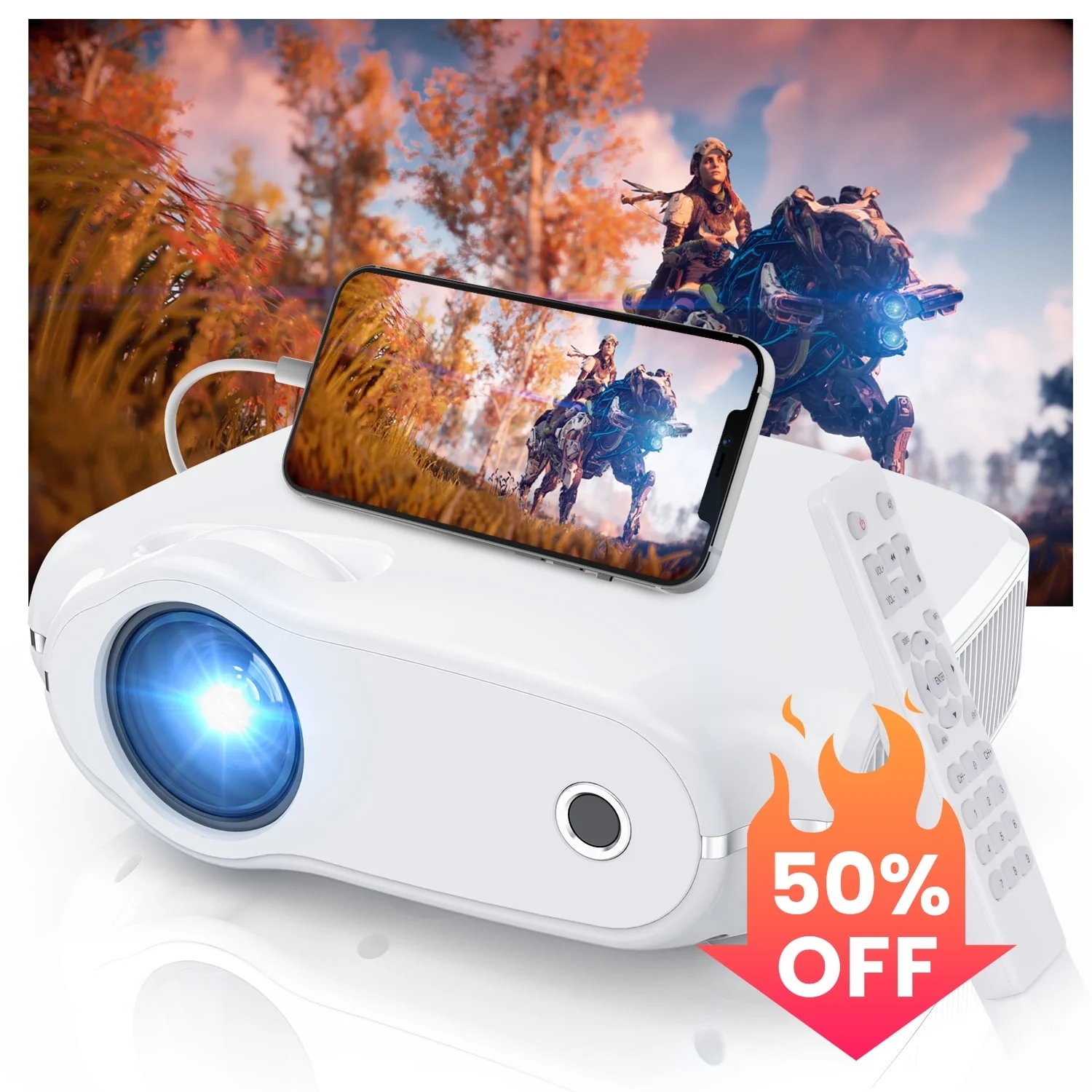 TOPVISION Mini Projector, 7500L Home Theater Video Projector, 1080P Full HD 250'' Display Supported, Compatible with HDMI, USB, VGA, TV Stick, PS4, White, 5 Pcs