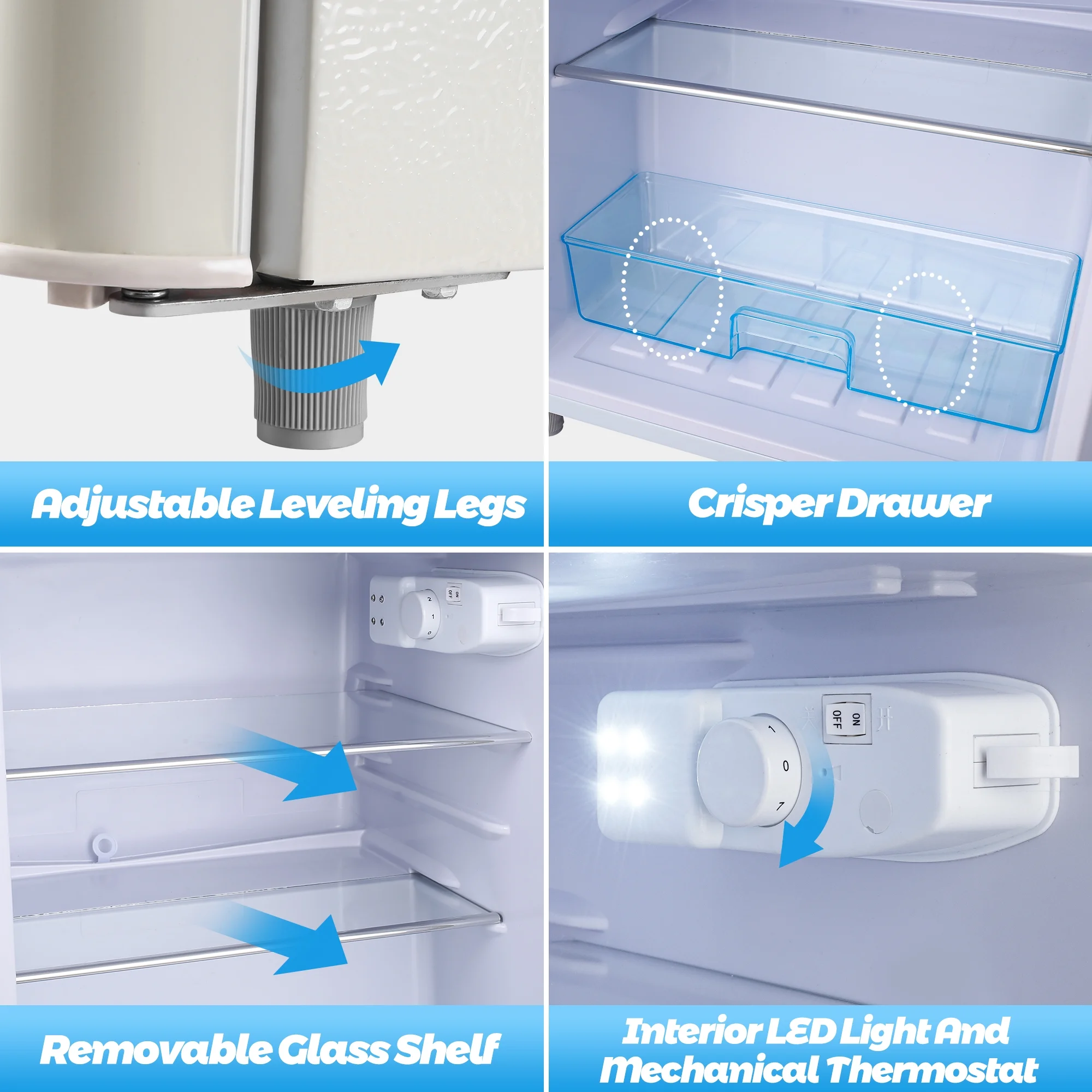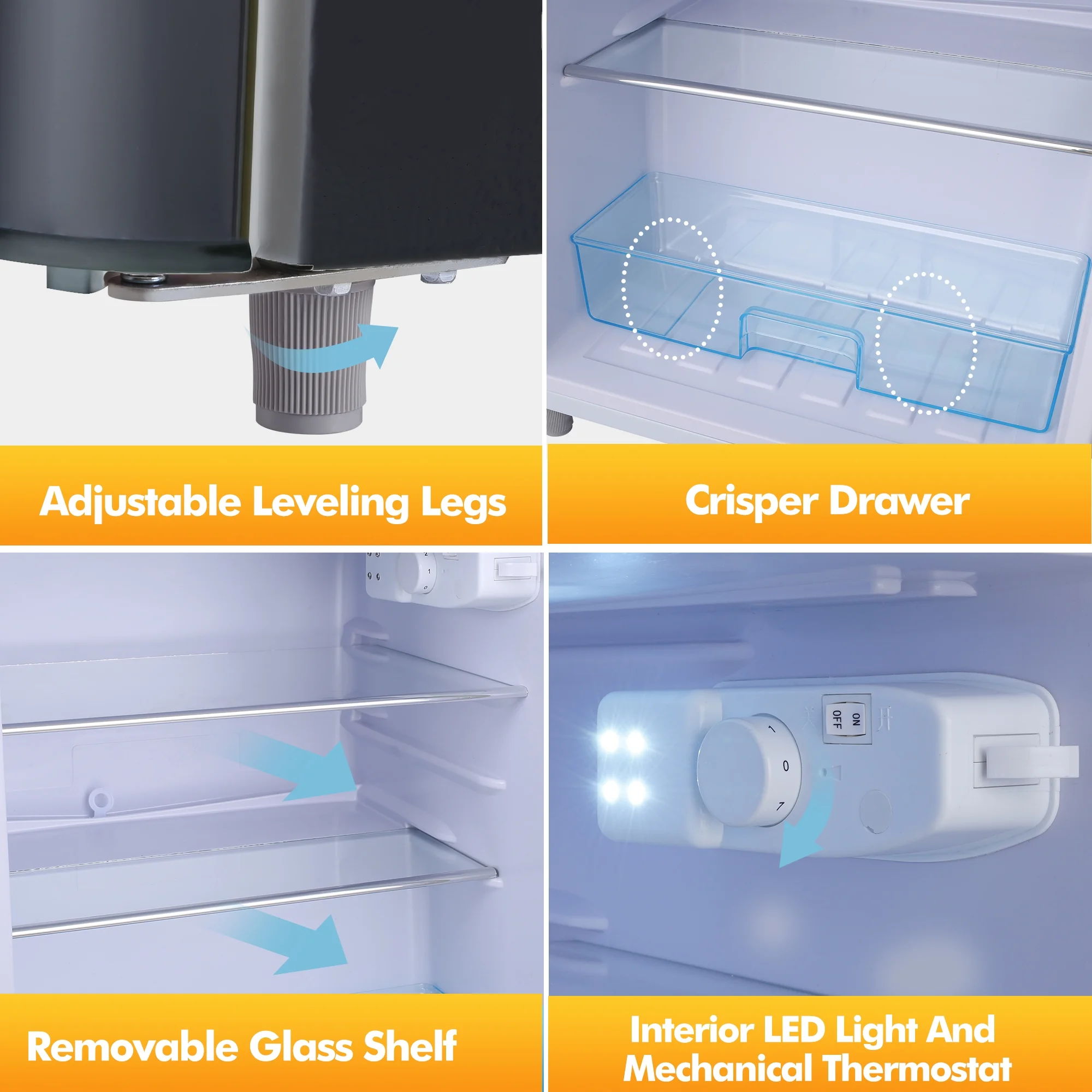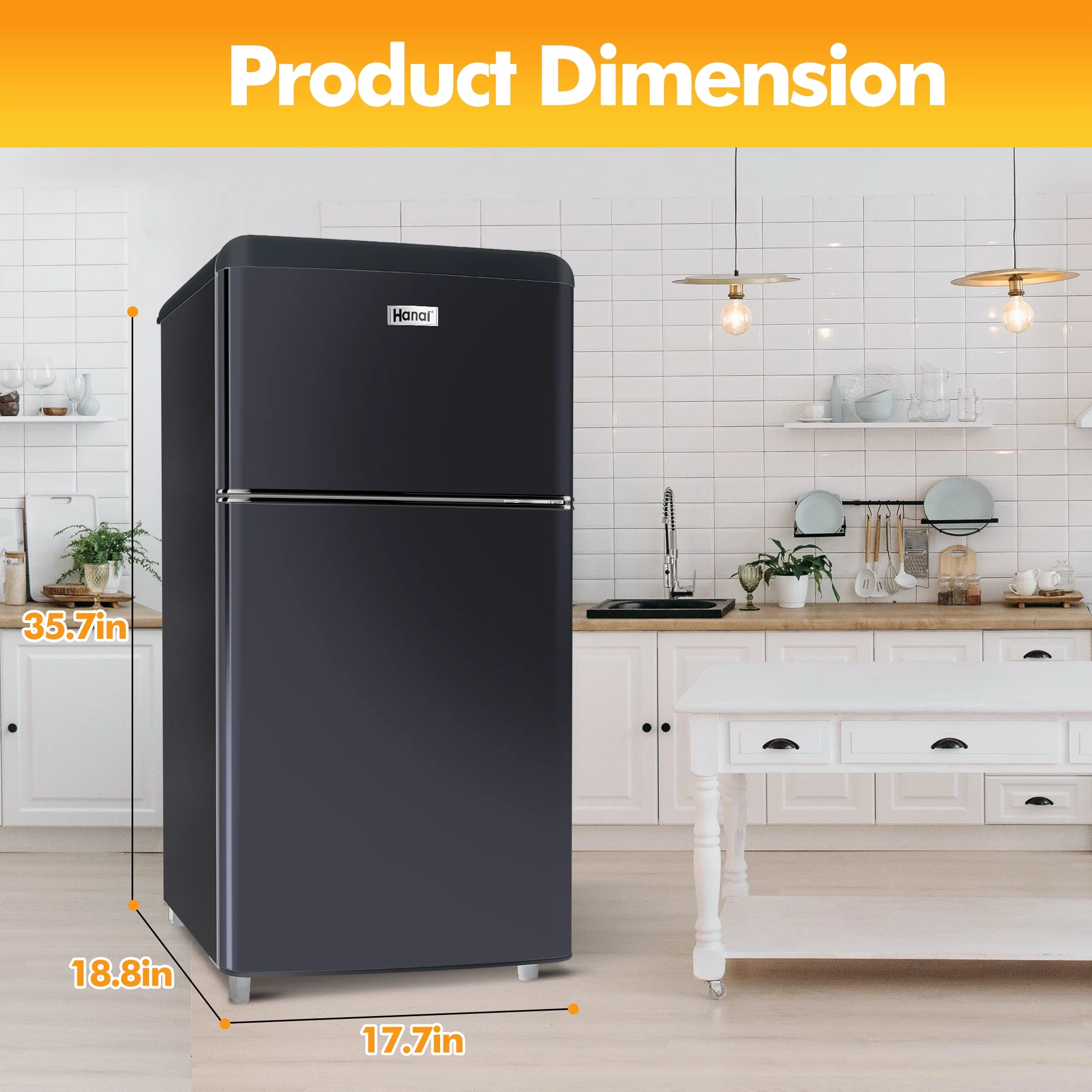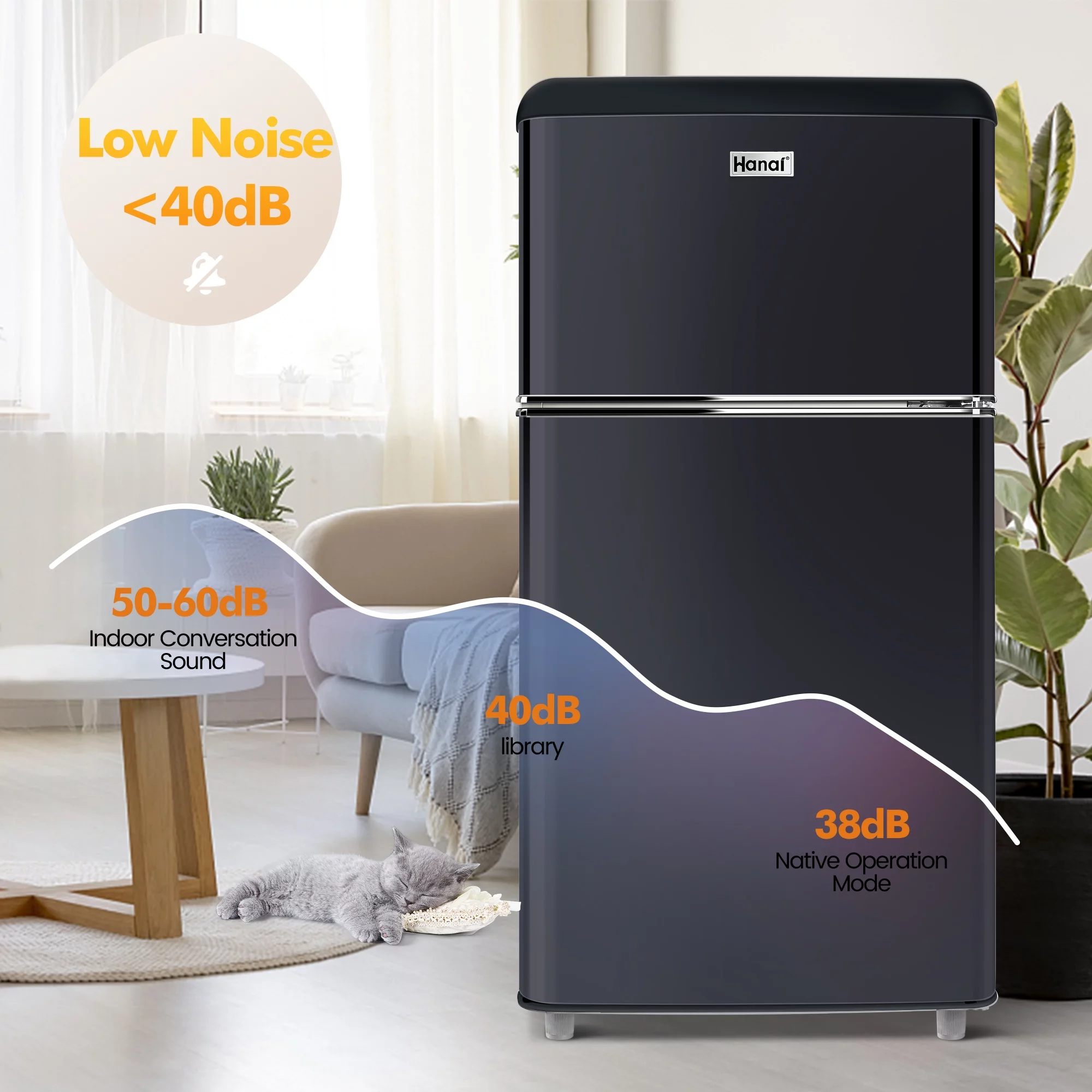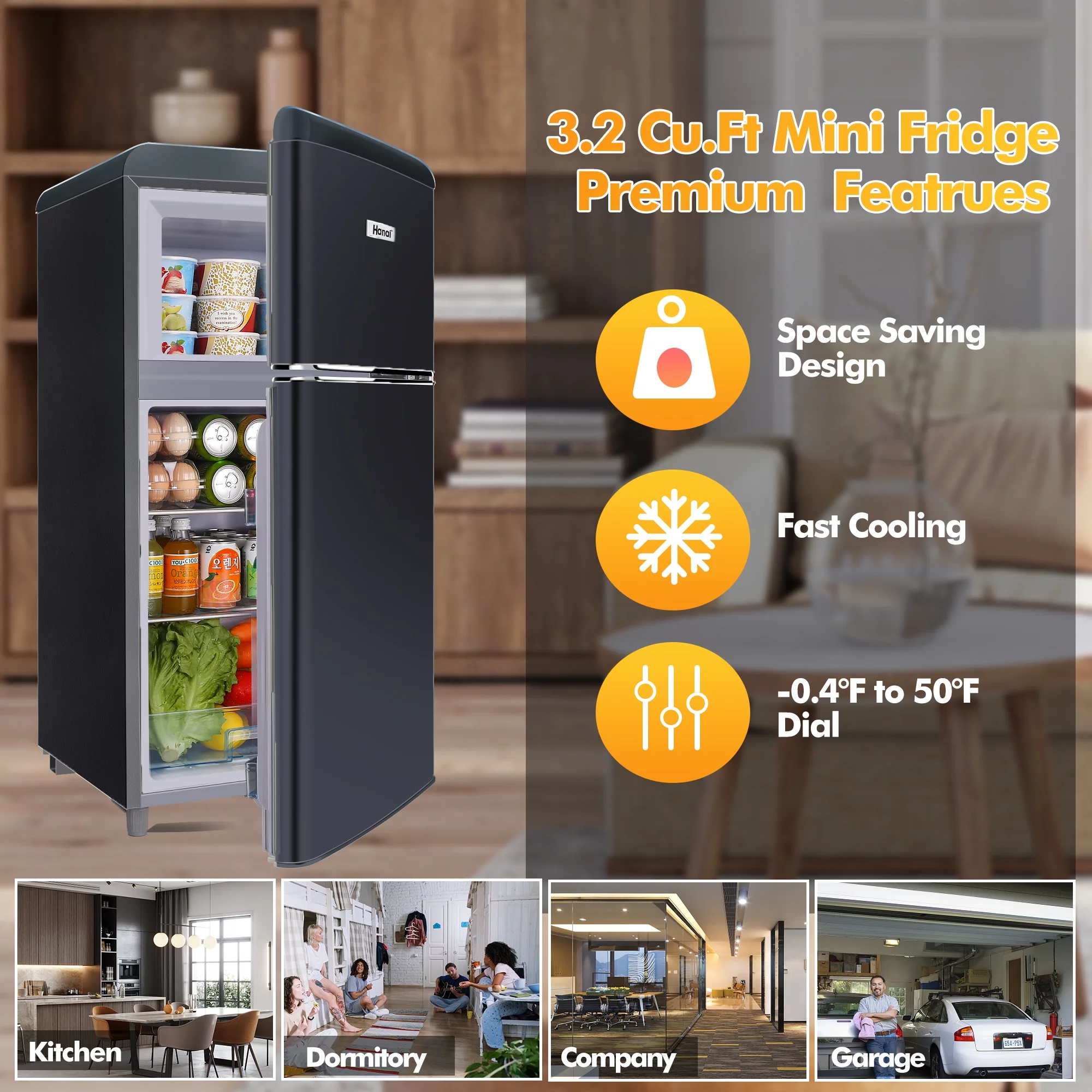 WANAI 3.5 Cu Feet Two Door Mini Fridge with Freezer,Black