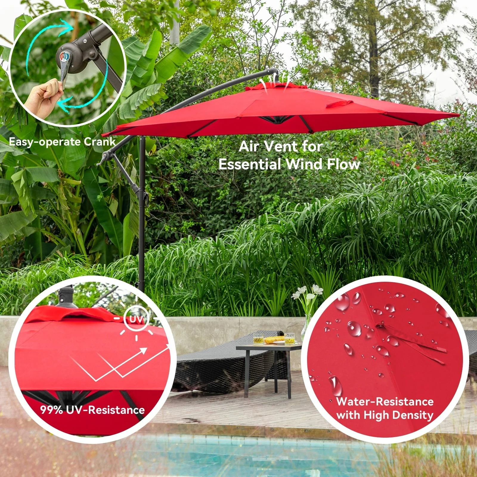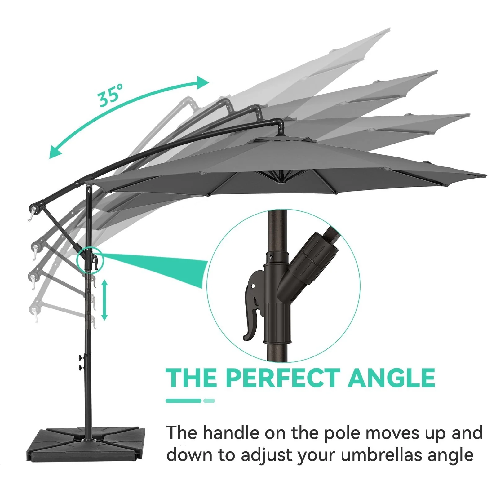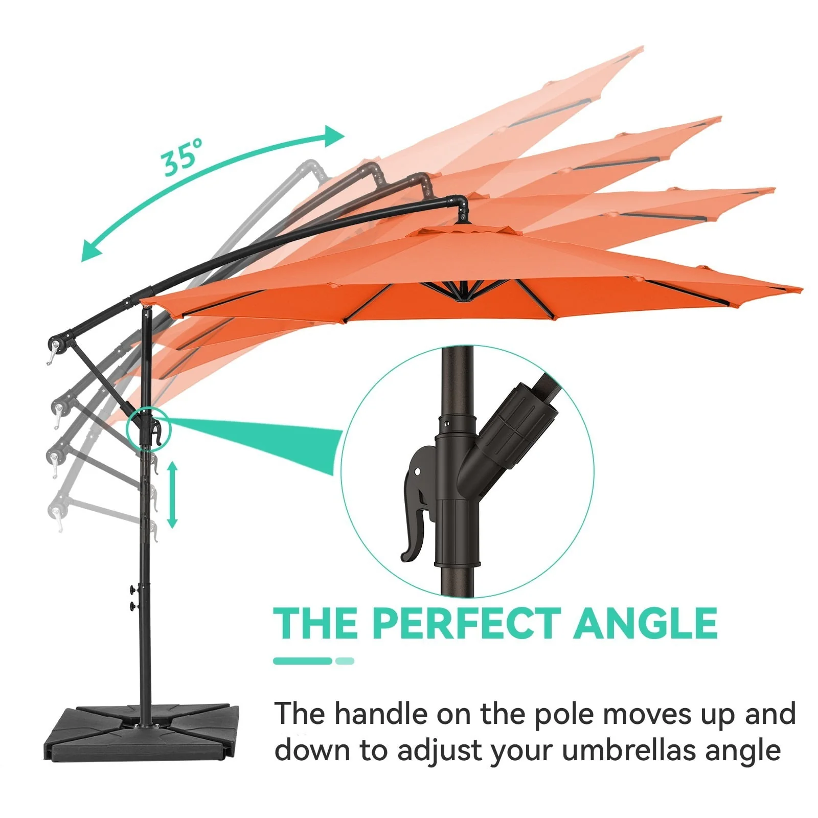 JUSTLET 10ft Heavy Duty Patio Hanging Offset Cantilever Patio Umbrella W/ 4-Piece Base Included Included, Beige