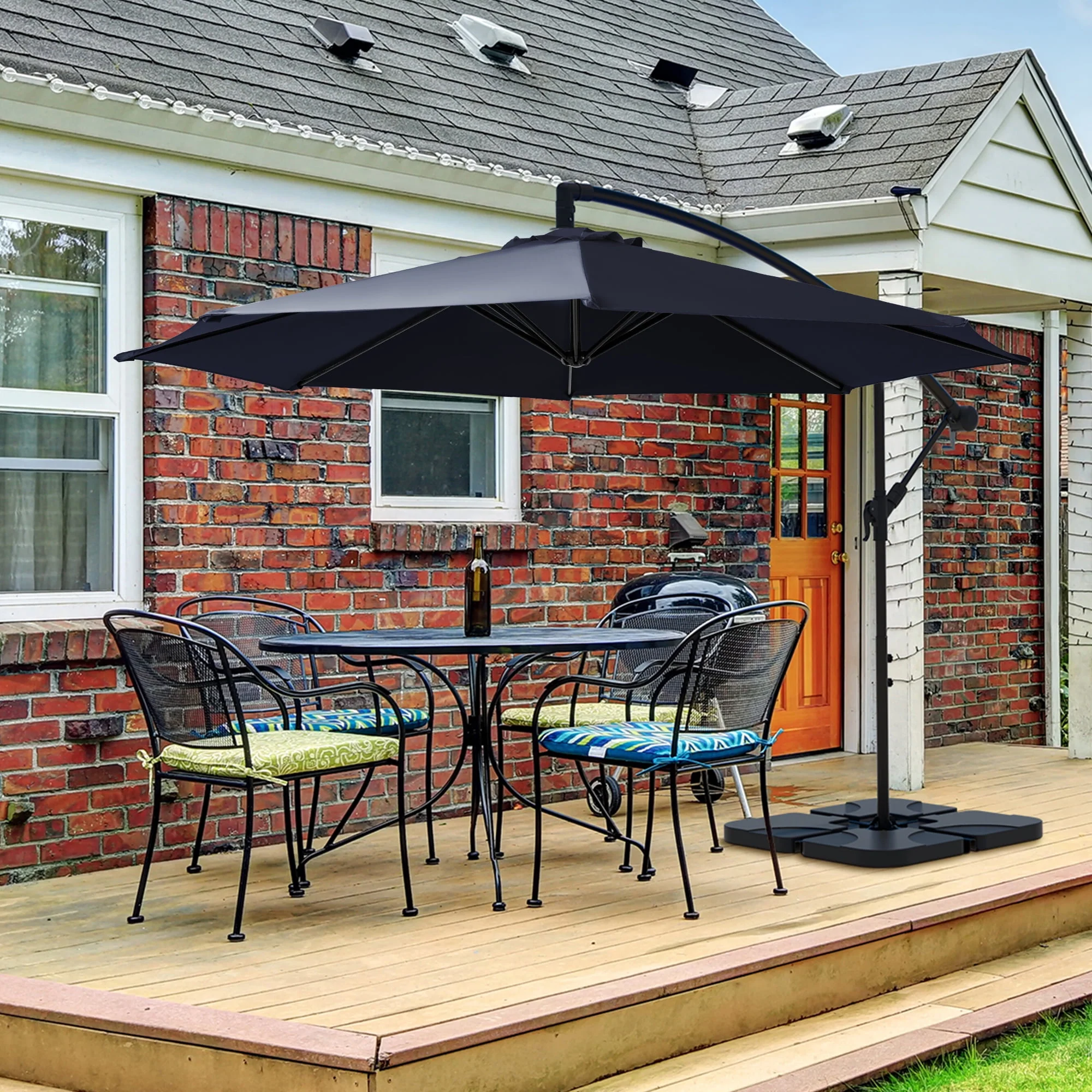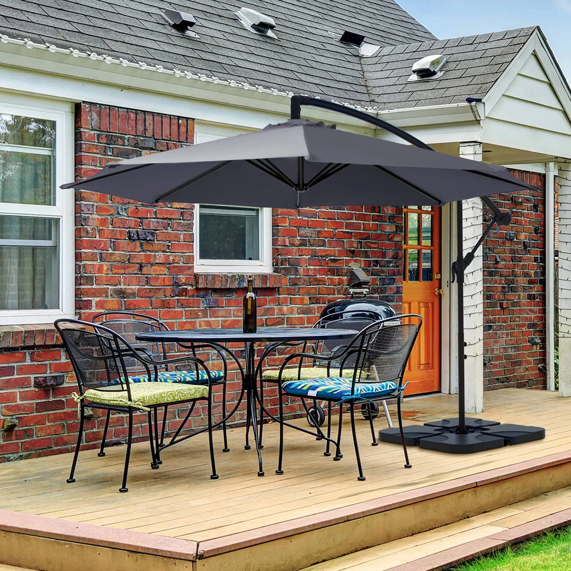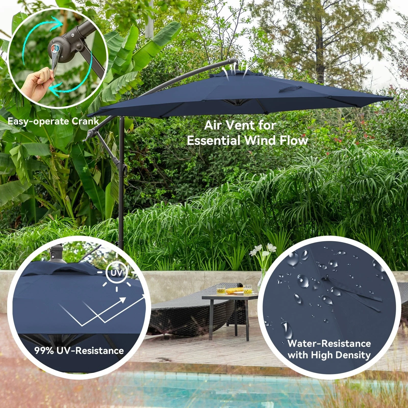 JUSTLET 10ft Heavy Duty Patio Hanging Offset Cantilever Patio Umbrella W/ 4-Piece Base Included Included, Beige