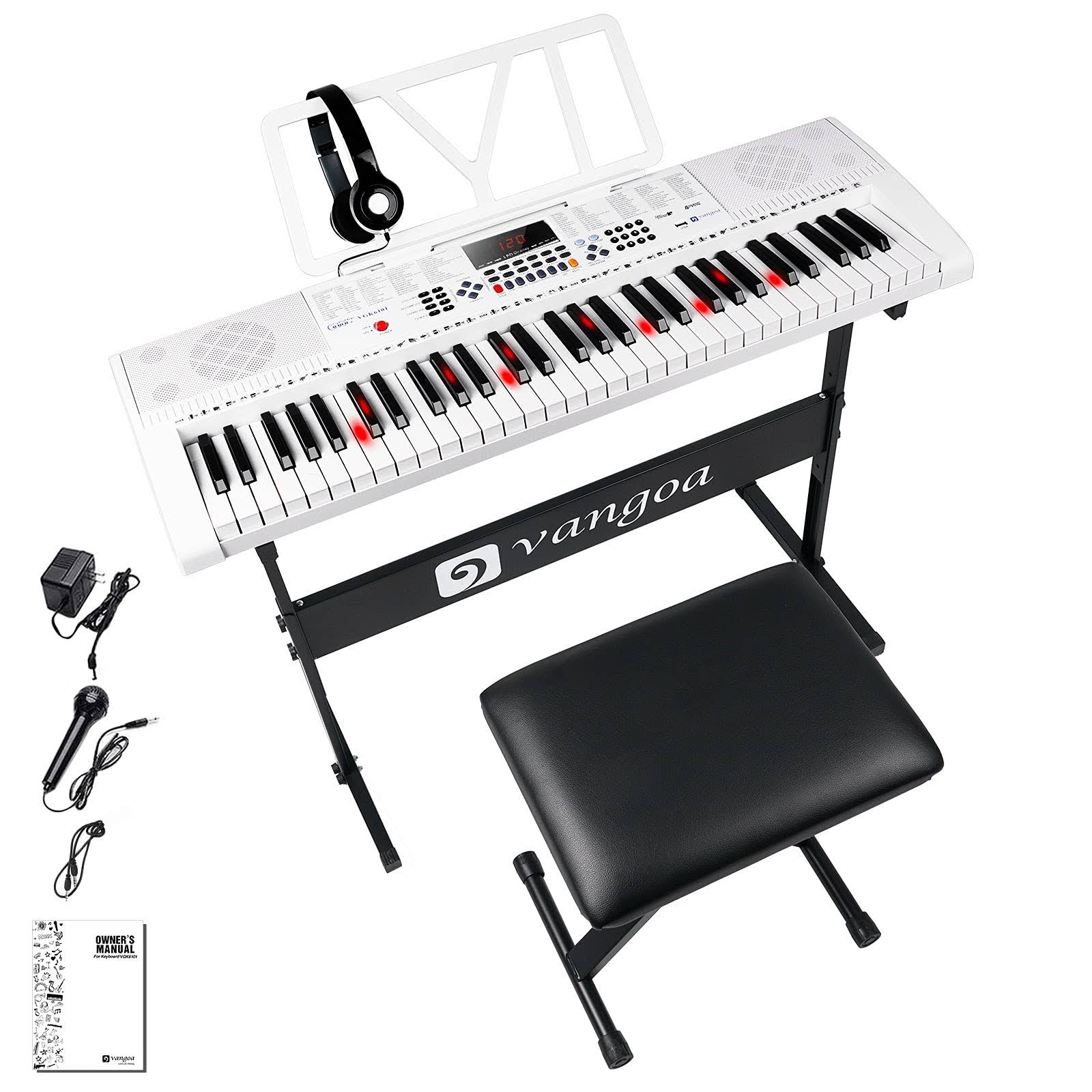 Vangoa Vgk6101 Electronic Keyboard Piano, 61 Lighted Full-Size Keys Electric Piano Keyboard with Stand, X-Type Bench, 3 Teaching Modes, 600 Tones, 400 - Megean