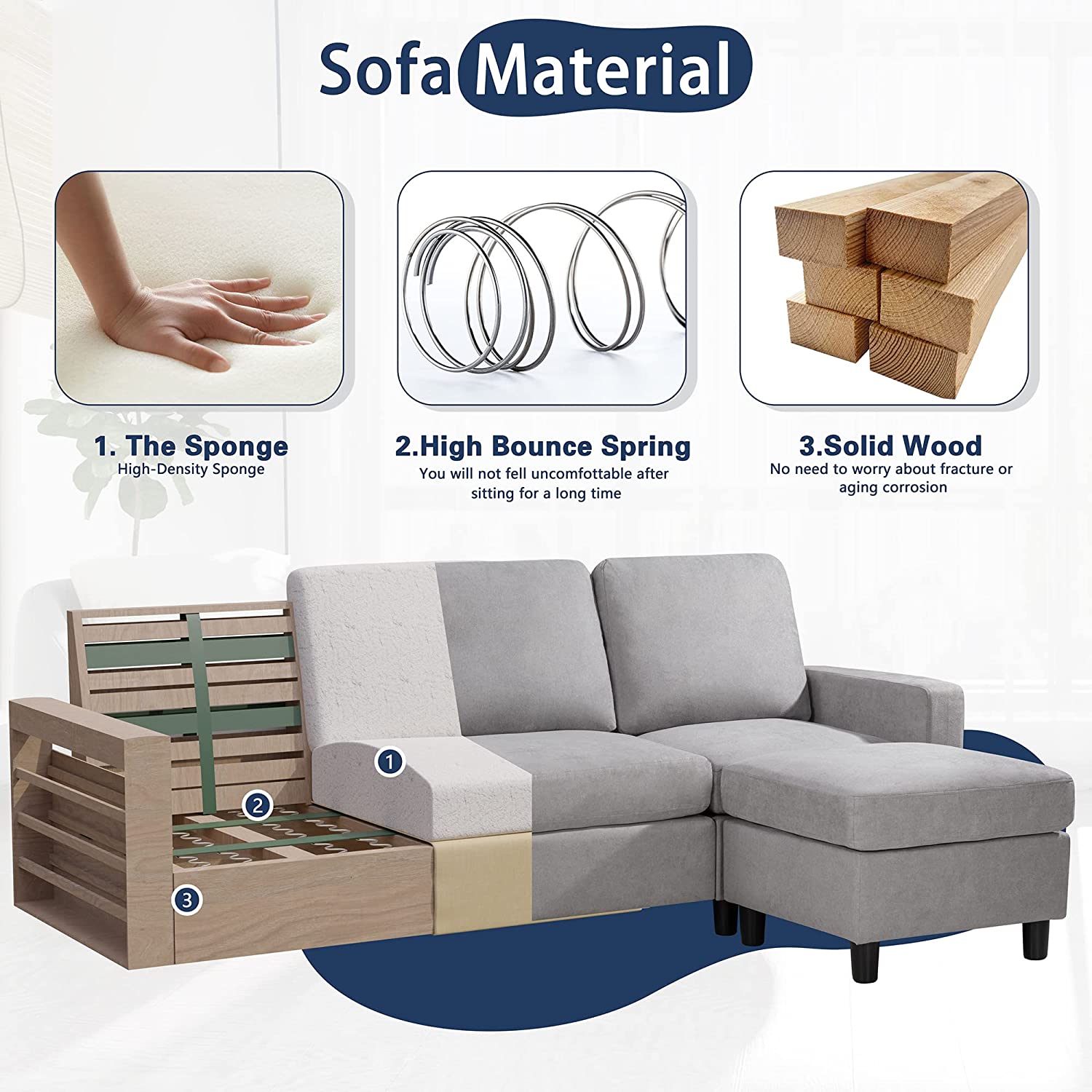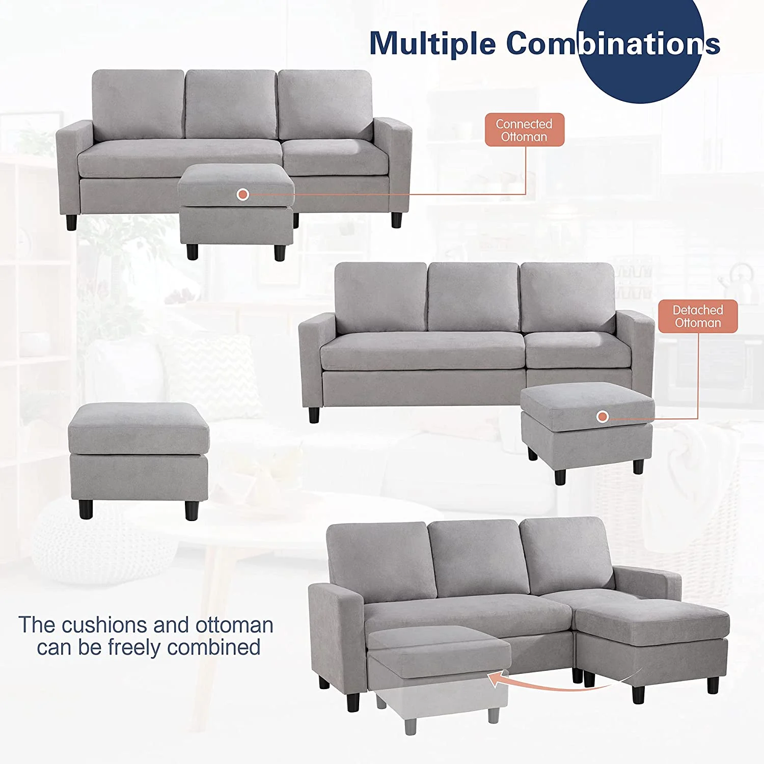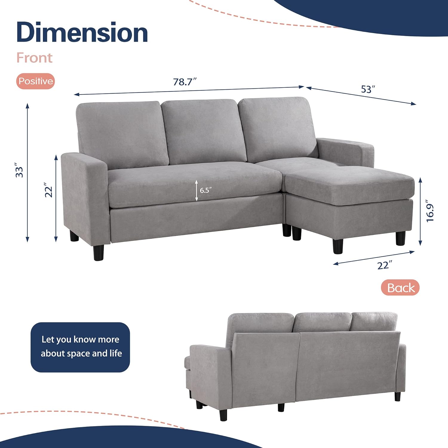 Yunc 79" Convertible Sectional Sofa Couch, L-Shaped Couch with Linen Fabric, Small Sectional Sofa with Chaise for Living Room - Curated Treasures Market