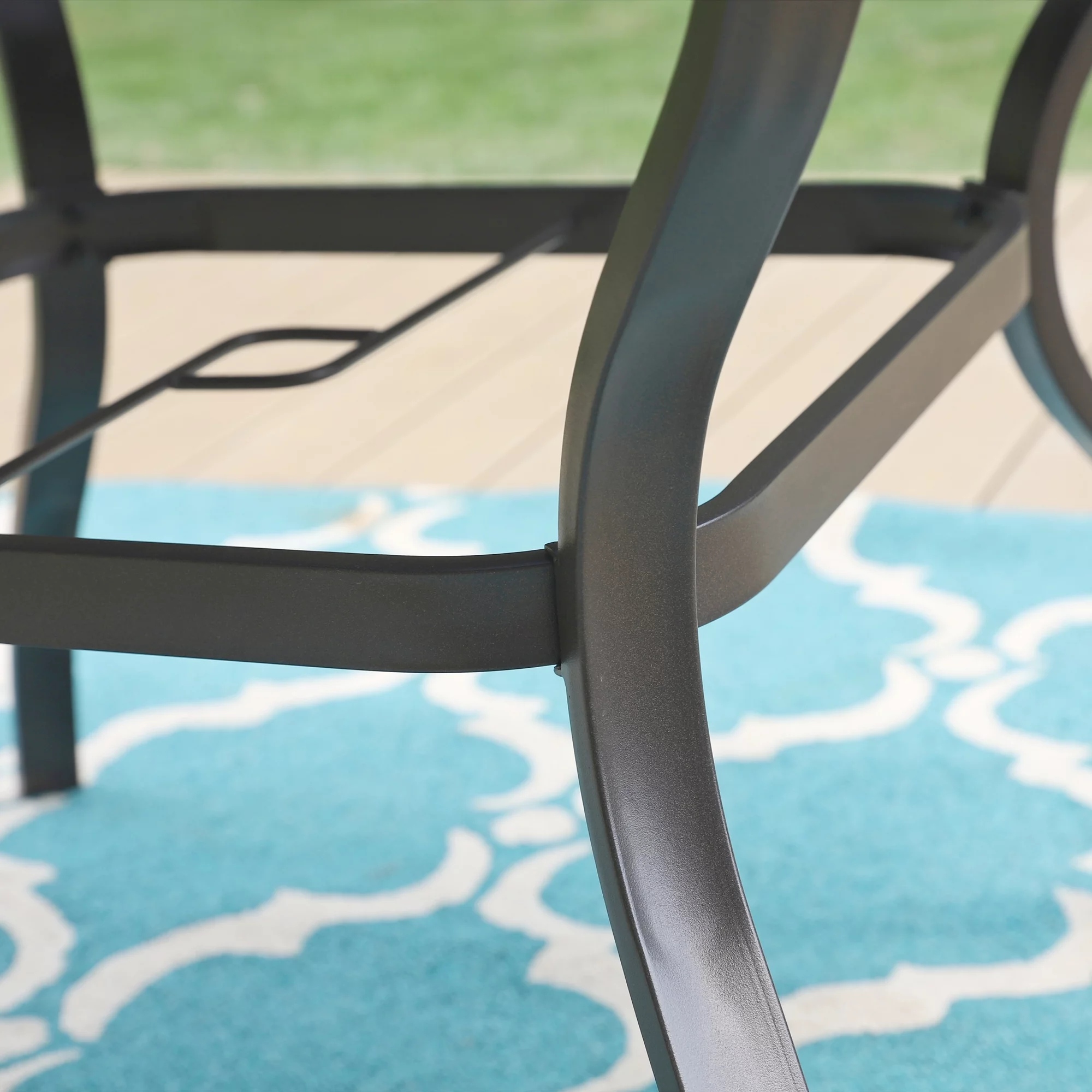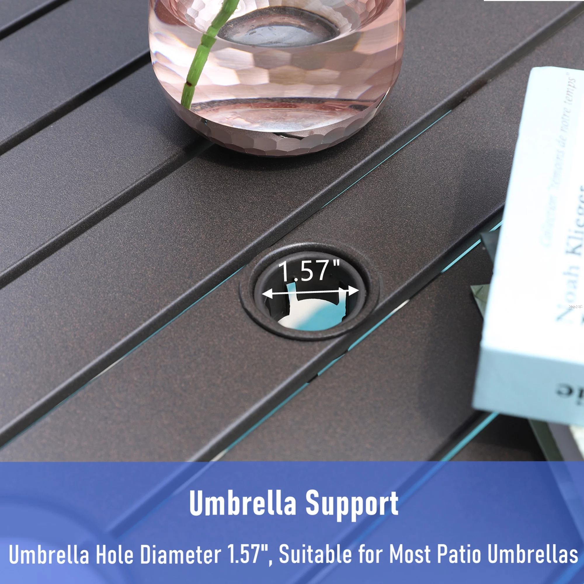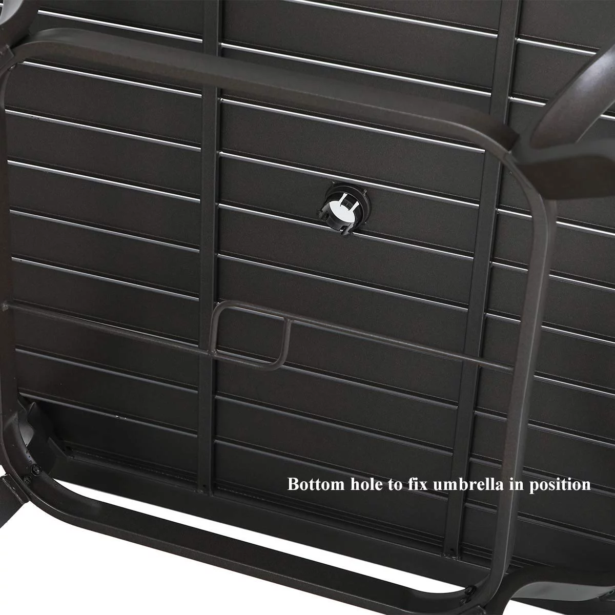 MF Studio Metal Steel Slat Patio Metal 37 inch Dining Table Steel Slat Bistro Large Square with 1.57 Umbrella Hole - Brown