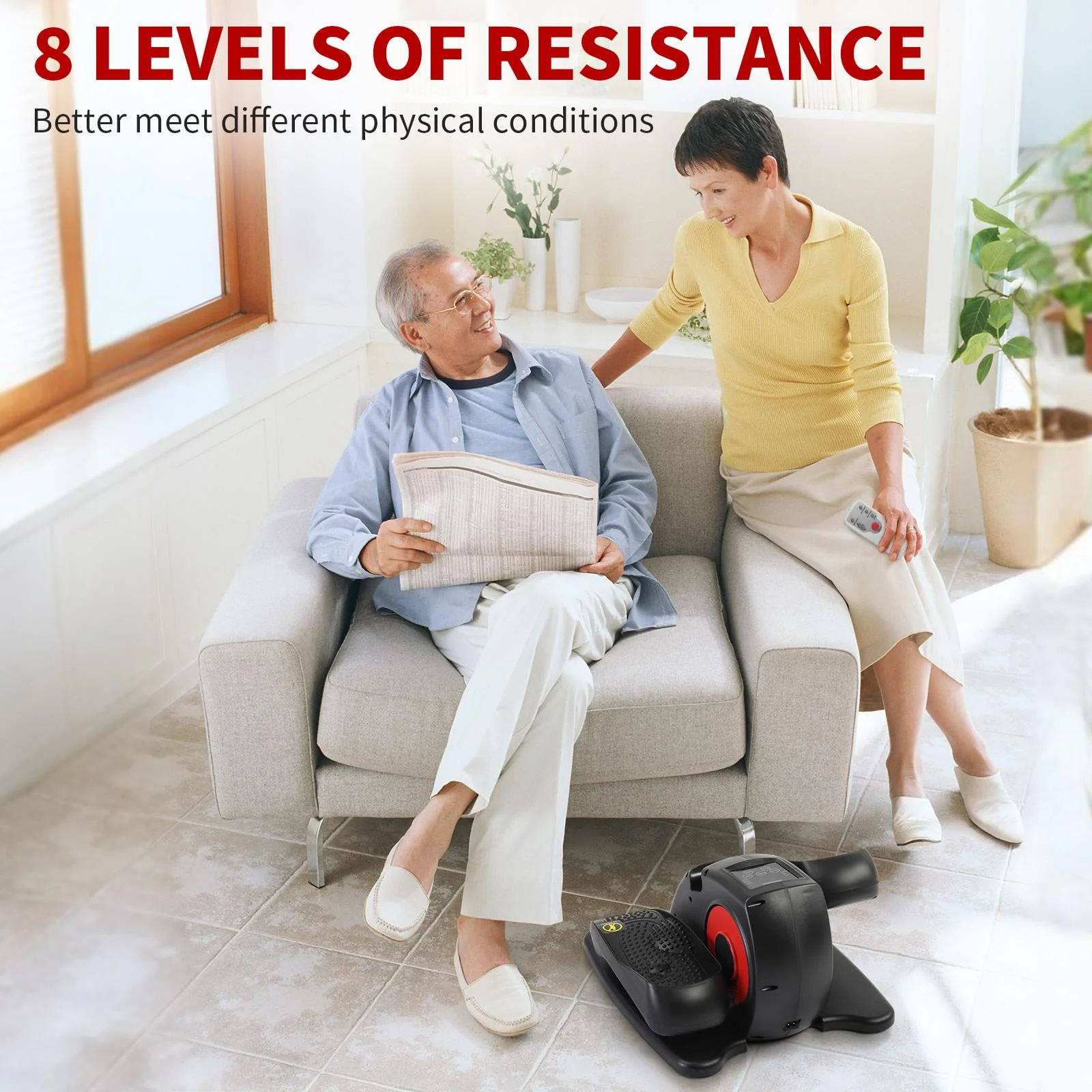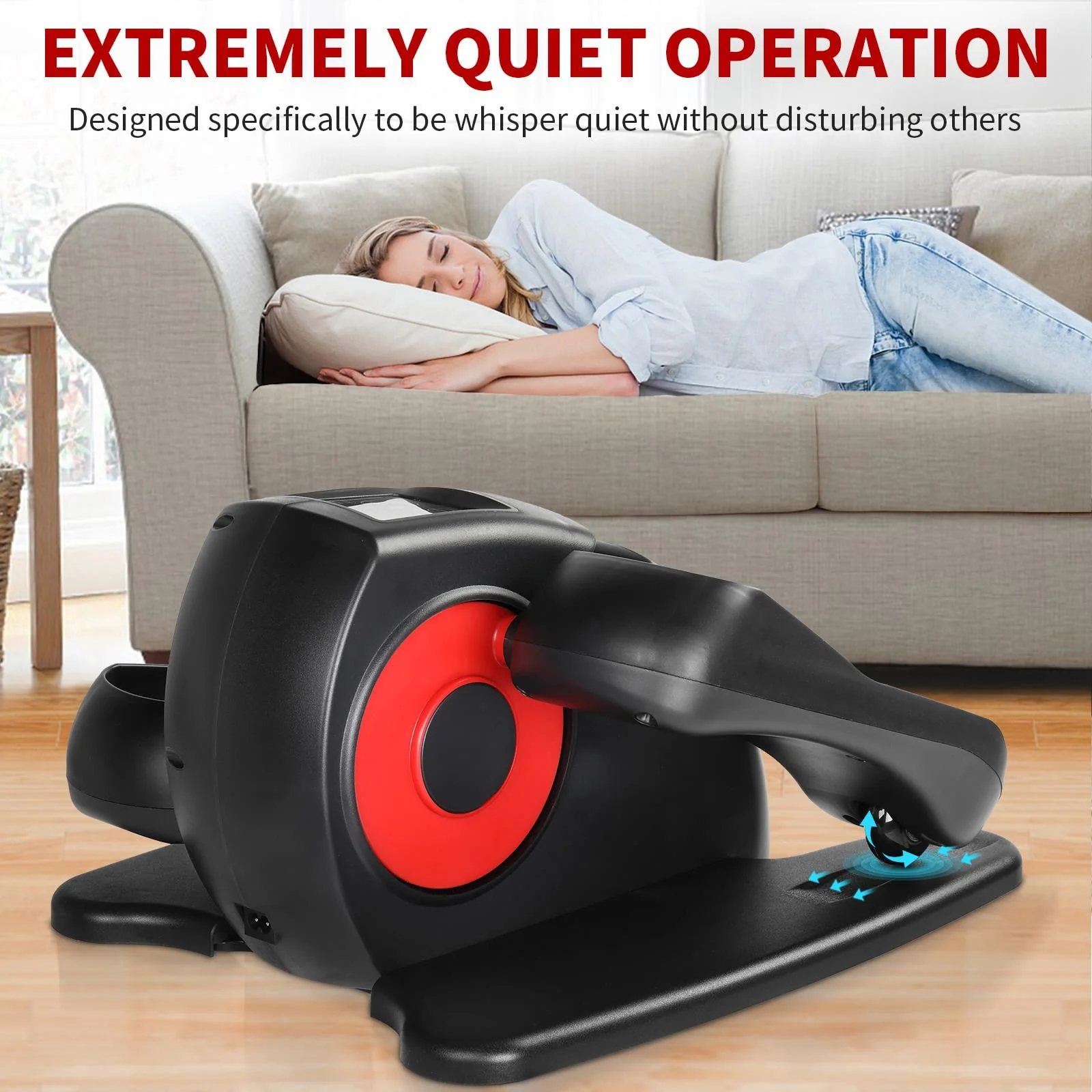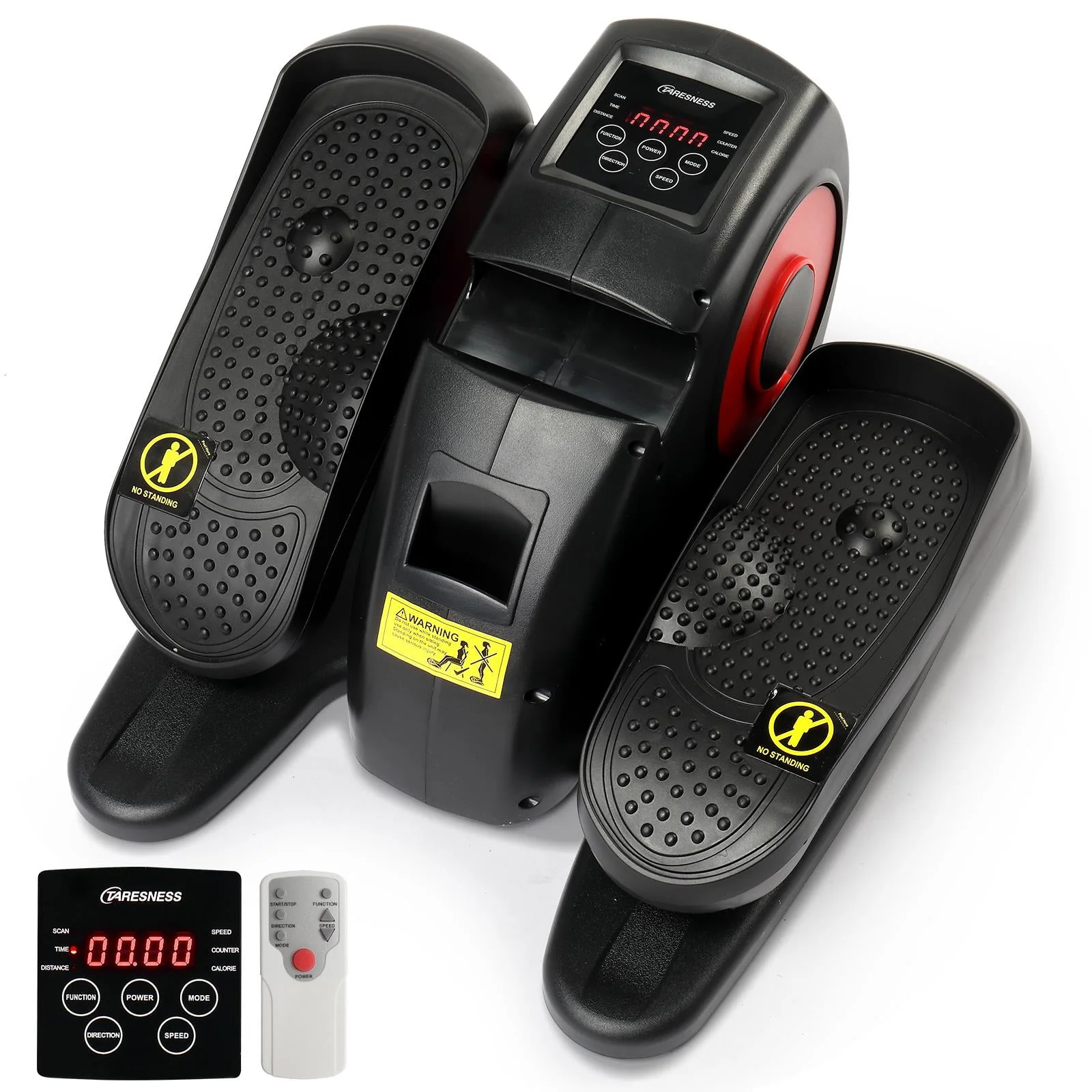 TARESNESS Electric Elliptical Machine, Desk Elliptical Trainers with Built in Display Monitor, Black/Red