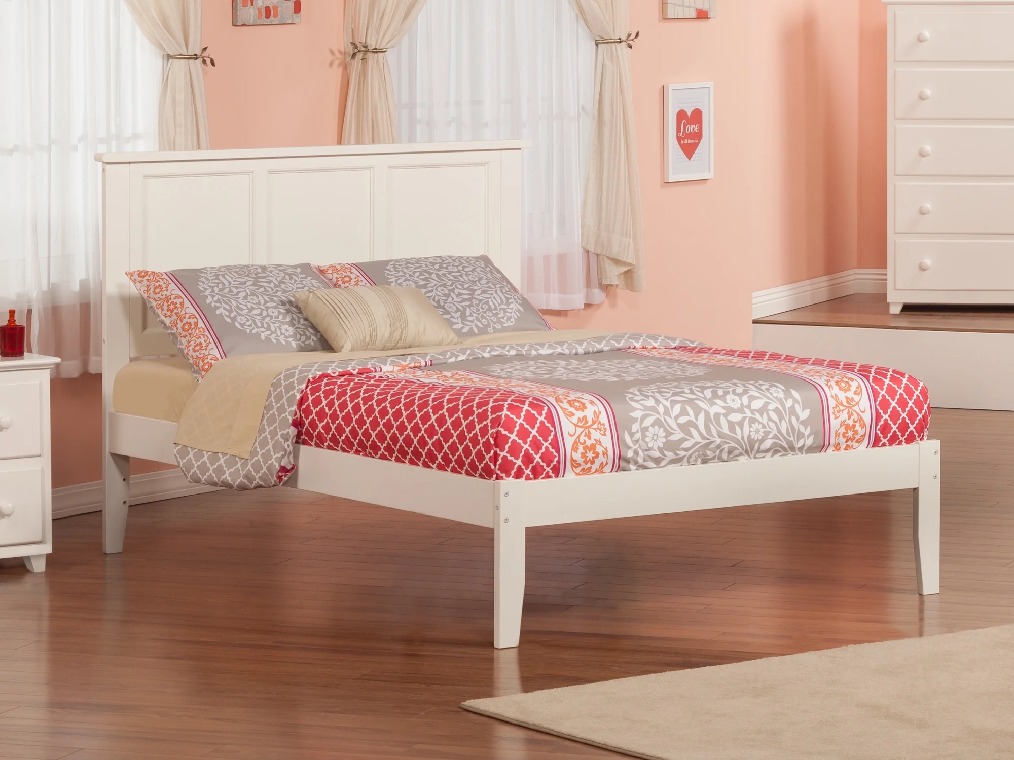 AFI Madison Full Solid Wood Platform Bed with Panel Headboard in White