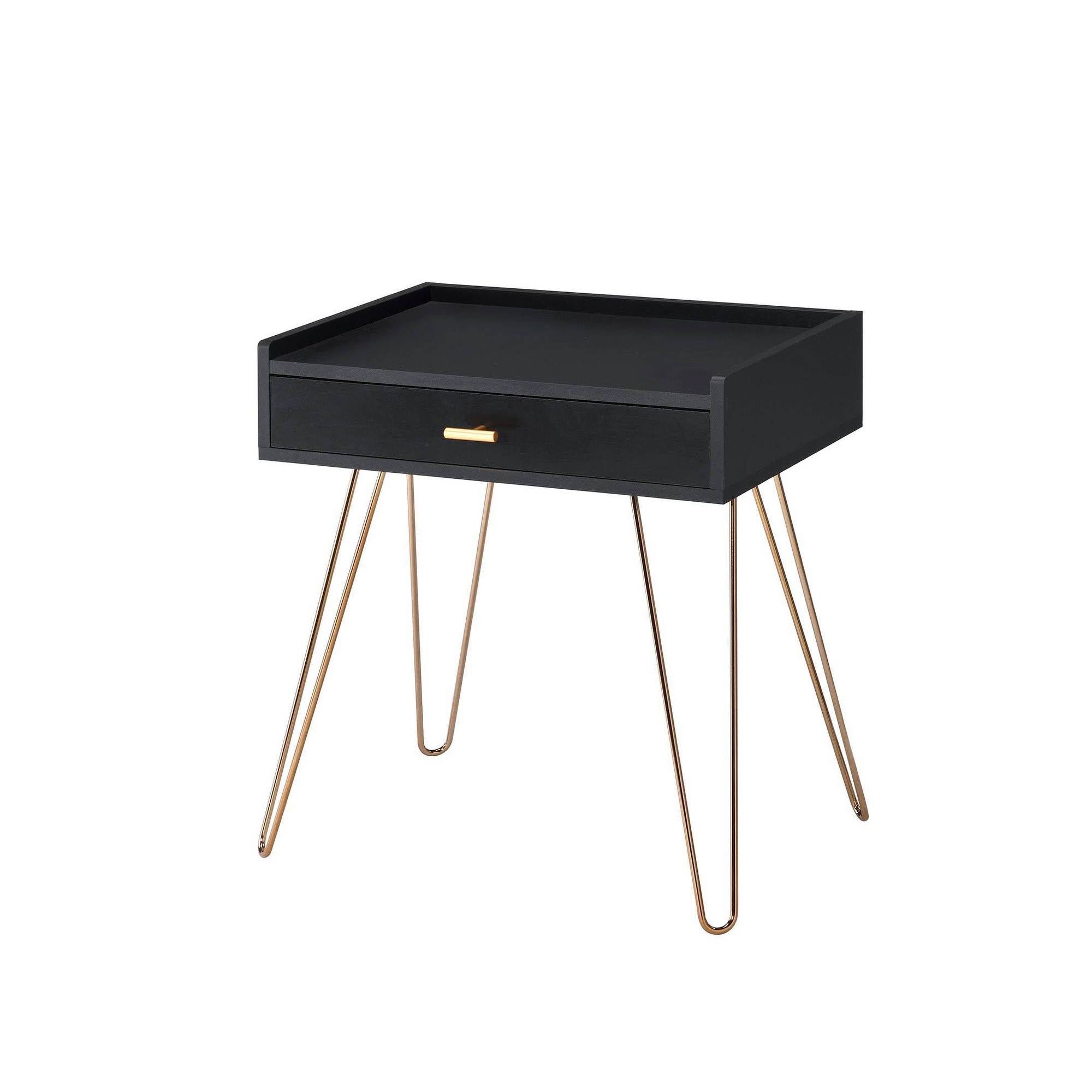 Ore International 23.5x22 Tall Black Allen Mid-Century Accent Table with Copper Hairpin Legs - Megean