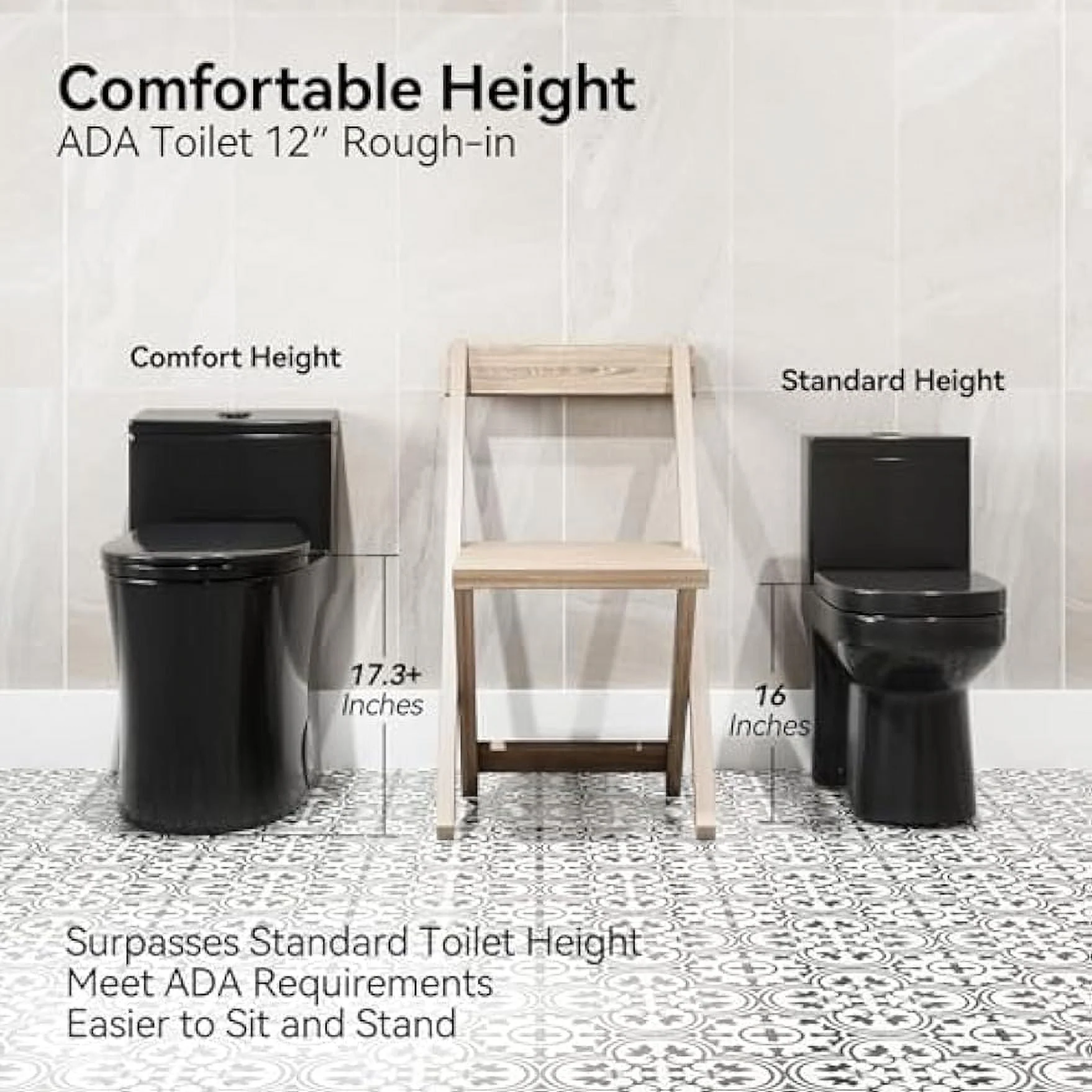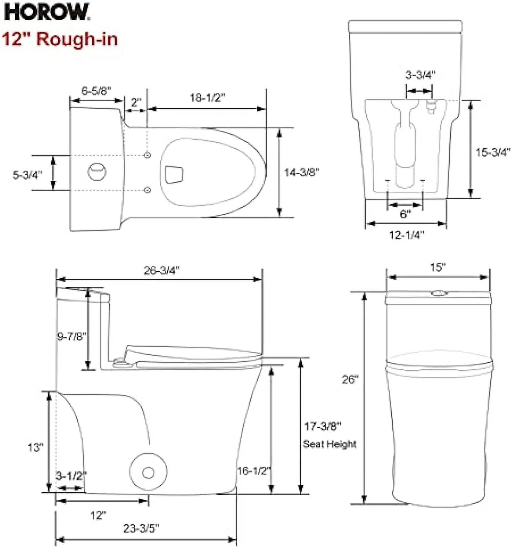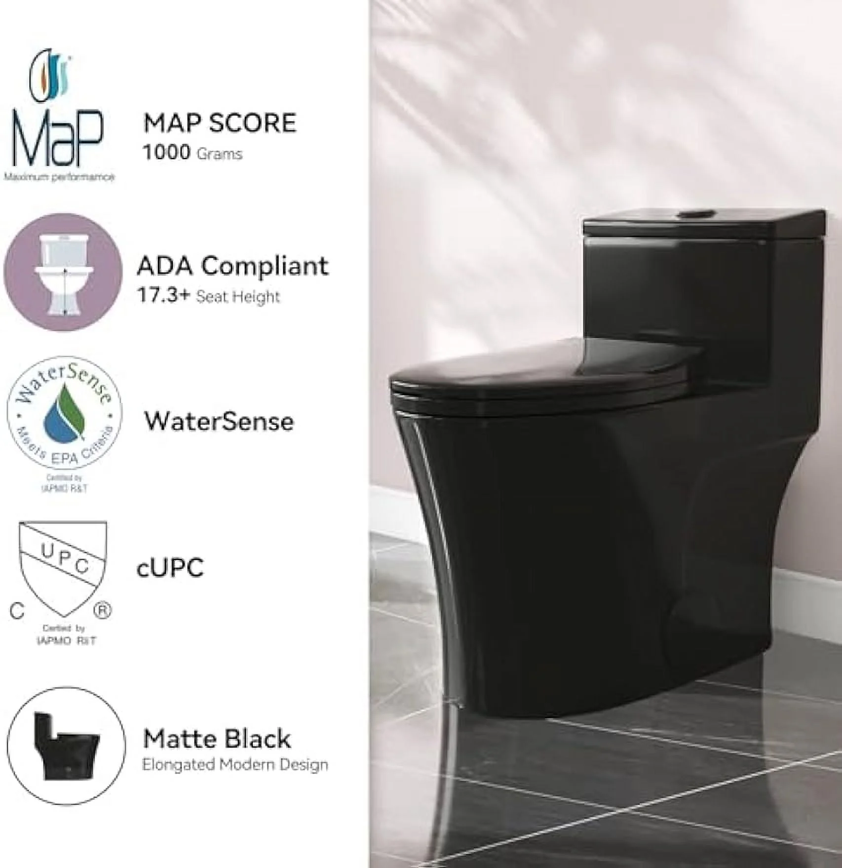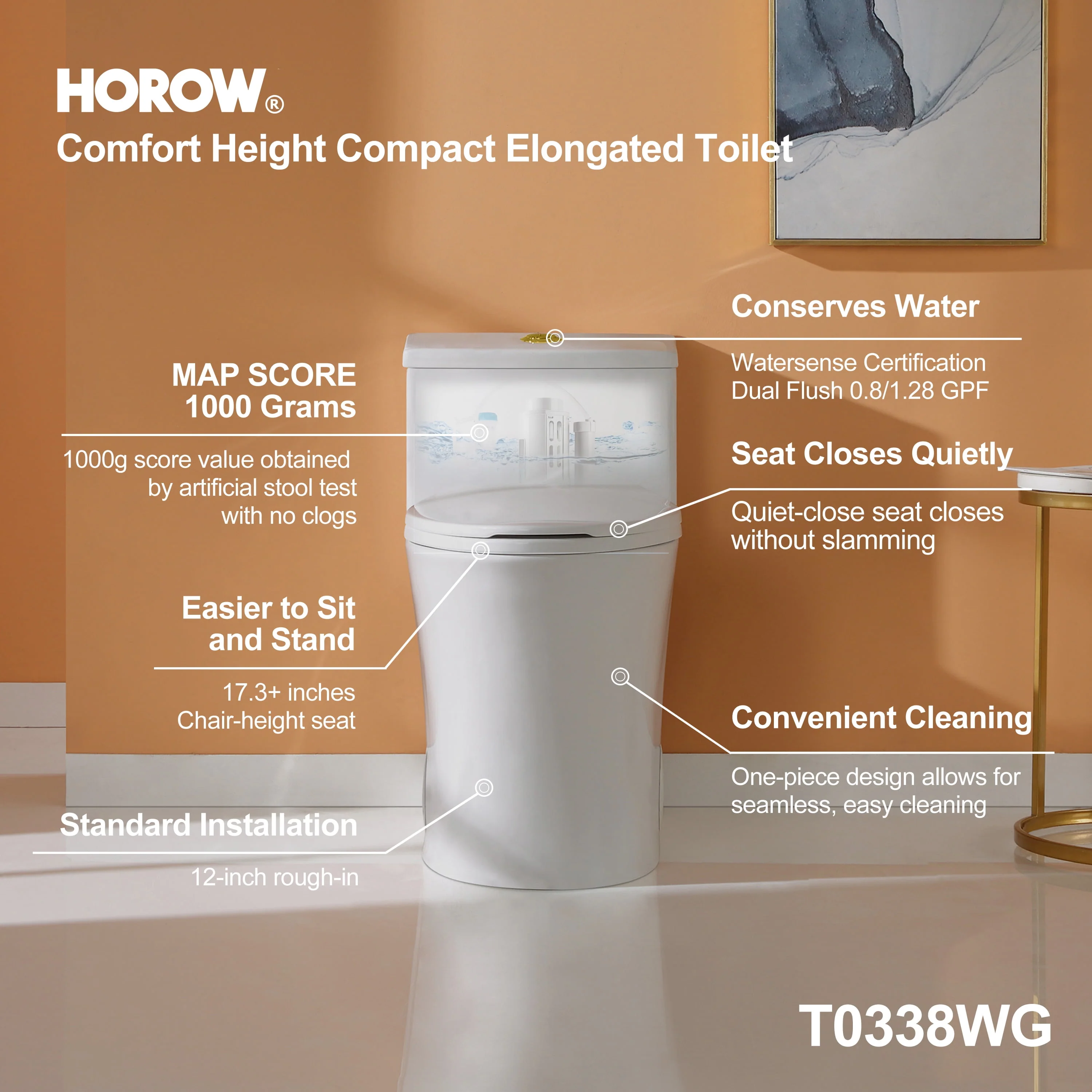 HOROW ADA Elongated Map 1000G Dual Flush One Piece Toilets For Bathrooms Comfort Height