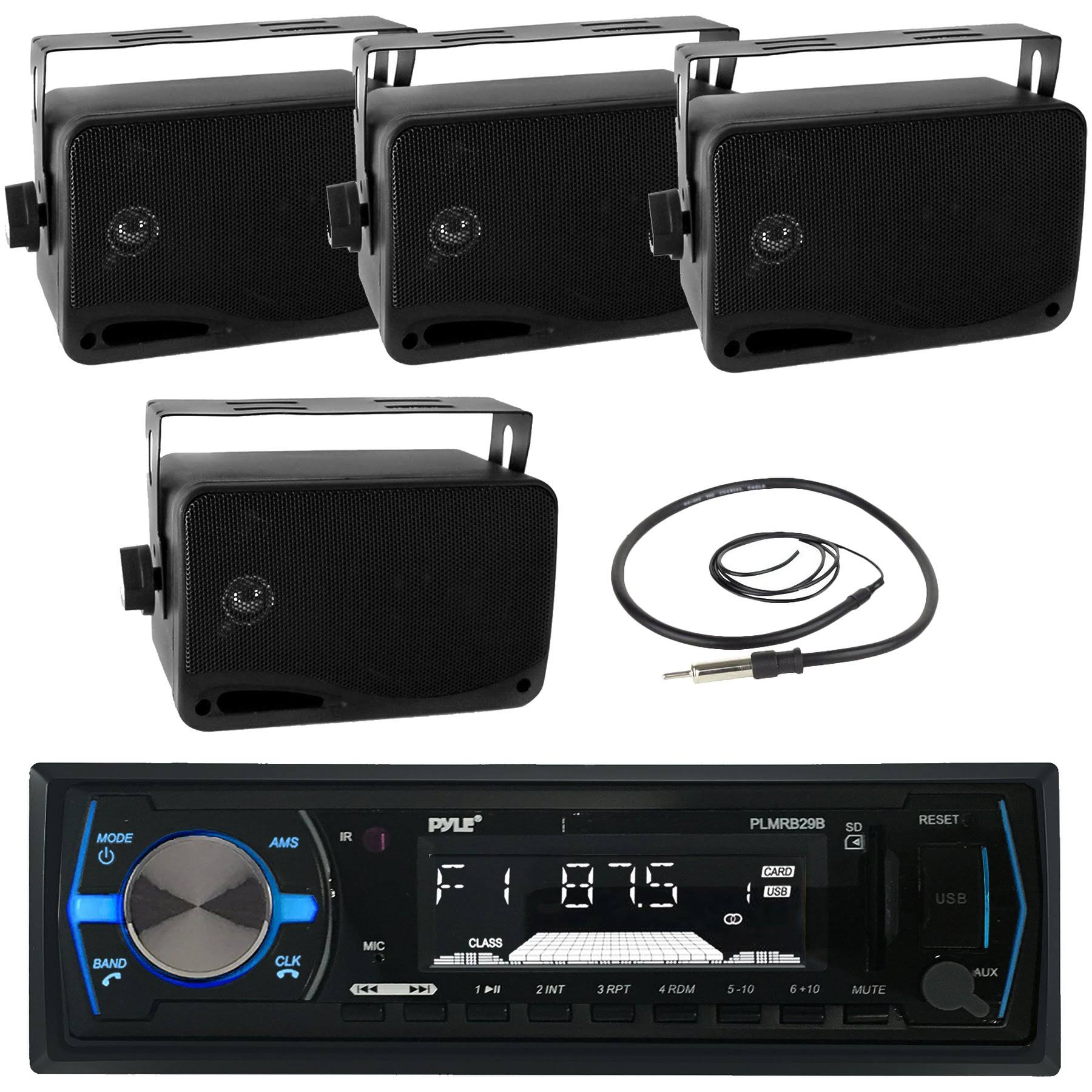 Black PLMRB19B Bluetooth Marine USB Radio Antenna Black 3.5" 200W Box Speakers (MPPK16116) - Megean