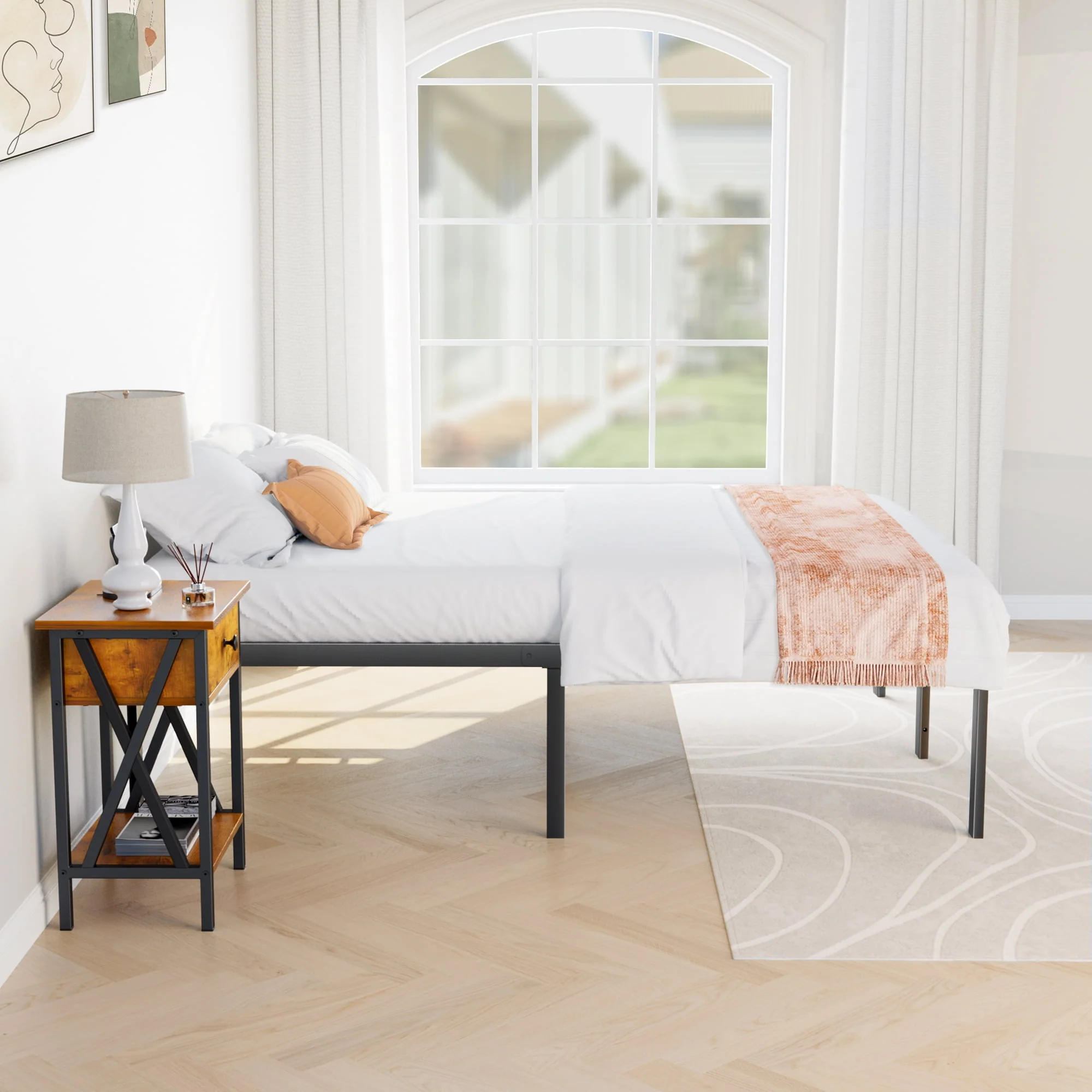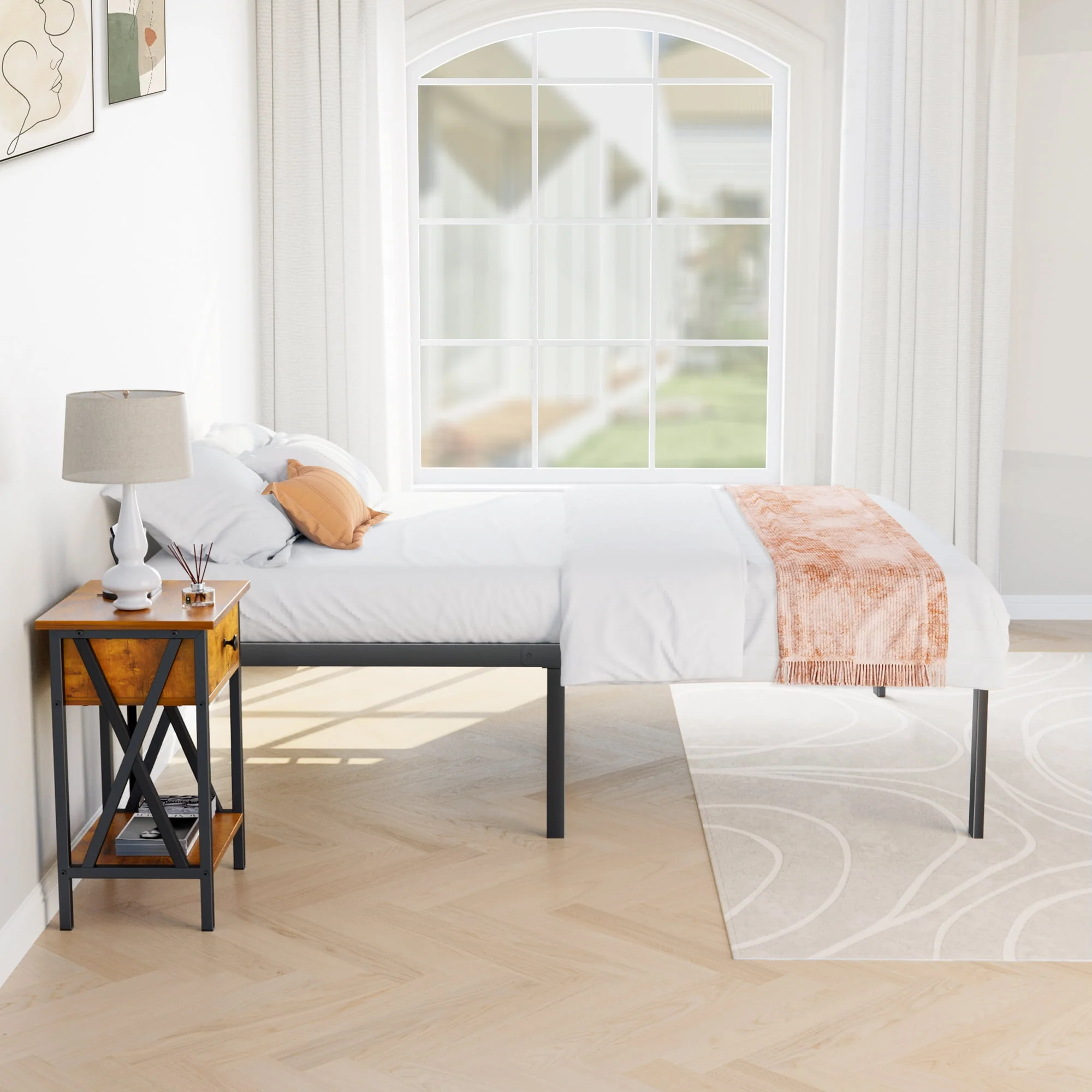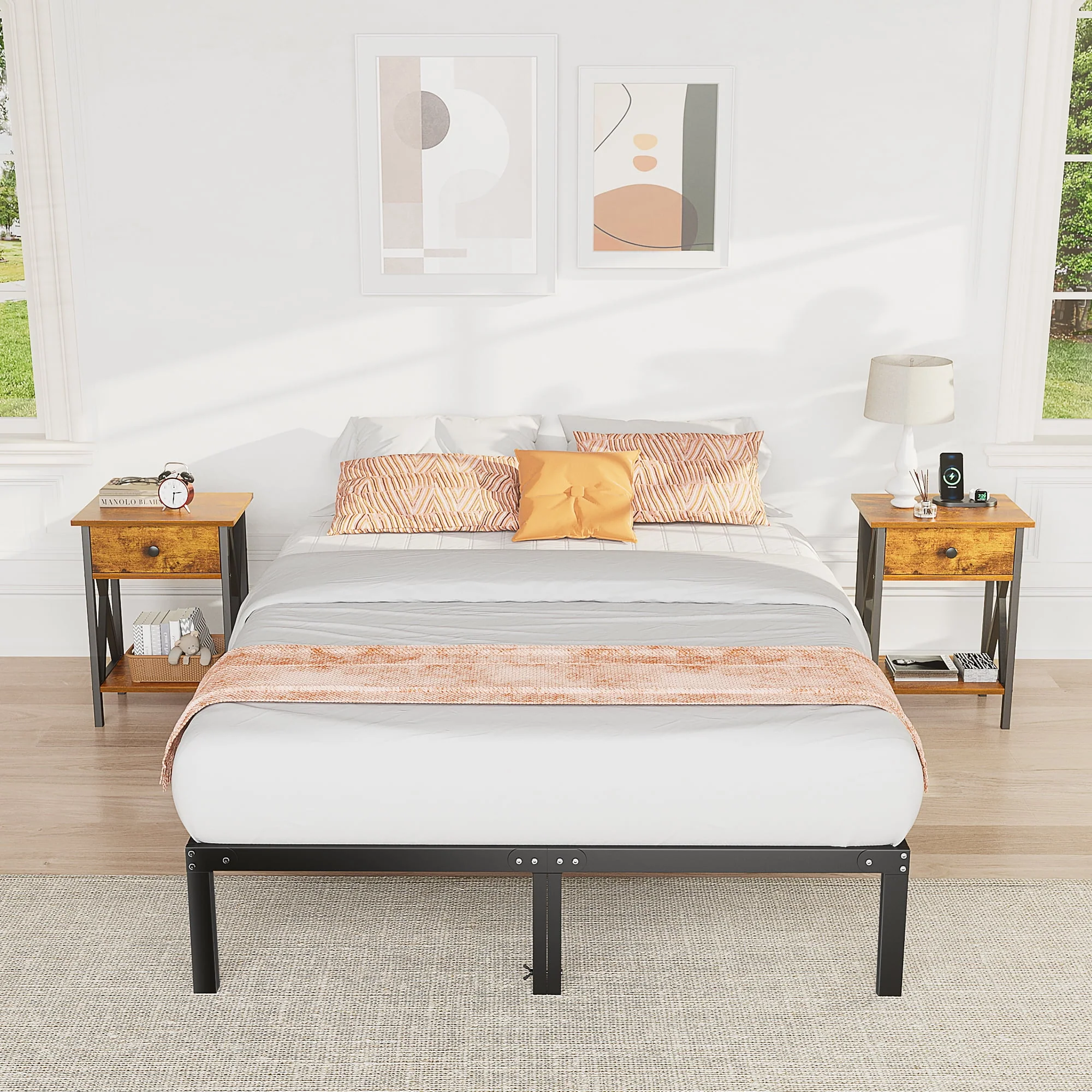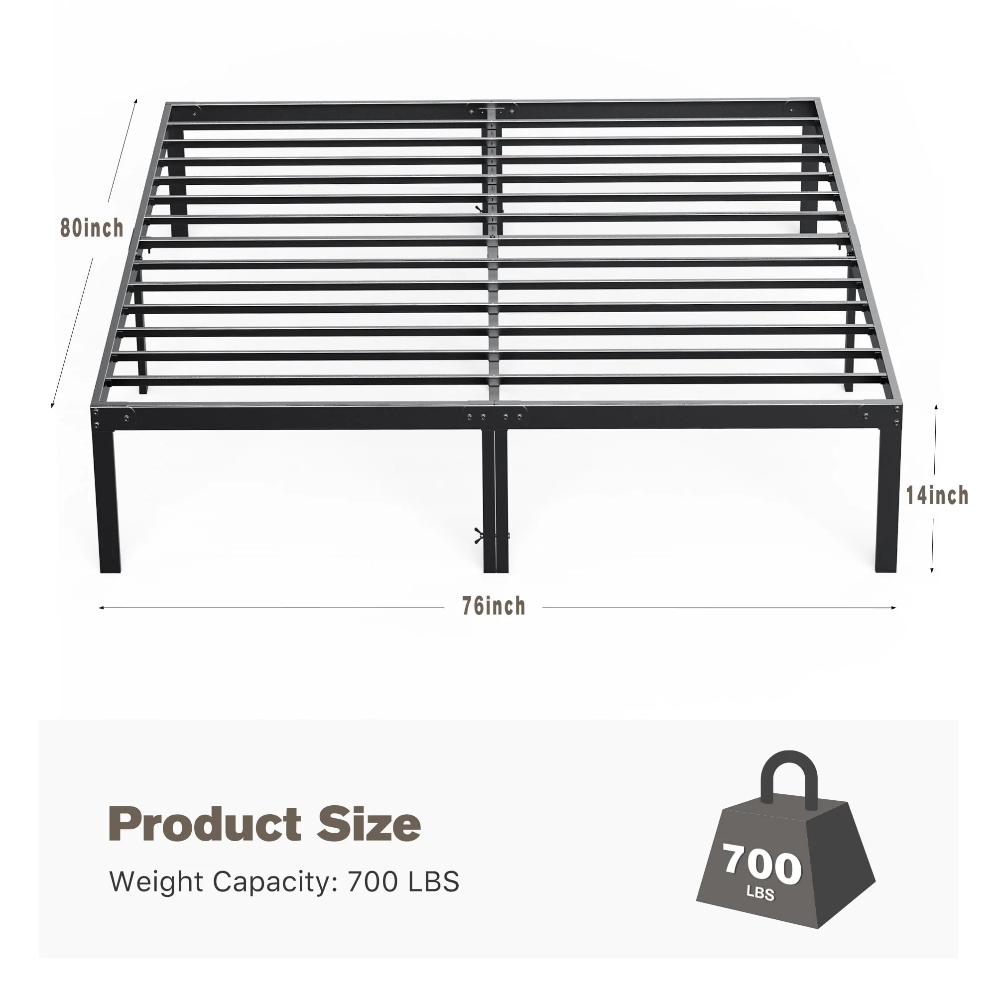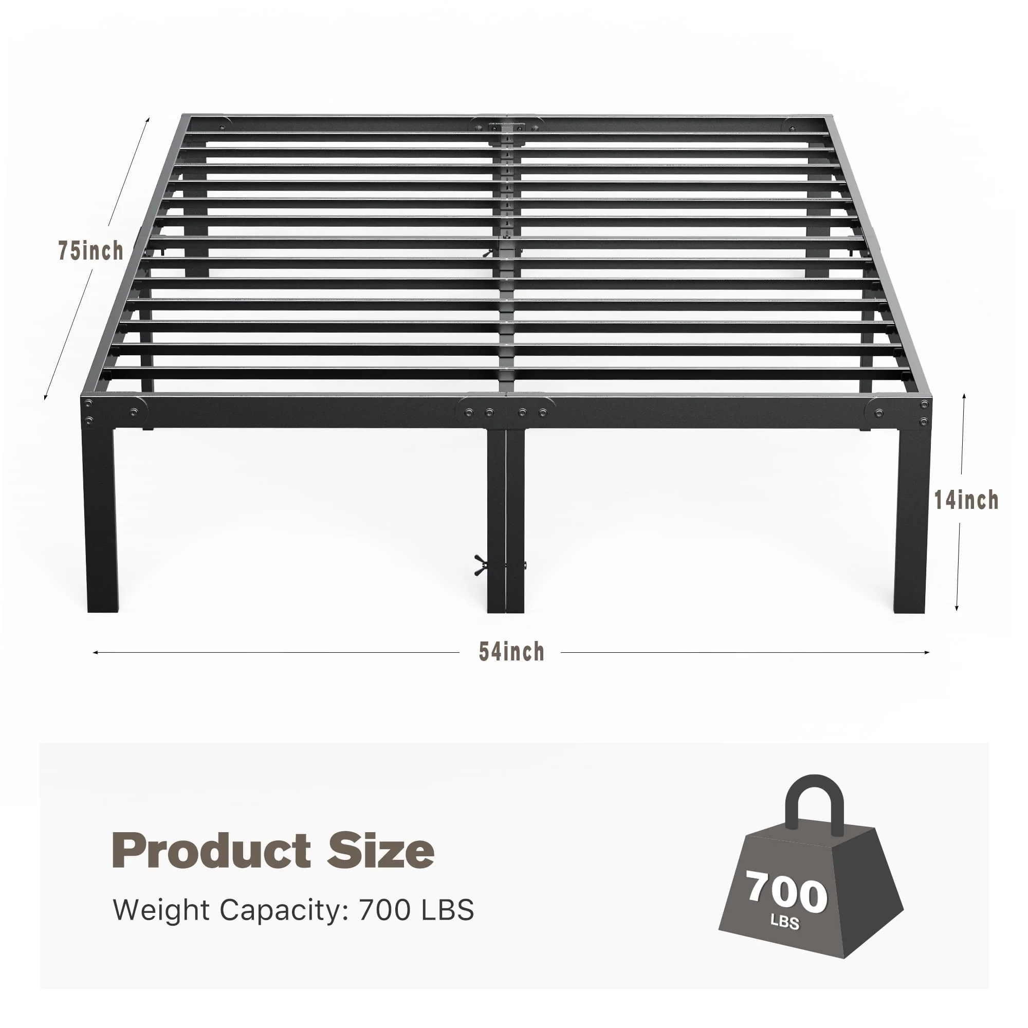 Bed Frame - Full Size Heavy Duty Platform Bed with Underbed Storage, 14-Inch High Steel Slat Support, Non-Slip Design, No Box Spring Required