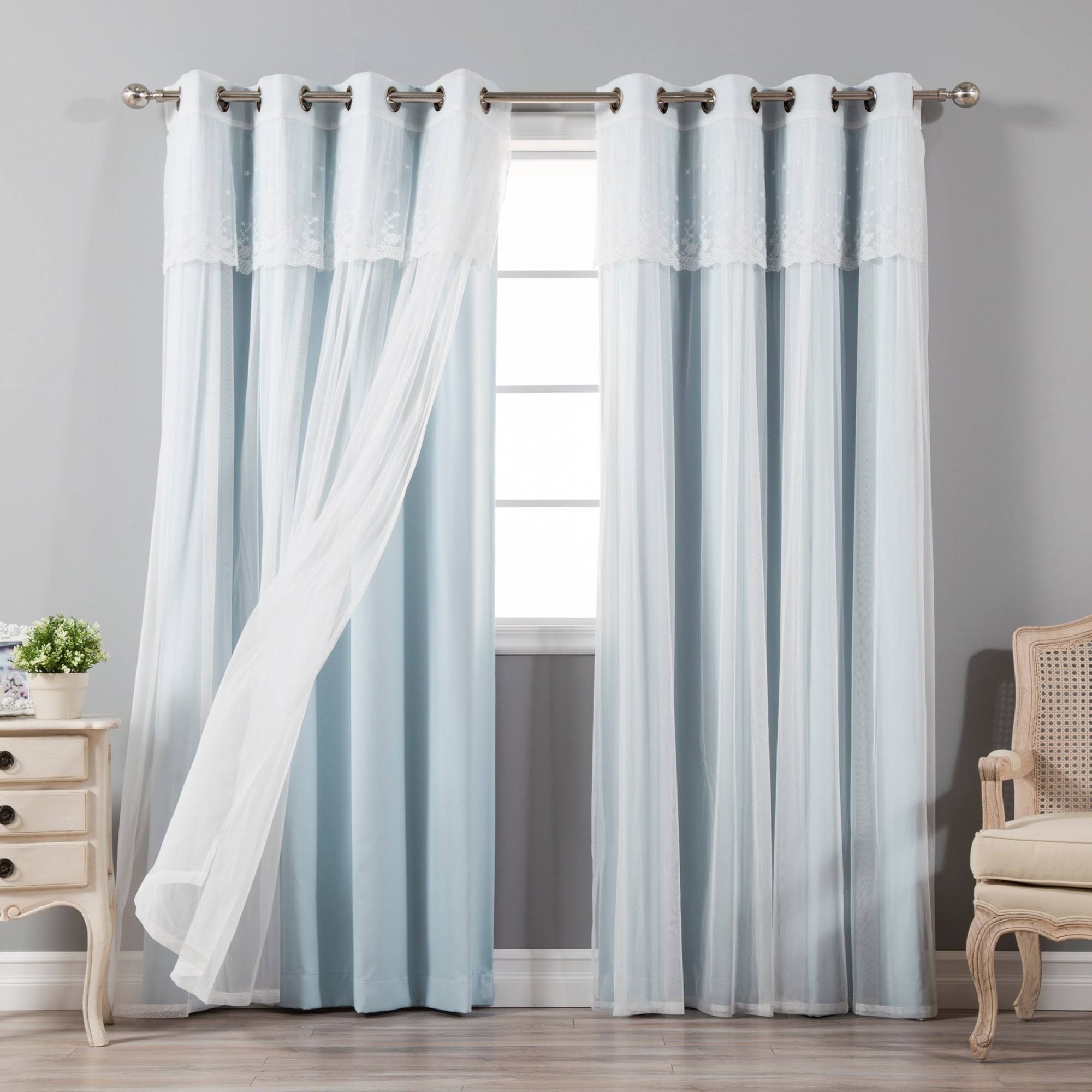 Aurora Home Tulle Sheer with Attached Valance & Blackout Mix & Match - 96 - Sky Blue - Megean