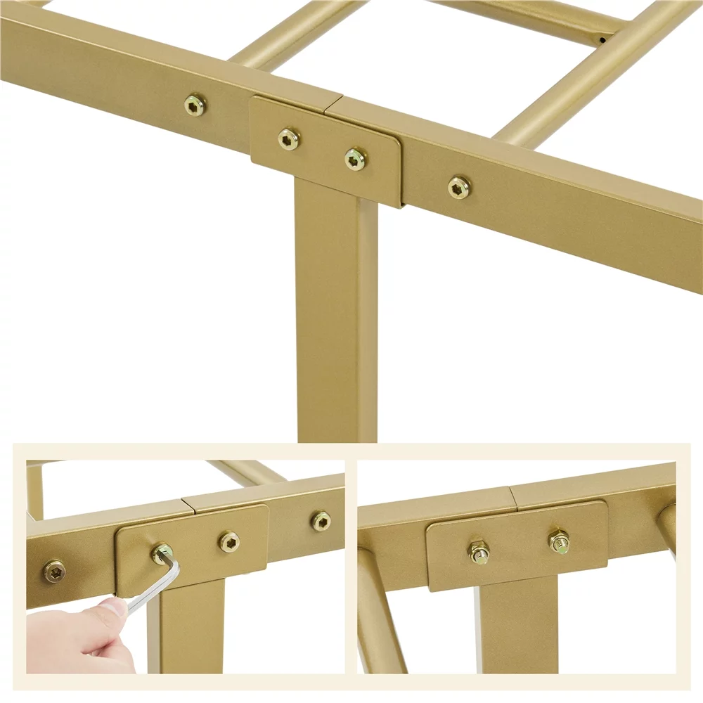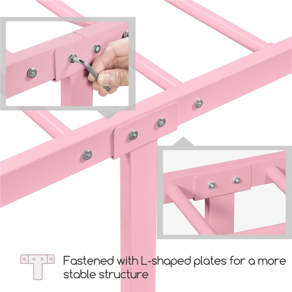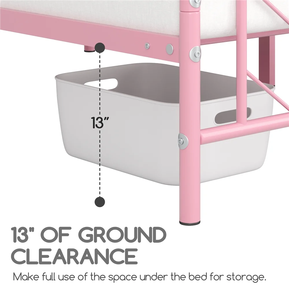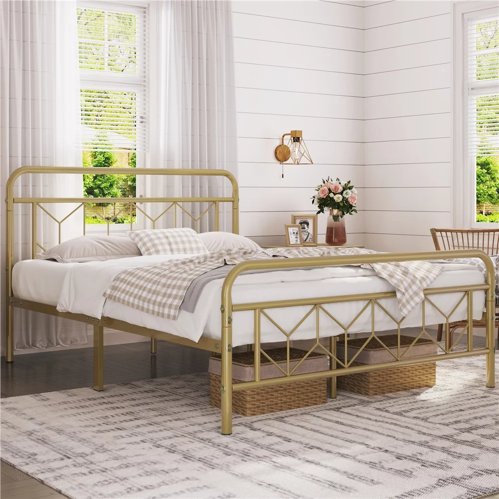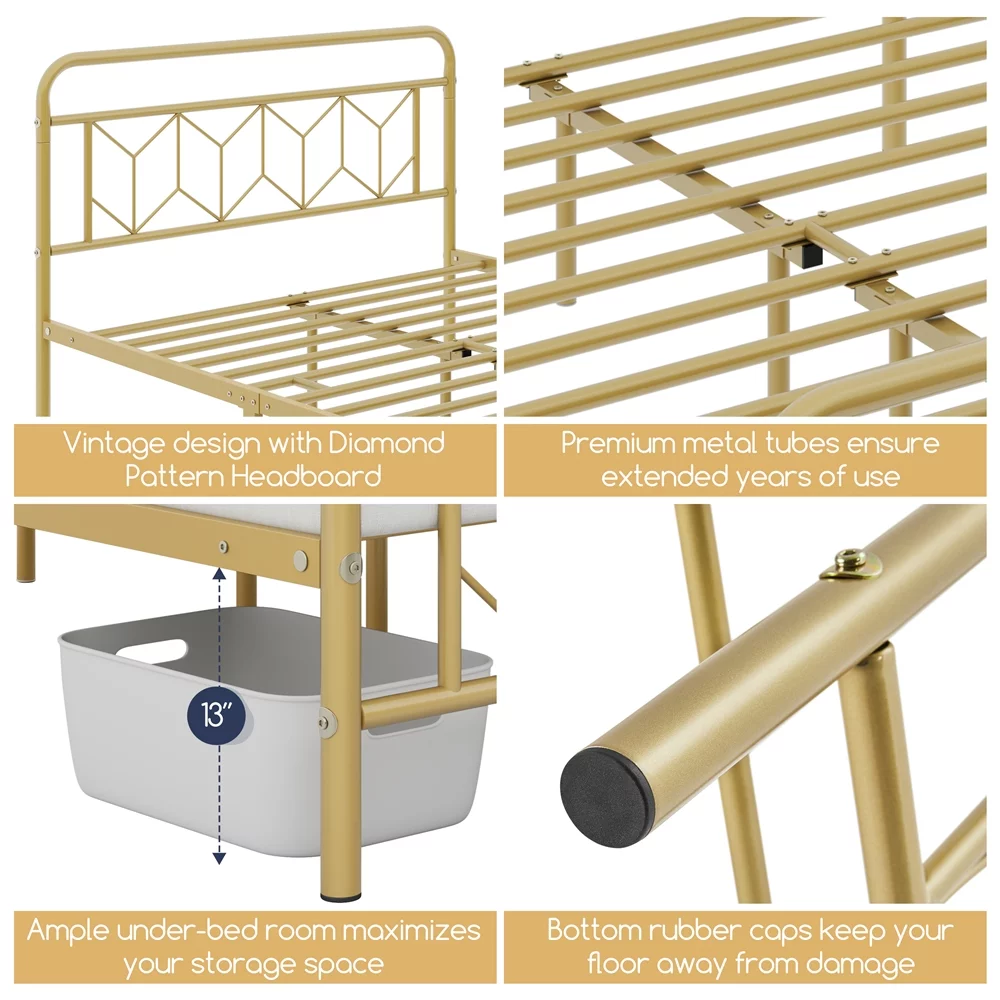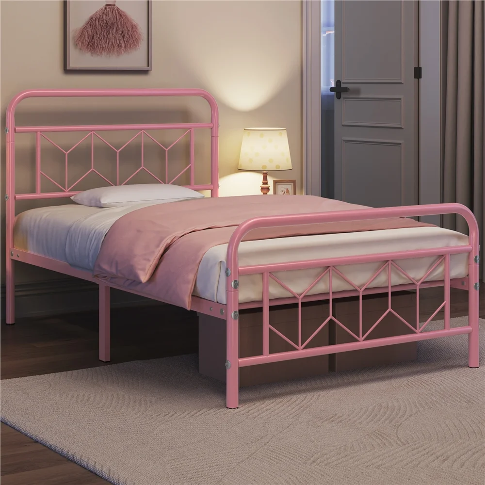 Sha Cerlin White Twin Size Metal Platform Bed Frame with Victorian Vintage Headboard