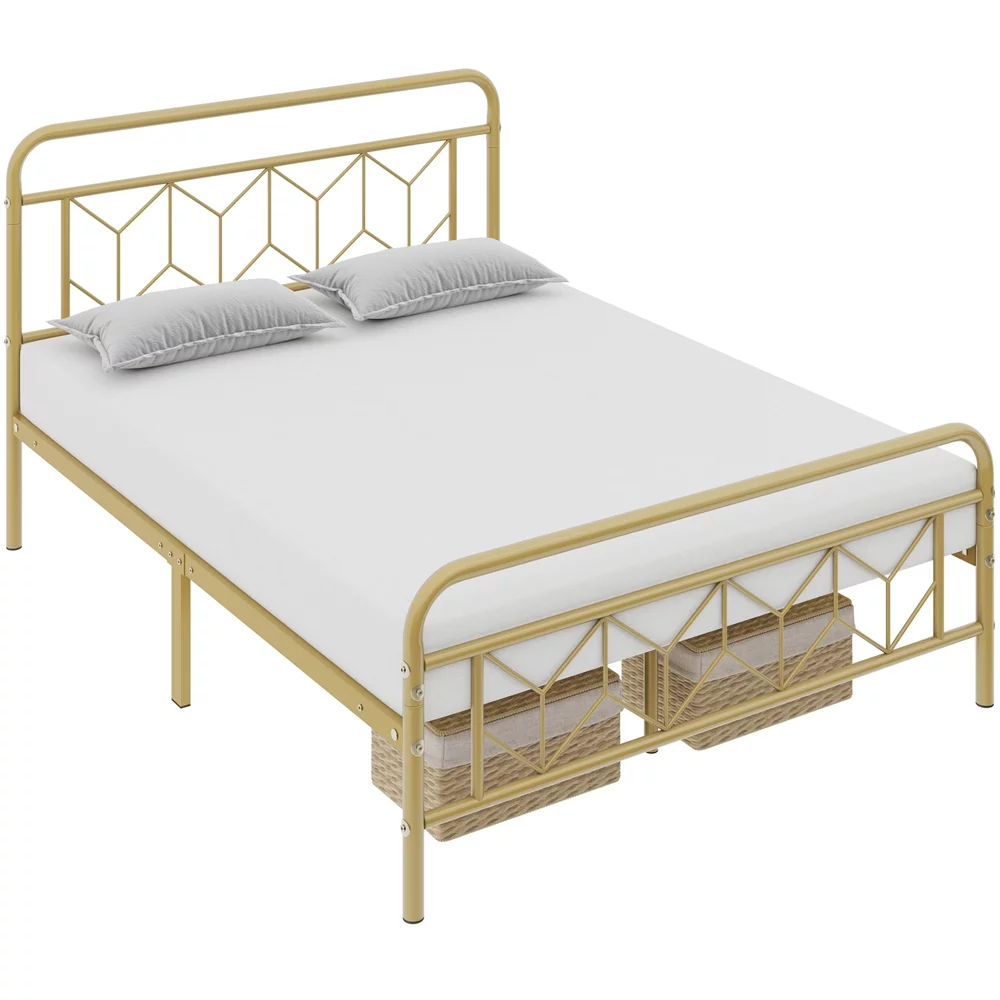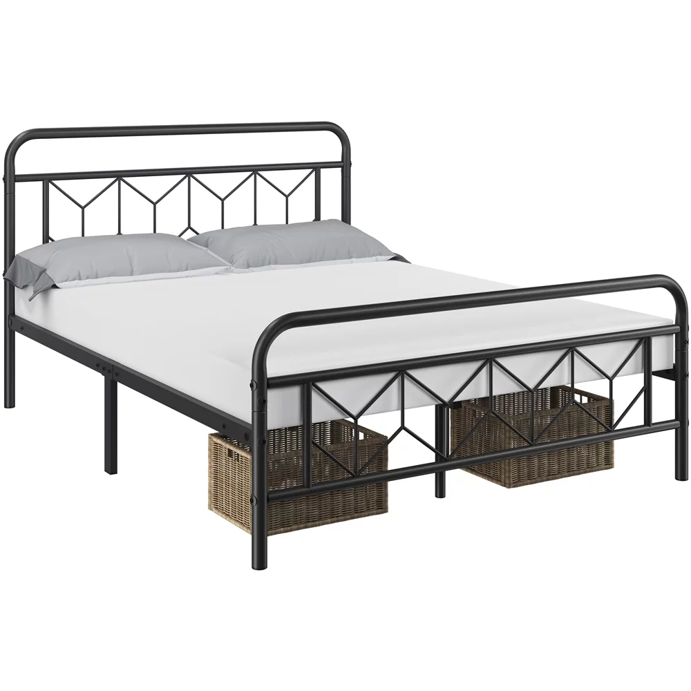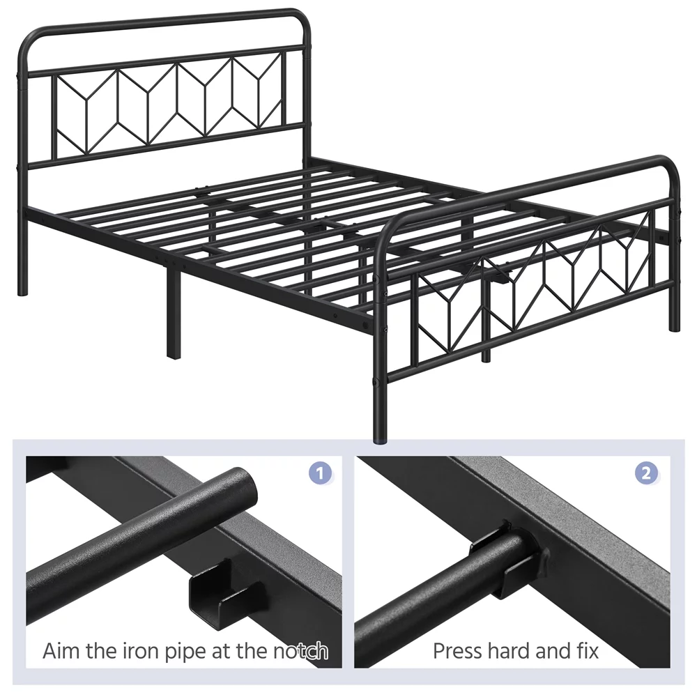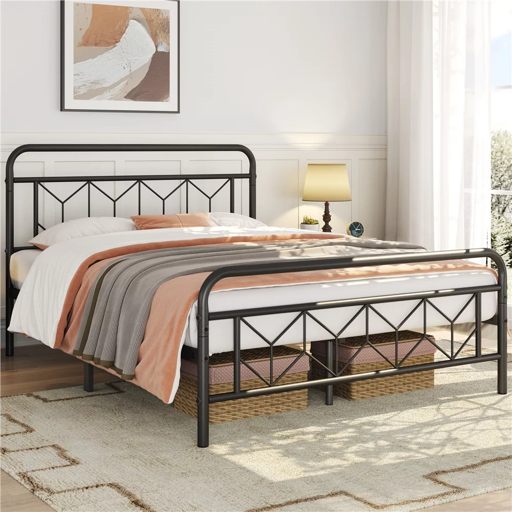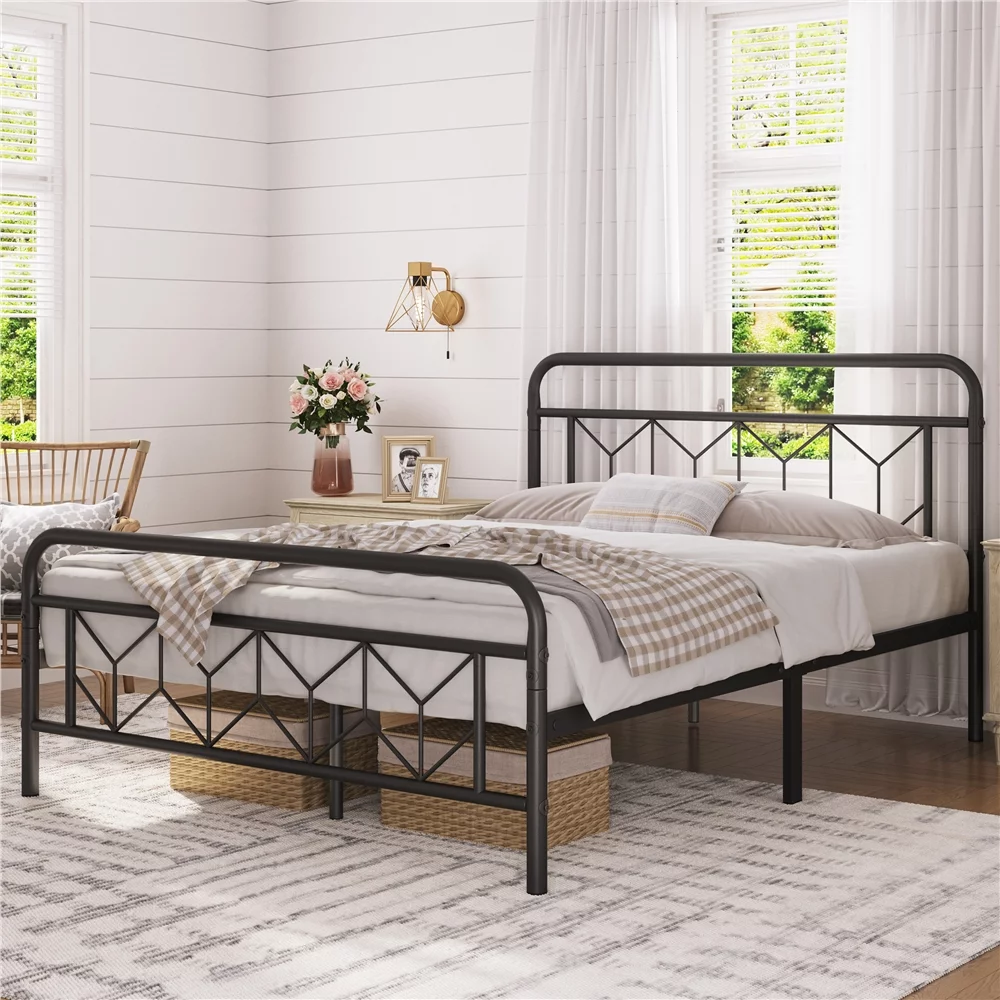 Topeakmart Full Size Metal Platform Bed with Vintage Headboard Underbed Storage, Black