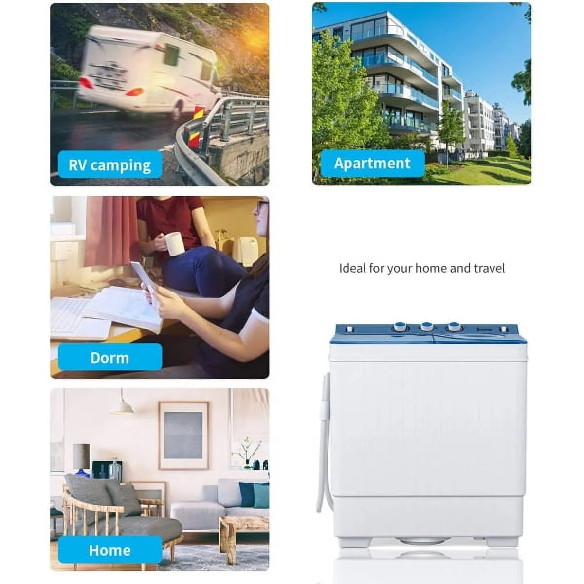 Fithood Twin Tub with Built-in Drain Pump XPB65-2288S 26Lbs Semi-automatic Twin Tube Washing Machine for Apartment, Dorms, RVs, Camping and More, White&Blue US Standard