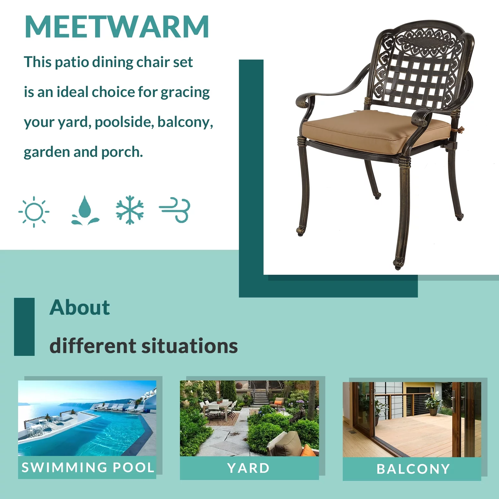 MEETWARM 2 Piece Patio Dining Chairs with Cushions, Outdoor All-Weather Cast Aluminum Chairs, Patio Bistro Dining Chair Set - Curated Treasures Market